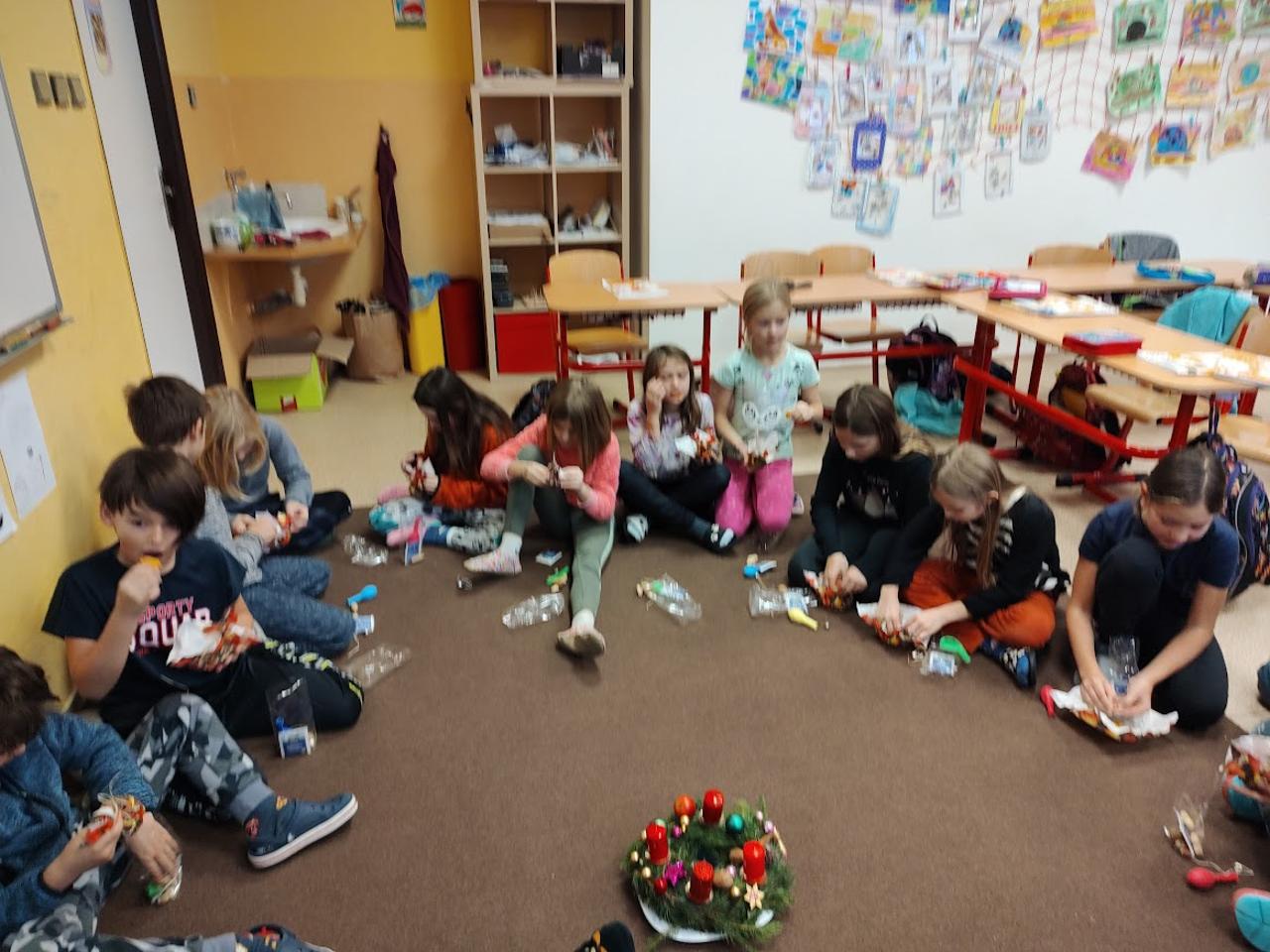 Mrazivé počasí nám dalo téma, které nás provází delší čas. Zvířata - jak přečkávají zimu? Velice různě. Mají chladnokrevná zvířata chladnou krev? Na spousty otázek jsme našli velice zajímavé odpovědi. Ve čtvrtek jsme si připravili adventní věnec, vyzdobili již vánočně třídu. Odpoledne nás čekalo Adventní tvoření v Mraveništi a tvoření výrobků na jarmark, kde se sešly celé rodiny a užily si příjemný čas pospolu.
