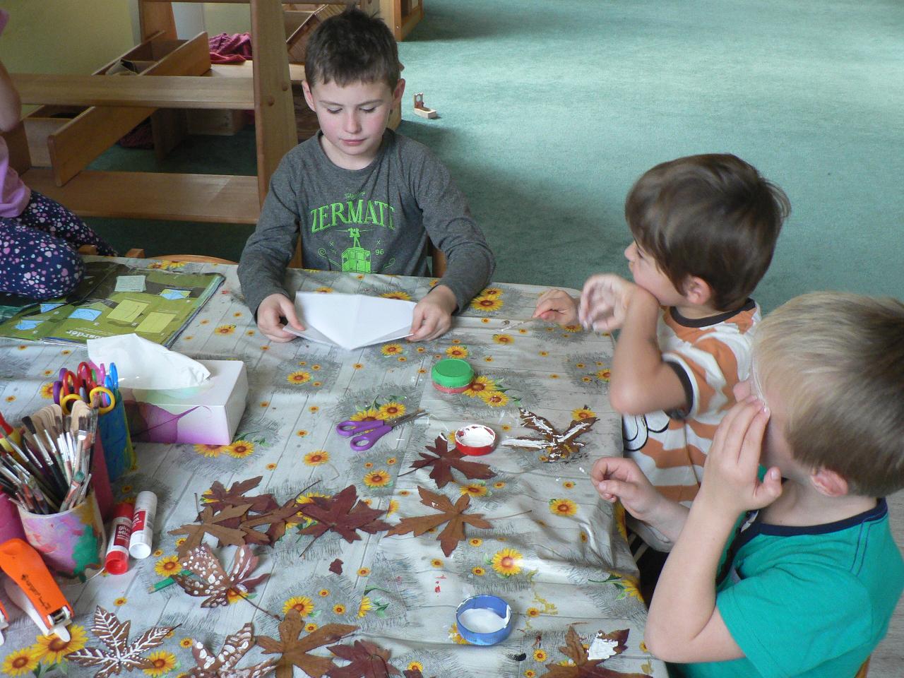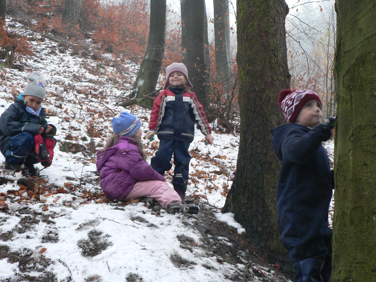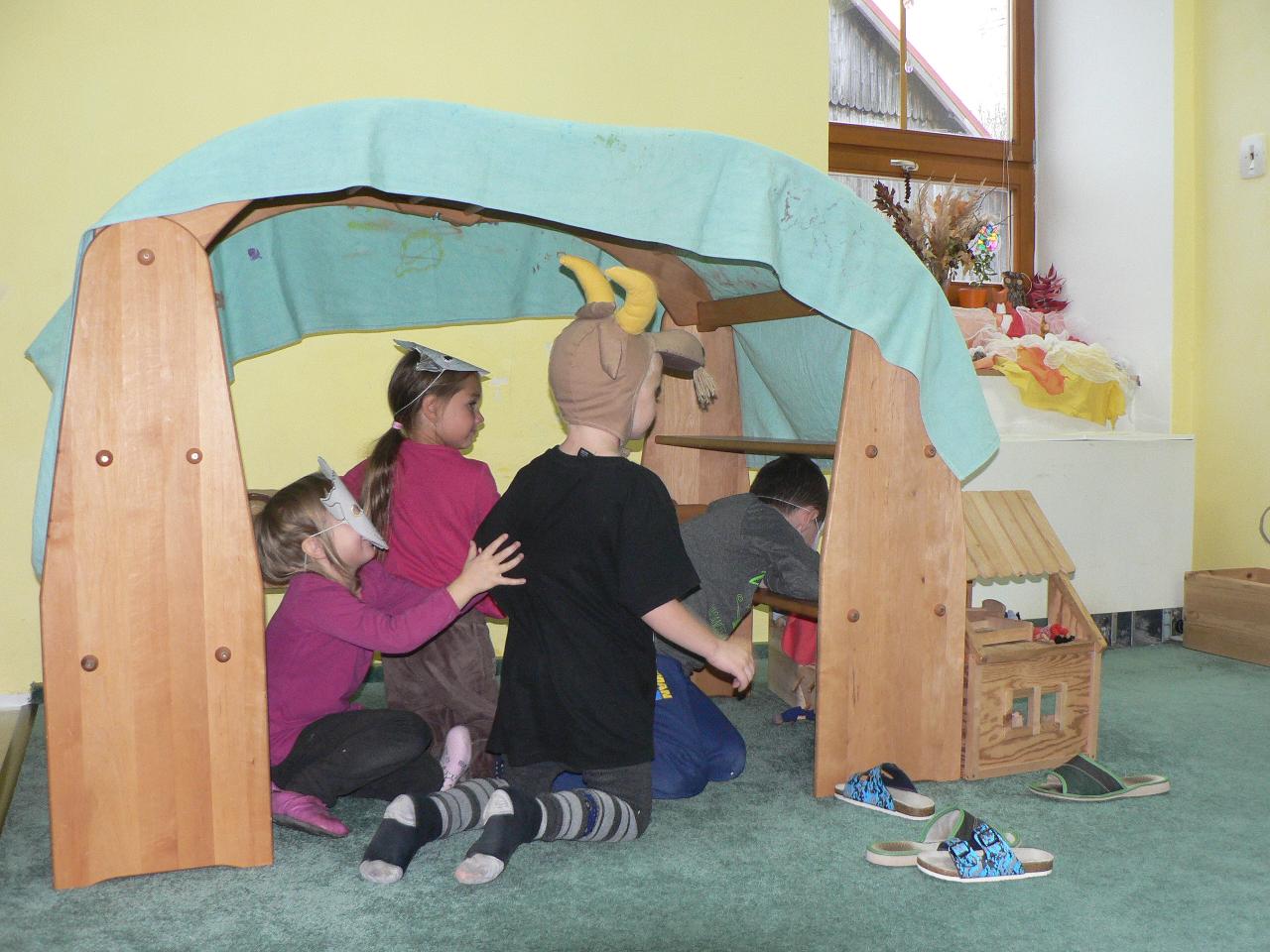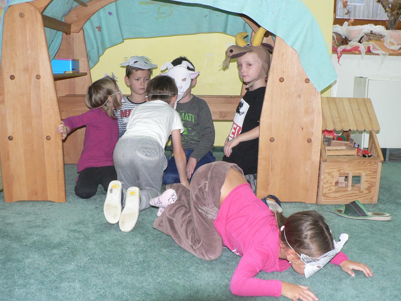 Co se přihodilo kůzlátkům, která zůstala sama doma? Podařilo se jim vyzrát na zlého vlka? A jak to s nimi nakonec dopadlo? Na tyto otázky jsme tento týden hledali odpovědi v pohádce O vlkovi a neposlušných kůzlátkách. Naučili jsme se opět nové říkačky i písničky. Hráli jsme si na řemesla a přemýšleli, kdo upiloval vlkovi jazyk, co dělá mlynář, u kterého si posypal tlapy moukou a co vlastně tesá tesař, který mu usekl ocas. Také jsme si vyráběli masky kůzlátek a hráli divadlo, kde nám všechna zvířátka z pohádky rázem ožila. A tento týden si také děti tvořily keramické svícínky zdobené barevnými sklíčky, aby je měli připravené na slavnostní adventní spirálu. A protože se Káťa vrátila ze semináře s novou dovedností, mohly si děti vyzkoušet i hru na drumbeny a zjistily, že se s nimi dá kromě bubnování užít spousta zábavy. Ale hlavně jsme přivítali první sníh a tak jsme si čas venku do sytosti užili. Stavěli jsme sněhuláky, klouzali se, sjížděli kopce a také jsme trochu experimentovali s ledem. Co se stane, když ledovou kostku přineseme do tepla? A co se v ní kromě vody ještě skrývá? To všechno jsme zjišťovali a ještě mnohem víc, podívejte se na připojené fotky.