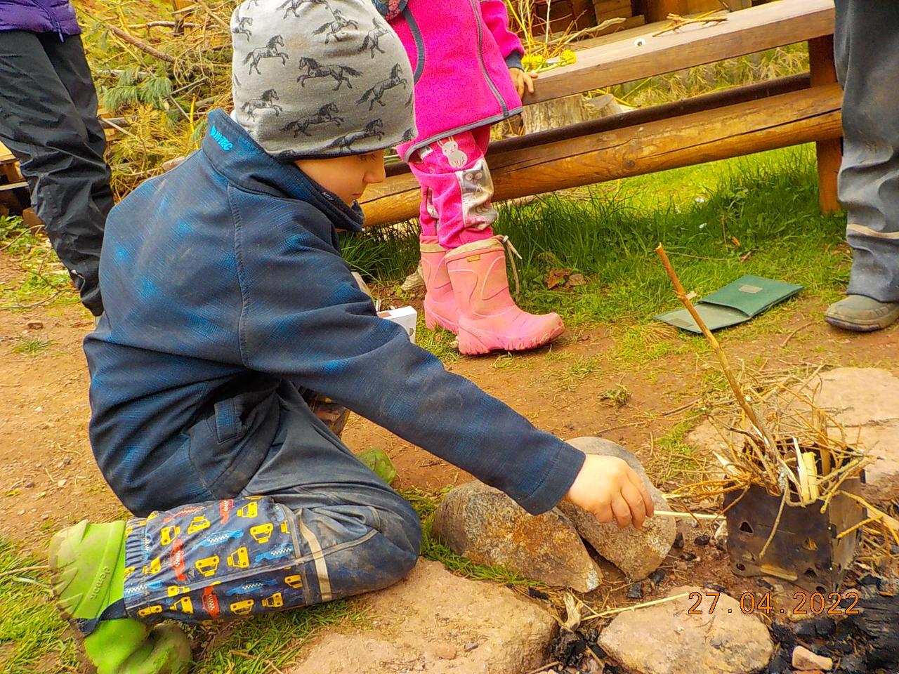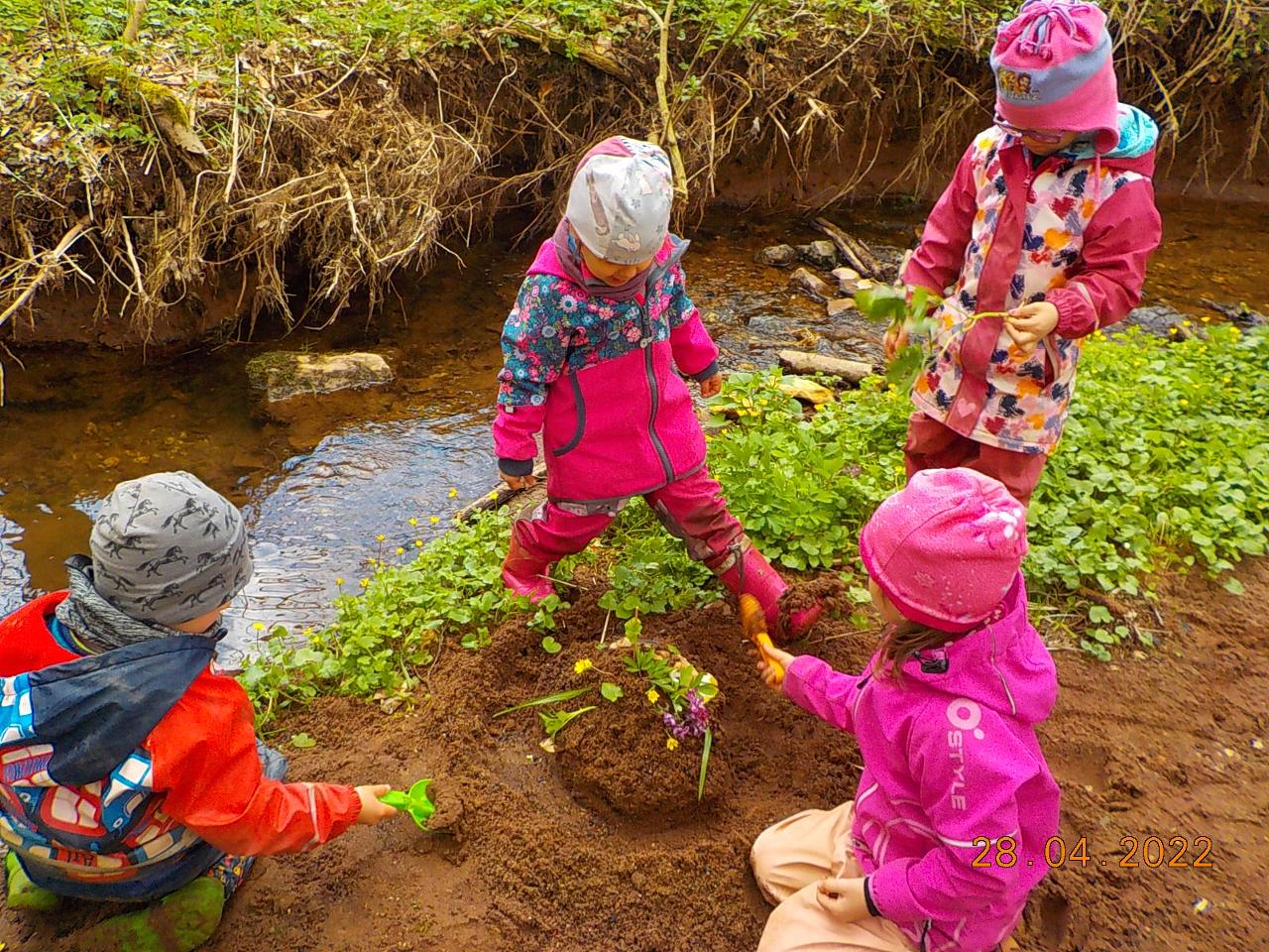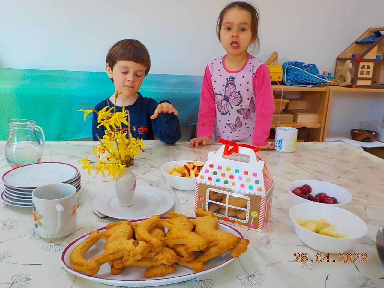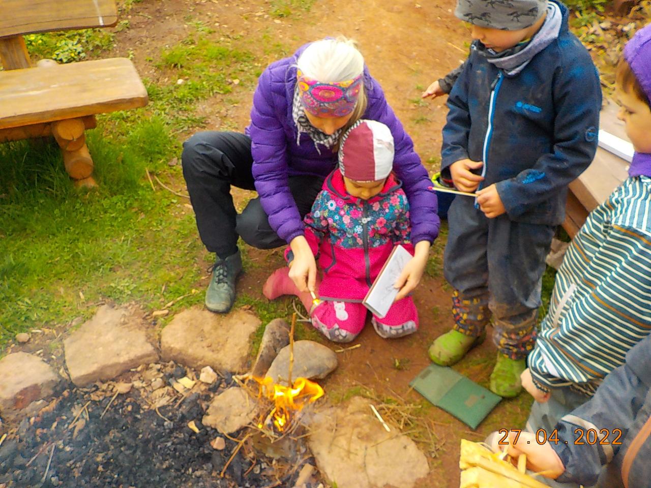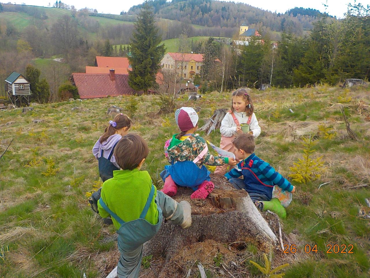 "A děti šly nocí až uviděly v dálce chaloupku, a byla celá z perníku... Utíkaly, co jim nohy stačily, až bábě a dědkovi utekly" - vše zlé nechaly za sebou, a vykročily vstříct novým dnům, opět se shledaly s tatínkem. Tak jako děti v pohádce i my se na chvíli setkaly s lákadly perníkové chaloupky - upekly jsme si perníková srdce a perníkové koně, perníky jsme malovaly, perníkové chaloupky vznikaly z kartonu, vyrobili jsme společně koště z březových větví, malé čarodějničky na košťátku si každý mohl vytvořit a odnést domů, a tam s nimi naložit podle své libosti. Ale ot nebylo vše - tento týden měly děti objevitelské choutky - nejprve kreslily mapy a objevovaly podle nich nové cesty, jindy pak objevovaly sílu ohně - jaké je to mít v ruce sirku a povolení oheň rozdělat. A aby toho žáru nebylo moc, ochladili jsme to v potůčku, kde jsou krásné zátočiny a "pláže". Každý den je plný objevování a nových zážitků.