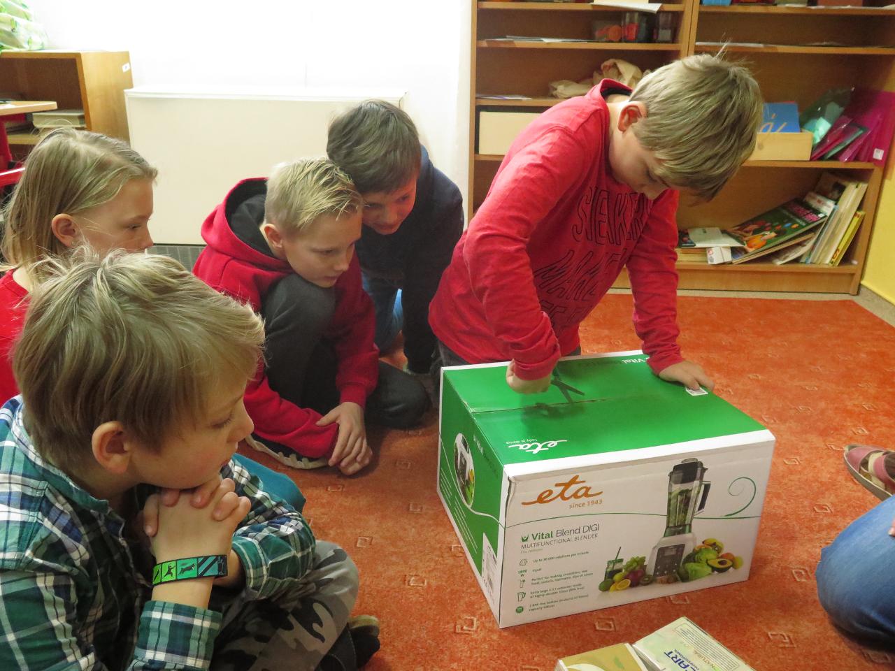 Příjemným překvapením týdne pak bylo rozbalování cen ze soutěže "Mléko a my" za úspěšného zpracování projektu "Obaly a odpady aneb Jak je třídit (a nejlépe vůbec nevytvářet)".
