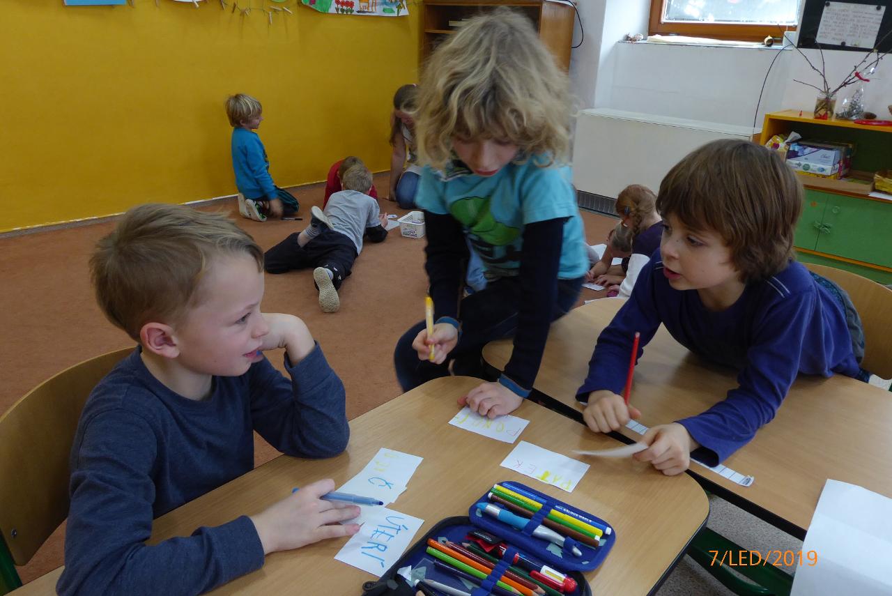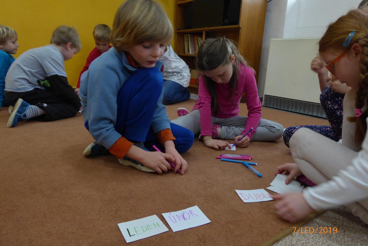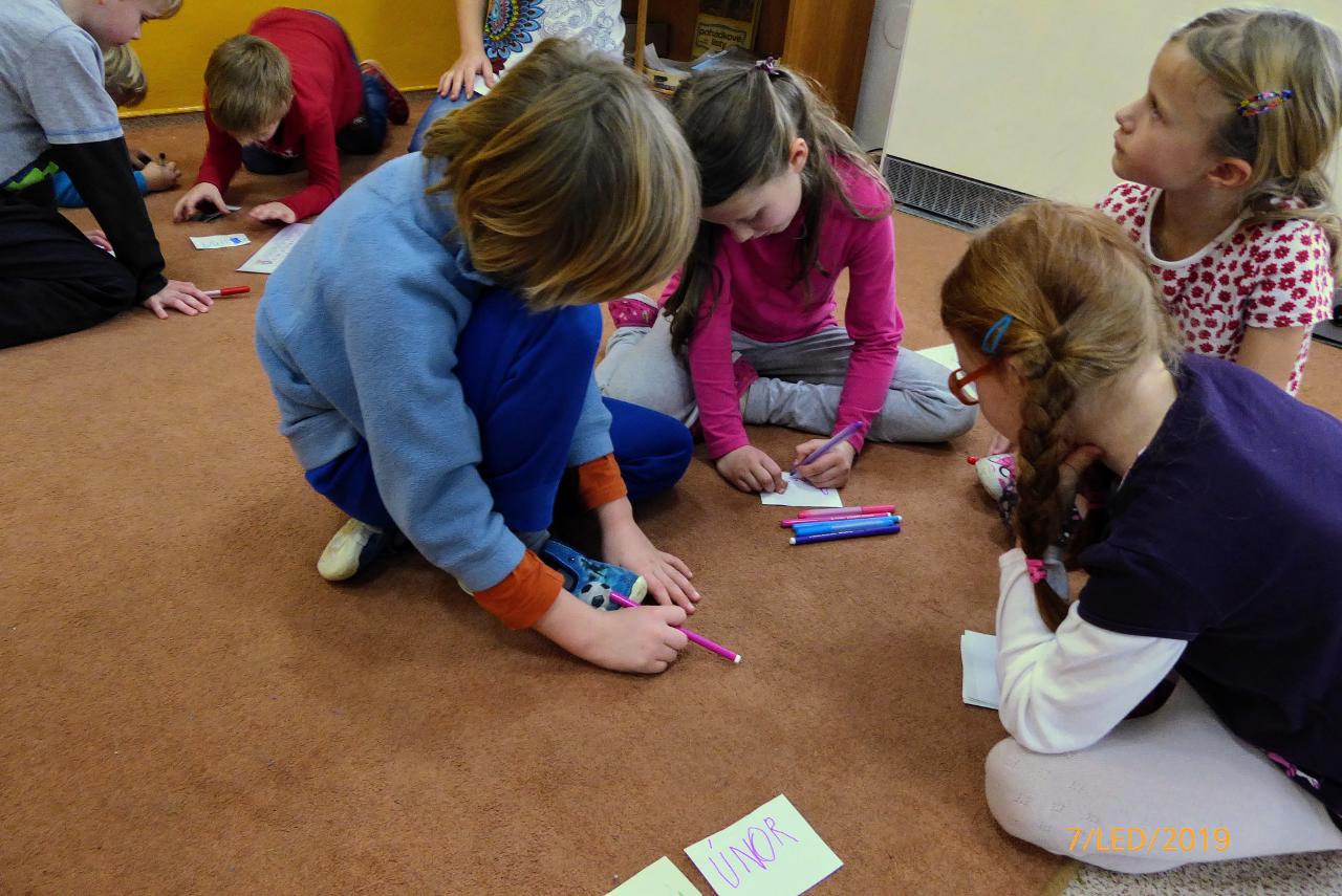 S novým rokem 2019 jsme spojili i hlavní téma týdne - kalendář a čas. Dotkli jsme se minulosti, přítomnosti i budoucnosti, připomněli si rytmus roku, měsíce, dny v týdnu i hodiny. Sdíleli jsme, jak u koho vypadá běžný den a bylo zajímavé pozorovat, kdy kdo vstává nebo chodí spát a jak se rytmus jednotlivých dní u každého něčím liší. Na globu jsme sledovali otáčení Země a jak a kdy na nás svítí Slunce a propojili si to s během celého 24hodinového dne. Také jsme si se staršími dětmi pokládali otázku plánování času a co nám k tomu pomáhá.