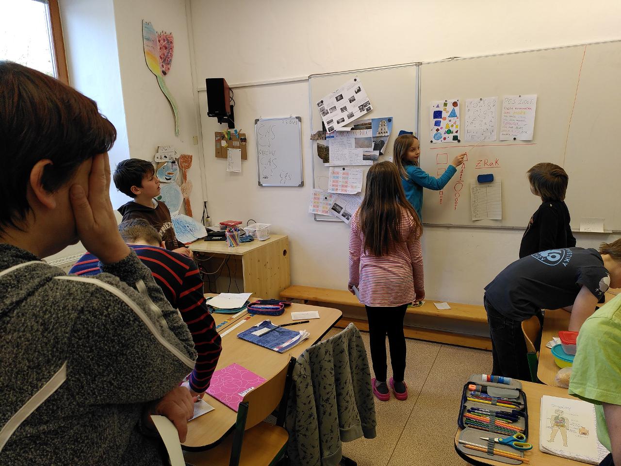 V týdnu, který nás přenesl do měsíce března jsme poznávali své tělo, měřili jsme, co změřit jde, jako je například tep, váha nebo teplota. Poznávali jsme i vnitřní orgány a jejich funkce. Během výstupu na Annapurnu jsme si zkusili, jak se (ne)dýchá ve vysoké nadmořské výšce. Připomněli jsme si i výročí Tibetského povstání a boje za svobodu. Kdo měl chuť mohl se společně vyfotit s tibetskou vlajkou. Pokročili jsme i v dalších předmětech, tvořili jsme plány města v angličtině a popisovali jsme jak se dostat třeba od kina k divadlu. A mířili jsme na jarní prázdniny…