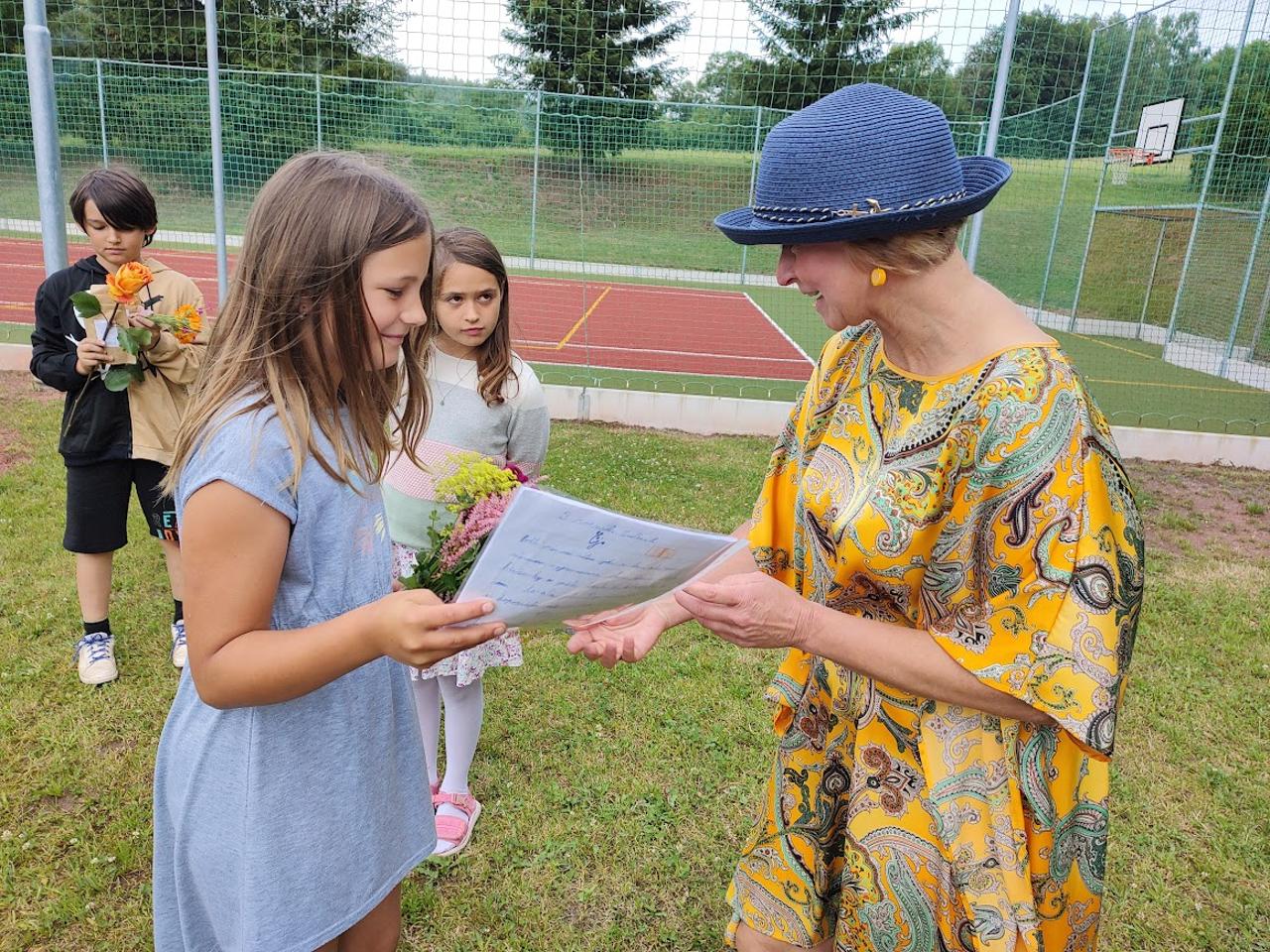 Zhodnotili jsme uplynulý školní rok, užili si Zahradní slavnost a také jsme se rozloučili s prvními deváťáky a také s třemi našimi spolužáky. Dostali jsme pozvánku od druhého stupně na Eurokonferenci ze zahraničního výjezdu. Hurá na prázdniny!!!