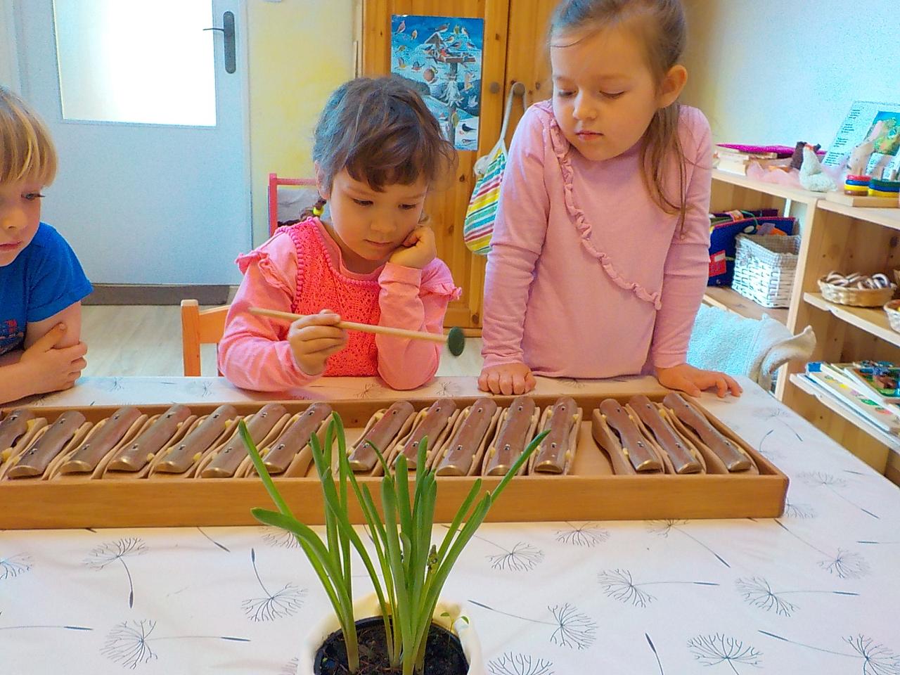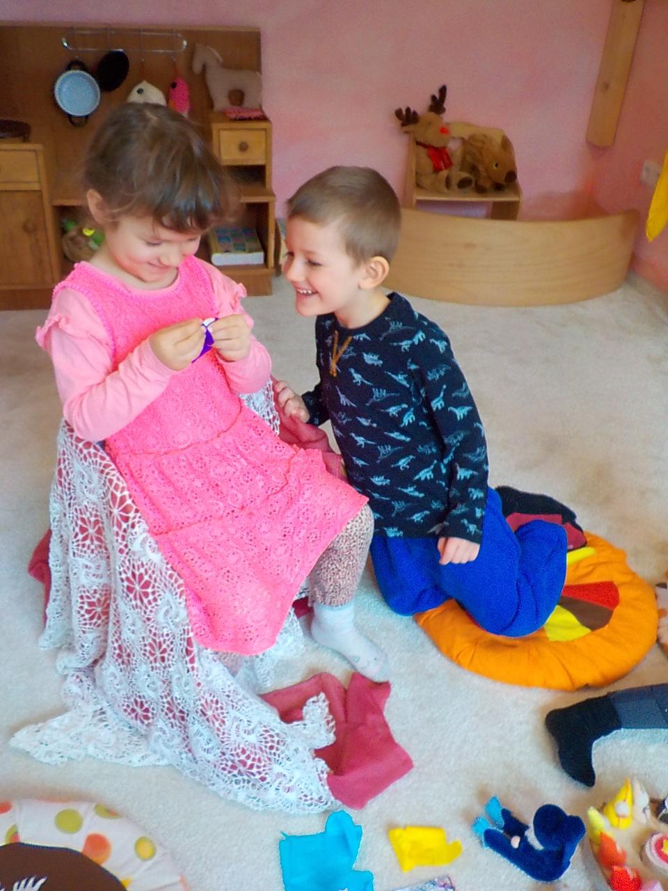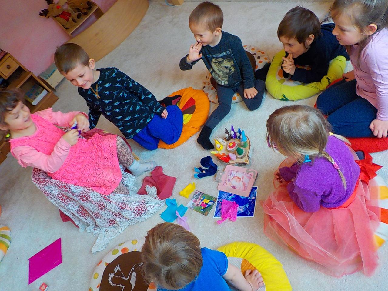 Děti si každé ráno a odpoledne moc pěkně společně hrají, z židliček staví velké lodě a auta a vyráží na dobrodružné výpravy – plují po moři, loví ryby, zachraňují princezny a někdy jsou moc nespokojené, že už je konec volné hry. Ale jakmile začneme společně pracovat, všichni se radostně připojí. Tento týden jsme měli téma májky. Malovali jsme, modelovali, pekli velké srdce, vystřihovali kytičky, vili věnečky a zdobili máj na návsi. Také jsme tančili a zpívali, hráli kruhové hry a také jsme dodatečně popřáli Róze k narozeninám...