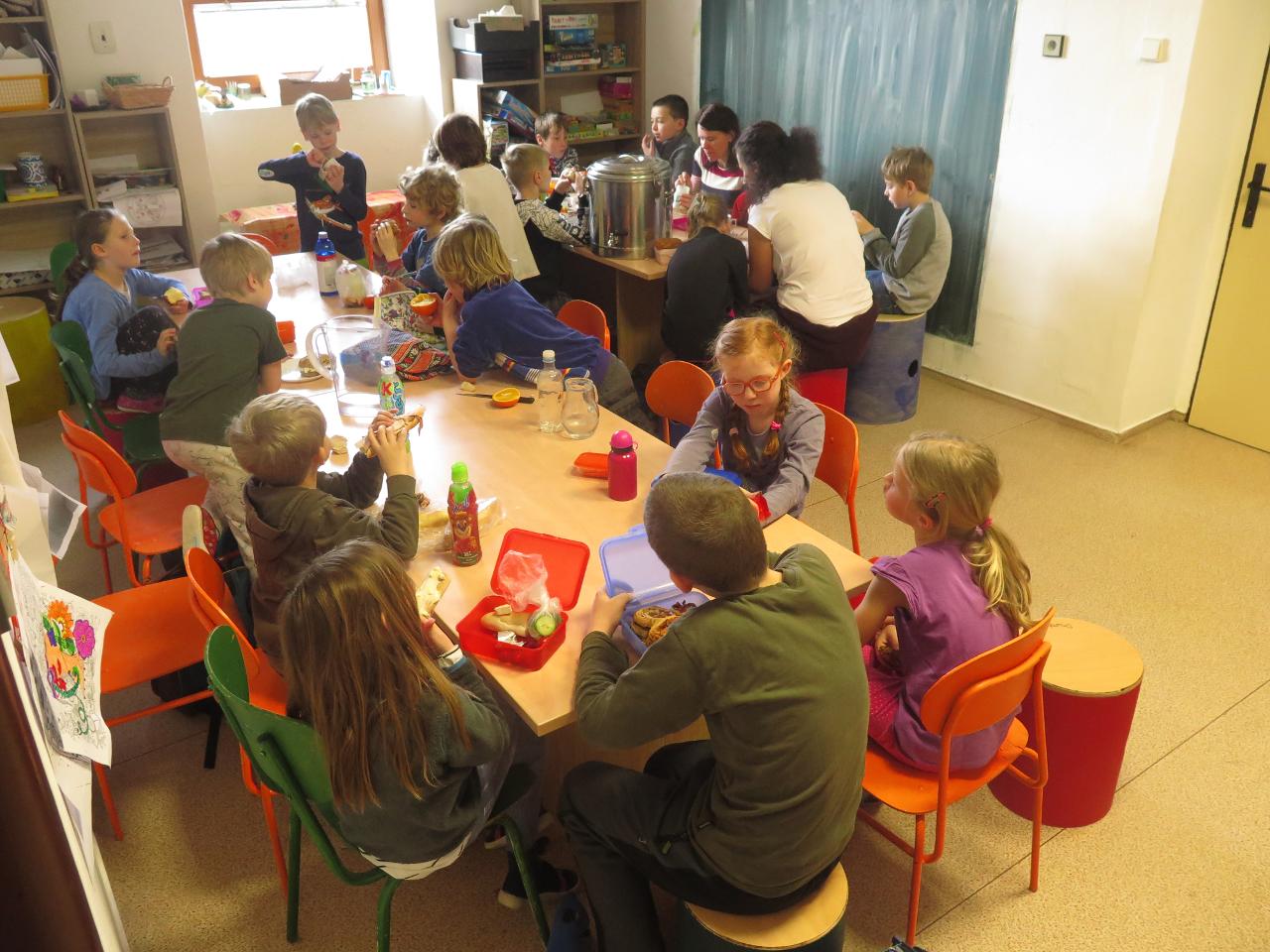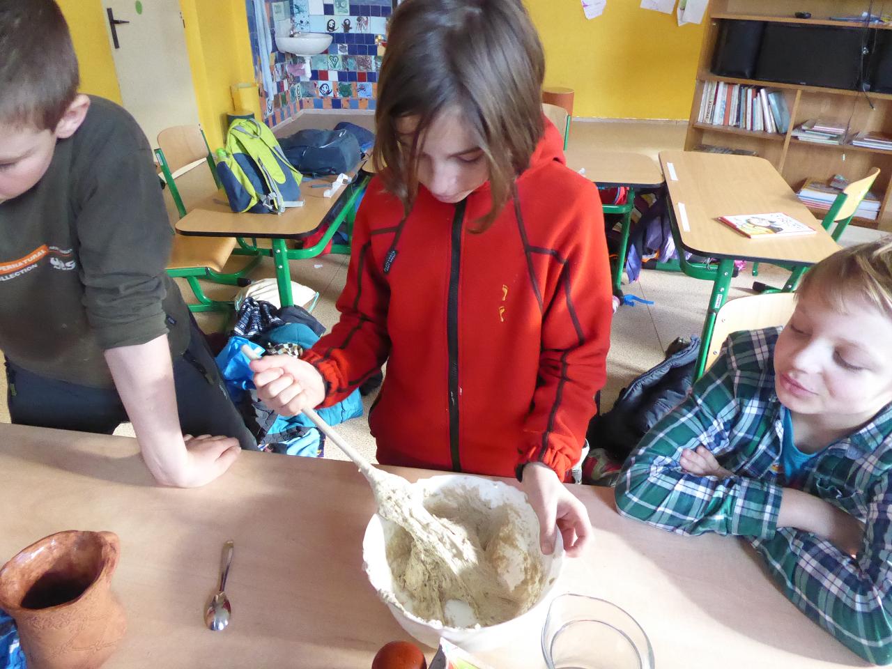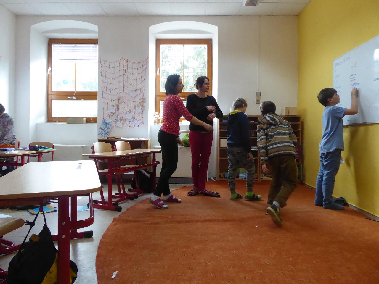 Začátkem března, v úterý 5.3. nás čekala masopustní veselice, na kterou jsme se i ve škole v pondělí a v úterý ještě připravovali. Školáci si dobarvovali masky, společně jsme pak pekli kváskový chléb, plnili maximravenci usmažené koblihy a připravovali taneční a hudební doprovod. V úterý odpoledne pak masopustní radost vypukla. Od mraveniště se vydal průvod vesnicí a jeho součástí byly postavy známé i neznámé.. medvěd, liška, bandita, kobyla, včelky a také radost nebo lesní tvorové. Po setkání s částí místních obyvatel jsme roztančili školní jídelnu a dali si k tomu spoustu dobrot - a pak přišel PŮST. Další část týdne jsme se již začali věnovat zimním sportům. V pátek se školákům plnilo další přání z nápadníčku a tak jsme mohli všichni společně zažít pyžamový den. Hned ráno jsme se převlékli do pyžama a celý den jsme se učili v tomto pro školu velmi netypickém oblečení :-) V rámci příprav na zimní výjezd jsme četli pohádku o Raškovi, kreslili jsme, jaké zimní sporty známe a poznávali jsme ty, které neznáme. Pouštěli jsme si ukázky sportů olympijských i jsme si četli svou oblíbenou knížku. Také pokračovalo nahrávání Markoušovického (mravenčího) rozhlasu moderátory Máťou a Šímou, kteří si odnesli velmi silnou motivaci k tvorbě přímo z hradeckého rozhlasu.