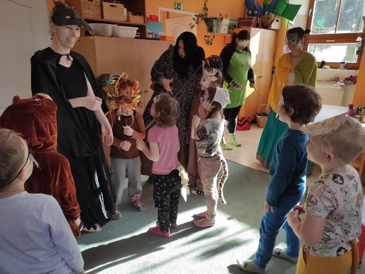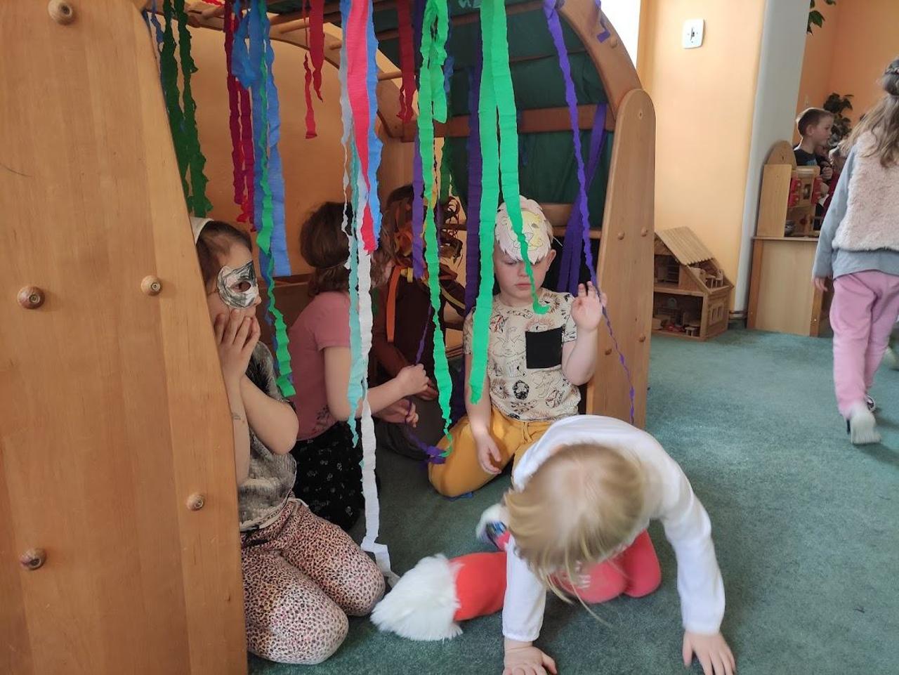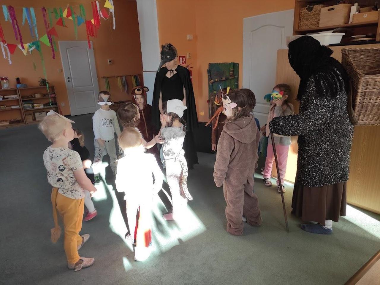 Tento týden je ve školce opravdu veselo a zvířátky se to tu jen hemží! Zpíváme, tancujeme, hrajeme třeba na kozu a chystáme se na společnou masopustní veselici. Tvoříme masky zvířátek a děti se tak proměňují ve lvy, kočičky, motýlky a další zvířátka. Pečeme masopustní koblížky, které jsou cítit až za dveřmi a zdobíme barevně školku, aby masopustní rej mohl brzy začít... Schválně, jestli přišla i babice?