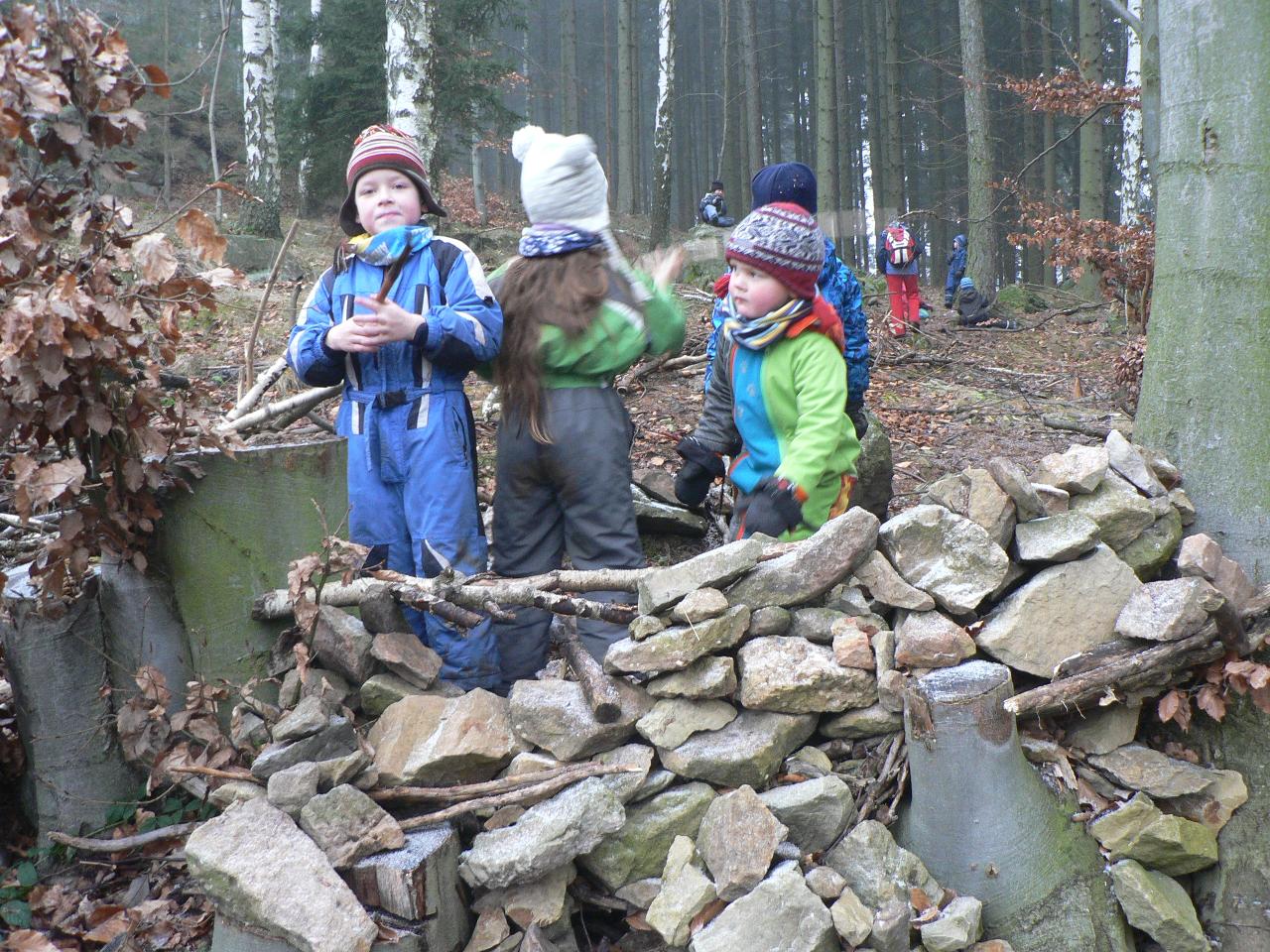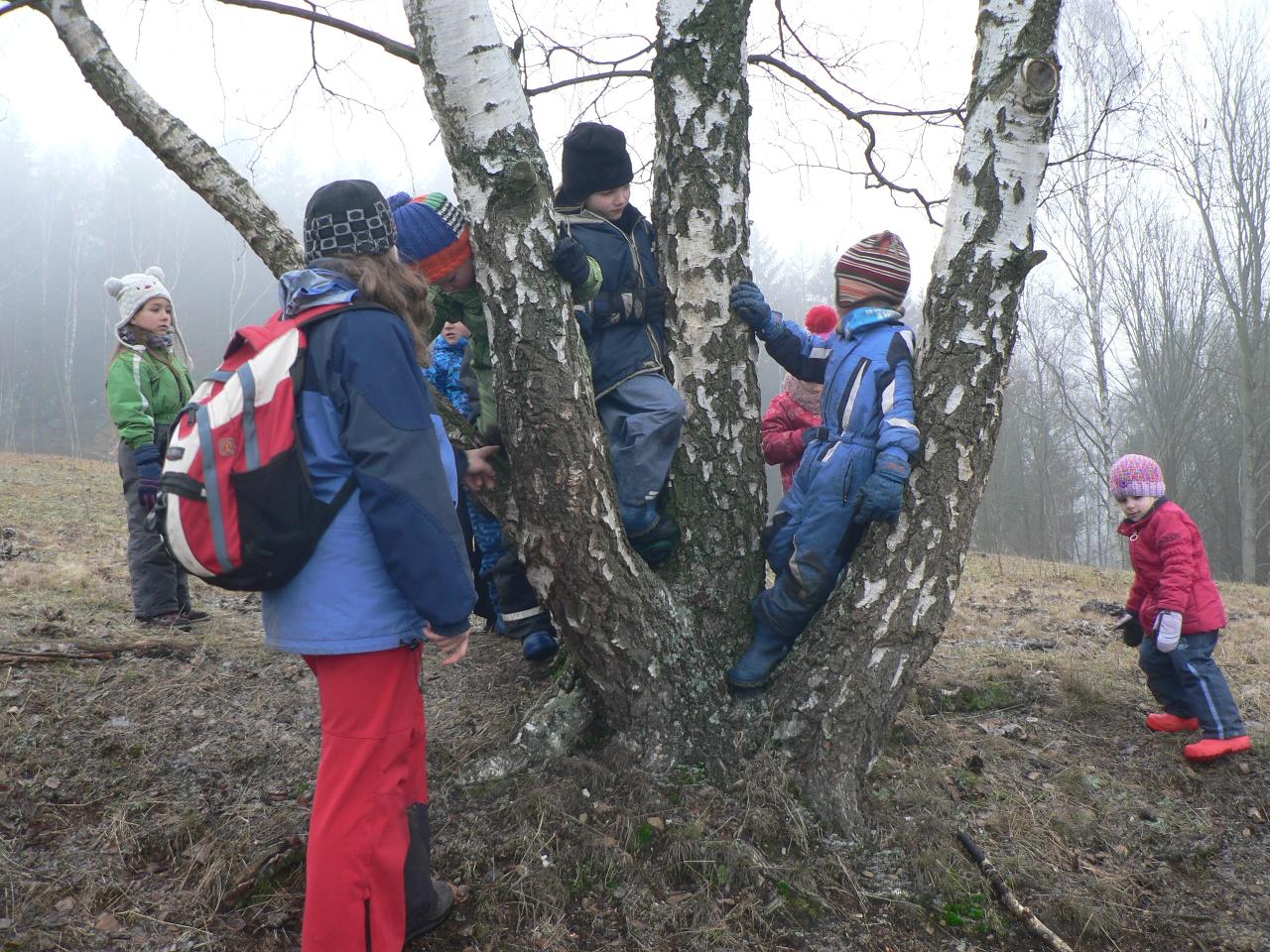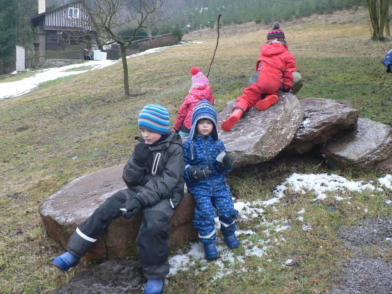 Tento týden jsme strávili ve společnosti medvídka Brumly, kterému se v zimě vůbec nechtělo spát a zažil díky tomu velké dobrodružství. Díky Brumlovi jsme zjistili, proč je pro medvědy zimní spánek tak důležitý a dozvěděli se o těchto velkých šelmách spoustu dalších zajímavostí. Třeba to, jak poznáme, že v lese žije medvěd, čím se takové velké zvíře živí, kdy se rodí mláďata, kde nejraději přezimuje a zda je pro člověka nebezpečný. Zjistili jsme také, že je více druhů medvědů a jak je od sebe můžeme poznat. Poznávali jsme také další zvířata, která v zimě spí a podle stop zjišťovali, která jsou vzhůru a můžeme je v lese zahlédnout nebo potkat u krmelce. Z papíru jsme vystřihovali a lepili medvědy v jeskyni, tiskli na papír stopy a otisky různých lesních zvířat, tvořili puzzle ze špachtlí a obrázkových ubrousků nebo malovali vánici prstovými barvami. Zpívali jsme medvědí písničku a vyzkoušeli si také medvědí bubnování. Venku nás provázelo proměnlivé počasí od sychravého mrholení, mlhavé dny až po krásně slunečno. Byl to velmi pestrý týden a jsme zvědaví, jaká překvapení nám přinese ten příští.