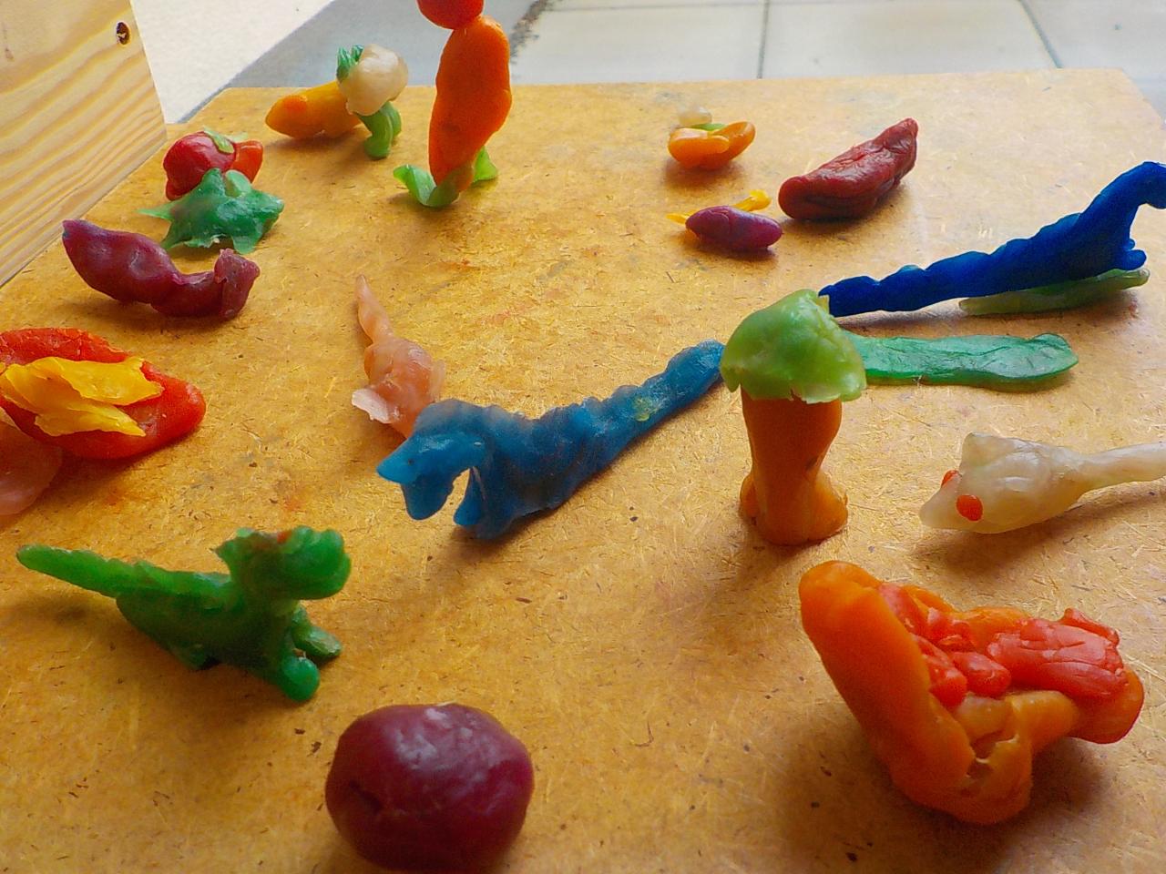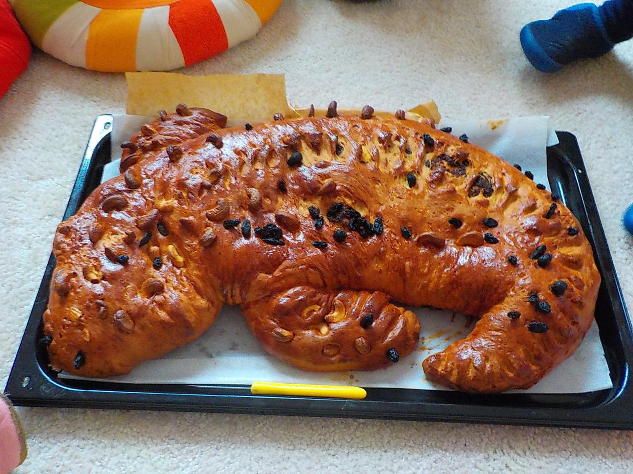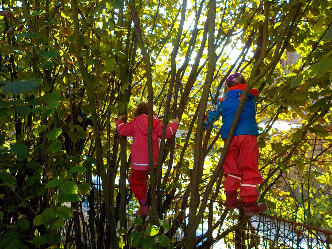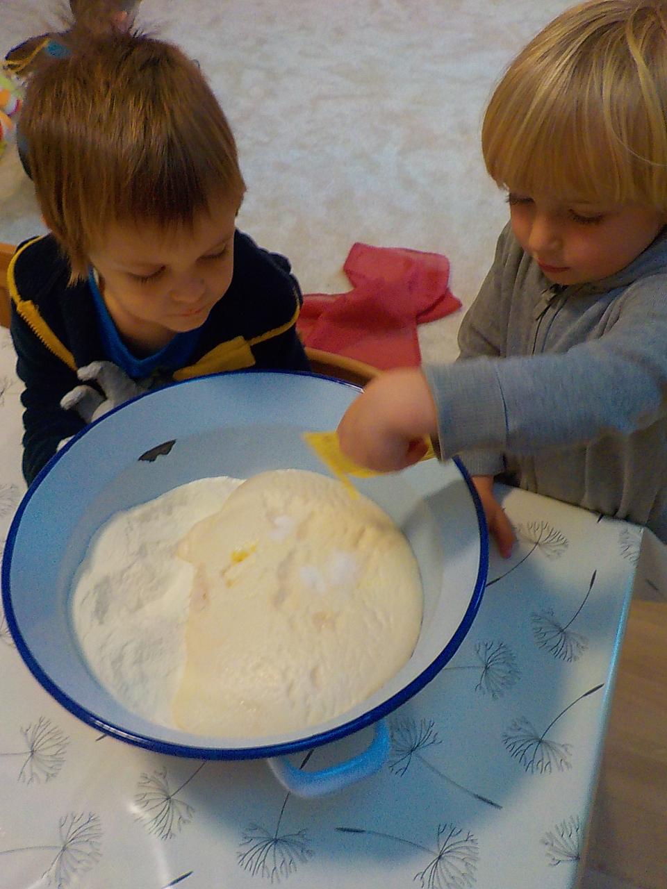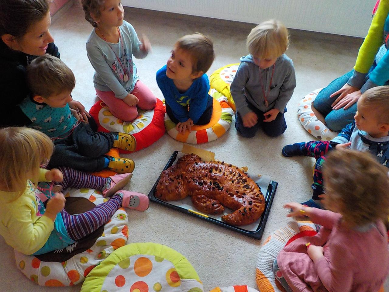 Po slunečných dnech se obloha zatáhla, jakoby Slunce svými křídly zastínil drak. Však jsme to také viděli v Pétině divadýlku, jak Michael s drakem odvážně bojoval a vyhrál. A jakou sílu a odvahu a teplo asi musí mít kovář ve své kovárně, když ková kladiva, podkovy a meče rytířům… To my, když se obloha trochu vyjasnila, jsme také vyzkoušeli velikost své odvahy. Posíleni písní a příběhy jsme se vydali stopách do lesa ke dračí skále a tam, vyzbrojeni železným mečem a duševním štítem se vydal jeden za druhým vpřed. Na konci cesty, každý nalezl kouzelné jablíčko a sluníčko, které mu bude připomínat odvahu a jasnost svatého Michaela. Do jednoho velkého draka jsme se také ve čtvrtek zakousli při svačině – upekli jsme ho z kynutého těsta, máku a jablek. Draka jsme si také ve čtvrtek vystřihovali podle ruky a v pátek vyrobili z javorových listů.