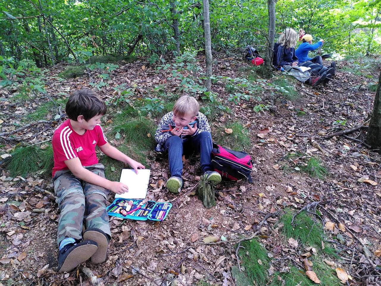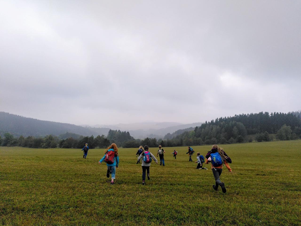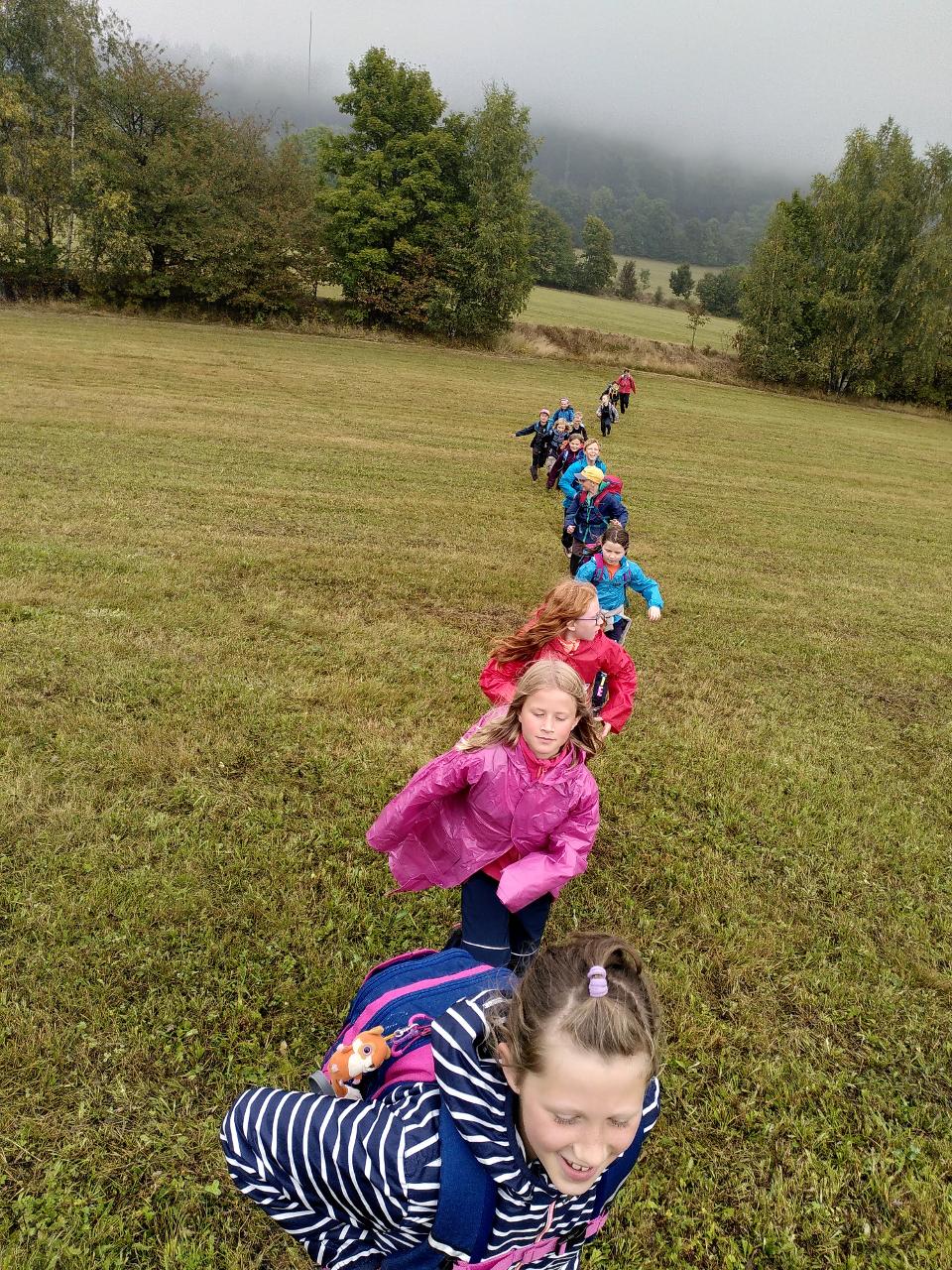 A zářijové dny běží dál, školáci třídy II. začali poznávat místo, kde žijeme skrz myšlenkové mapy i výpravy do okolí. Přírodu zdobili pomocí LandArt, v angličtině nakreslili komiks o svých prázdninových aktivitách. Ve čtvrtek se vydali objevovat místo, kde žijí. Pozorovali, jak okolí vypadá, mluvili s místními obyvateli, četli rozmanité tabule a cedule nejen v češtině. Z Markoušovické rozhledny hledali svůj dům a hlavní rysy okolní krajiny. Společně překonali pavoučí síť a na mapě našli cestu dál.. Z hřebene seběhli prudkou strání i po posekaných lukách, na kterých dříve lidé pěstovali plodiny pro svou obživu. Čtenářskou dílnu nyní poznávají jak v českém jazyce, tak i v angličtině prostřednictvím titulů zjednodušené četby.