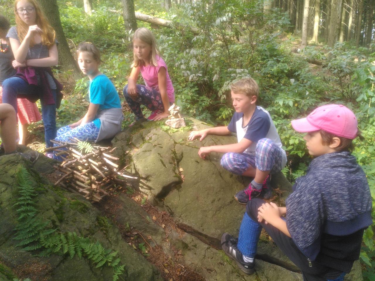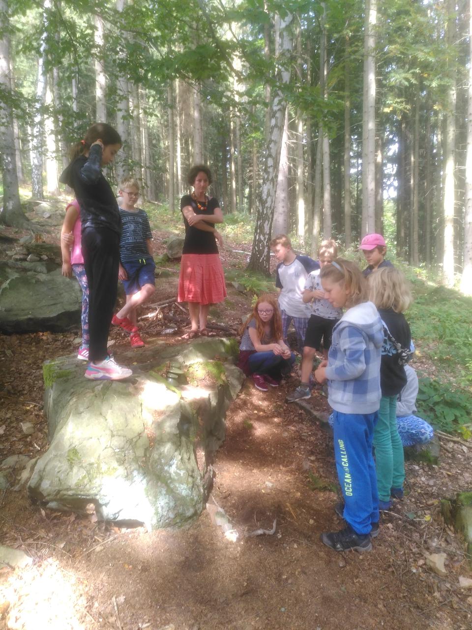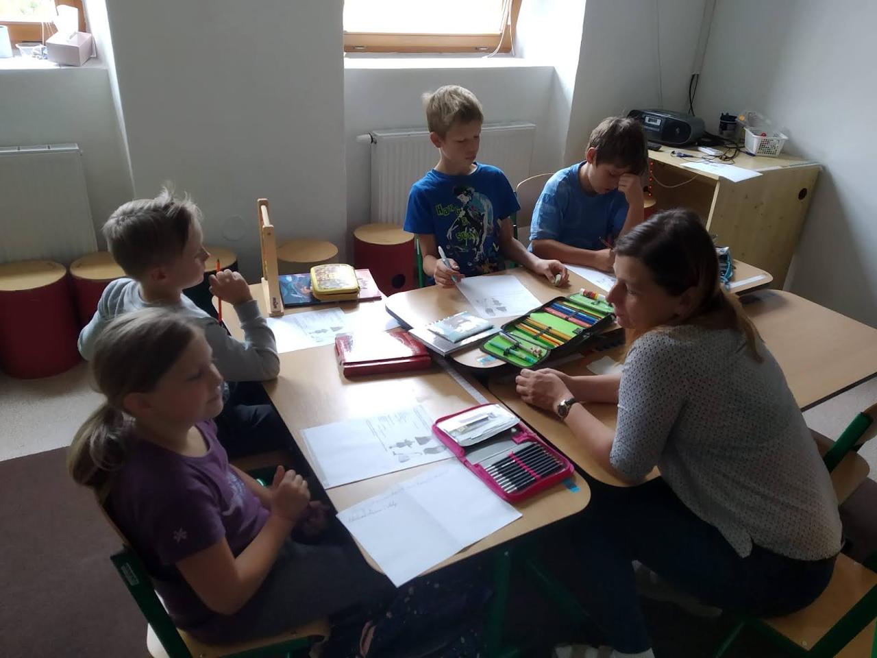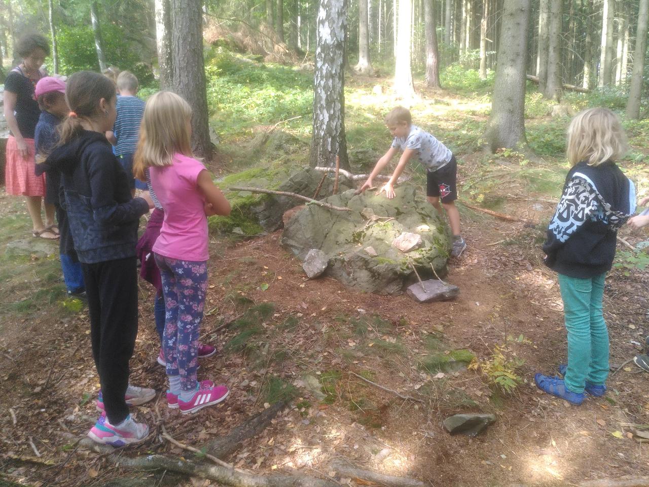 A zářijové dny běží dál, školáci třídy II. začali poznávat místo, kde žijeme skrz myšlenkové mapy i výpravy do okolí. Přírodu zdobili pomocí LandArt, v angličtině nakreslili komiks o svých prázdninových aktivitách. Ve čtvrtek se vydali objevovat místo, kde žijí. Pozorovali, jak okolí vypadá, mluvili s místními obyvateli, četli rozmanité tabule a cedule nejen v češtině. Z Markoušovické rozhledny hledali svůj dům a hlavní rysy okolní krajiny. Společně překonali pavoučí síť a na mapě našli cestu dál.. Z hřebene seběhli prudkou strání i po posekaných lukách, na kterých dříve lidé pěstovali plodiny pro svou obživu. Čtenářskou dílnu nyní poznávají jak v českém jazyce, tak i v angličtině prostřednictvím titulů zjednodušené četby.