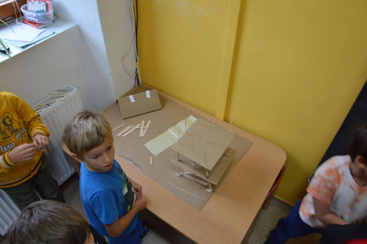 V tomto týdnu jsme společně prožili pouze tři dny - ve čtvrtek a v pátek jsme měli ředitelské volno, protože dospěláci se zúčastnili vzdělávací konference "Učení pro život" v Broumově. Navázali jsme na téma z minulého týdne, pracovali jsme s výletníčkem a radostně jsme si vyprávěli o zážitcích z markoušovické rozhledny. Několik rozhleden jsme dokonce vyrobili :-) Neopomněli jsme samozřejmě práci v matematice i českém jazyce. A tak svůj prostor dostaly krychlové stavby, dřívka nebo hrátky s písmenky.