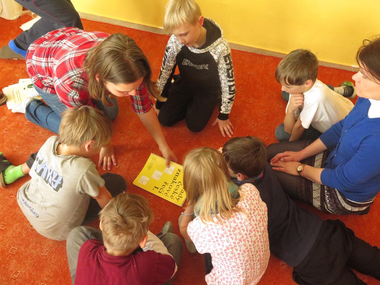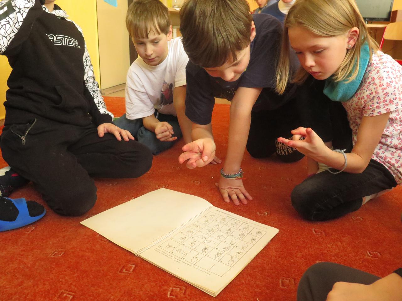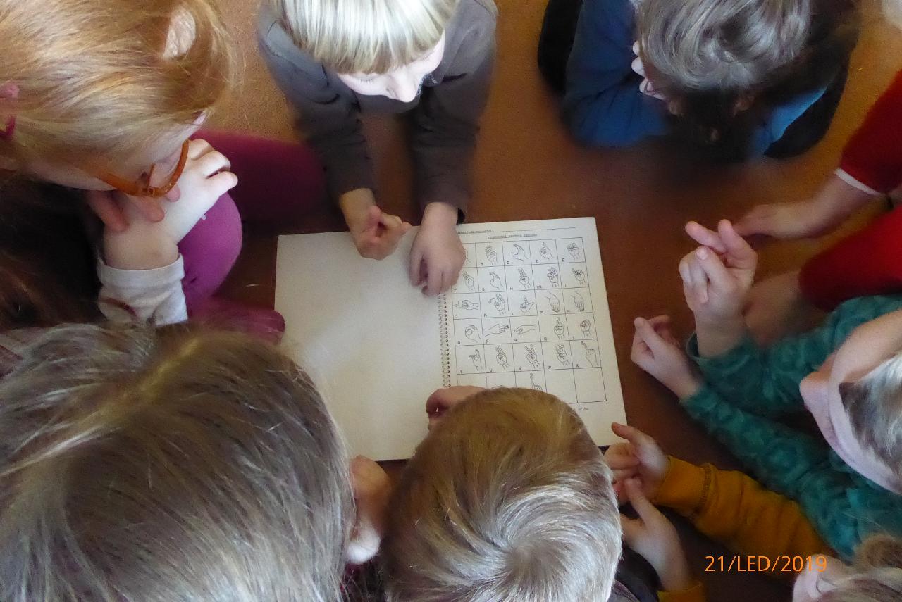Tento týden jsme pokračovali v tématu “jak spolu mluvíme” a naše téma nás zavedlo k různým jazykům nebo k lidem s nějakým handicapem. Společně jsme mapovali, jak se nejlépe domluvit s neslyšícím, nevidomým nebo tělesně postiženým člověkem. Také jsme poslouchali a zkoumali různé jazyky z celého světa. Před středečním plaváním nás pak čekali scénky o (ne)dorozumění. A tak jsme přicházeli na to, jak k nedorozumění dochází a zkoušeli hledat možná řešení, aby k nim pokud možno nedocházelo.