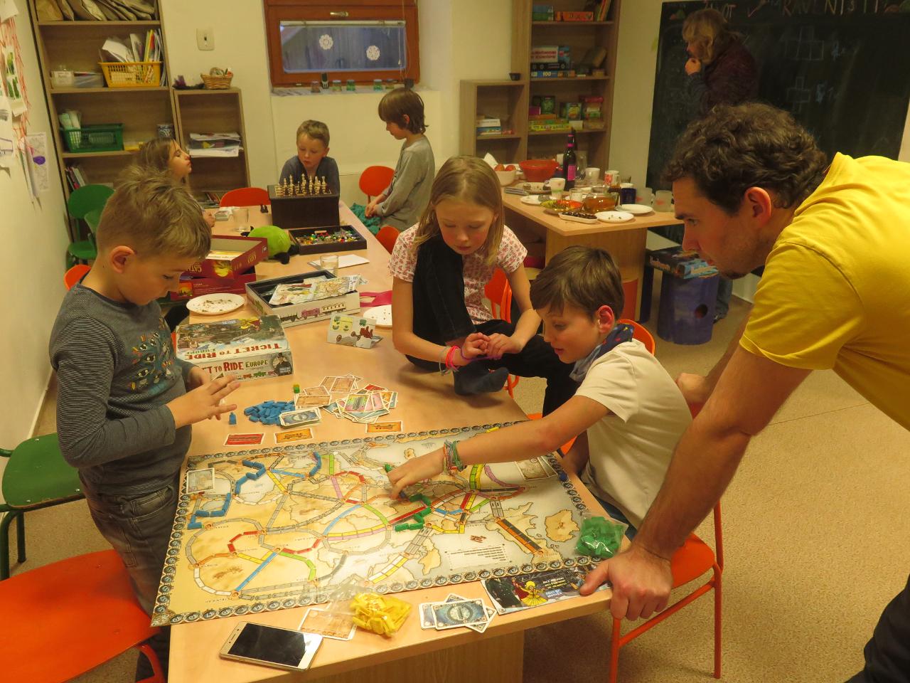 Ve škole jsme v tomto týdnu někteří strávili čas až do večerních hodin: v úterý proběhla beseda se zájemci o školu a ve čtvrtek pak dlouho očekávané “deskohraní” spolu s rodinami školáků. Těšíme se zase na příště:)