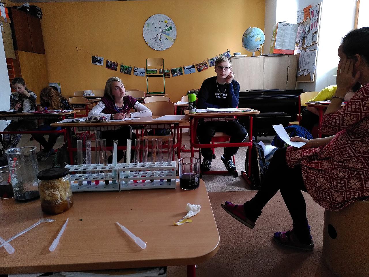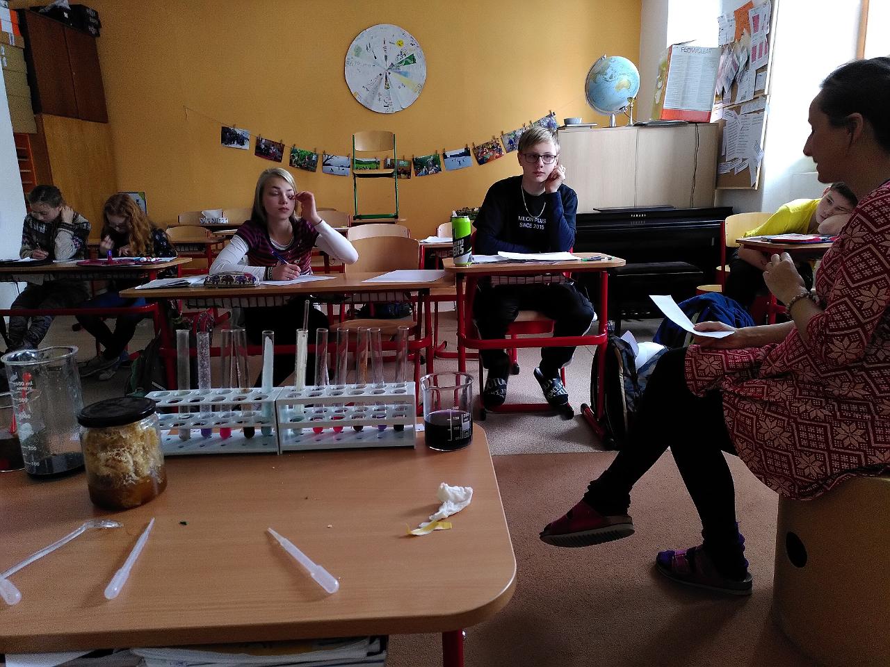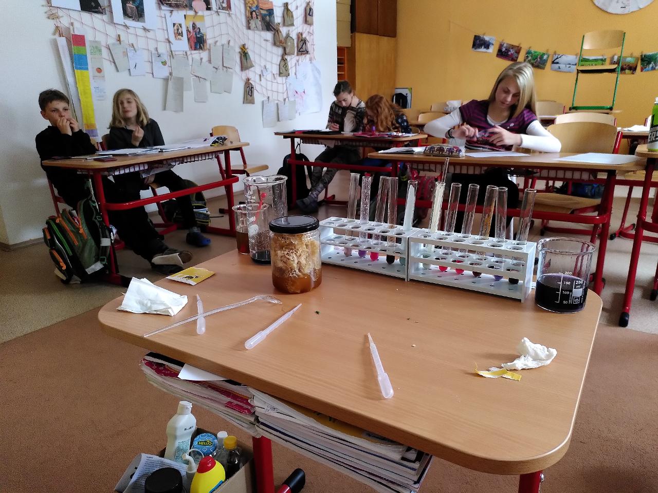 Ve třídě VIII. jsme se podívali na to, jaké barvy a další krystaly pro nás nachystala příroda. Pod mikroskopem jsme se pomocí polarizovaného světla dívali na krystaly různých látek.