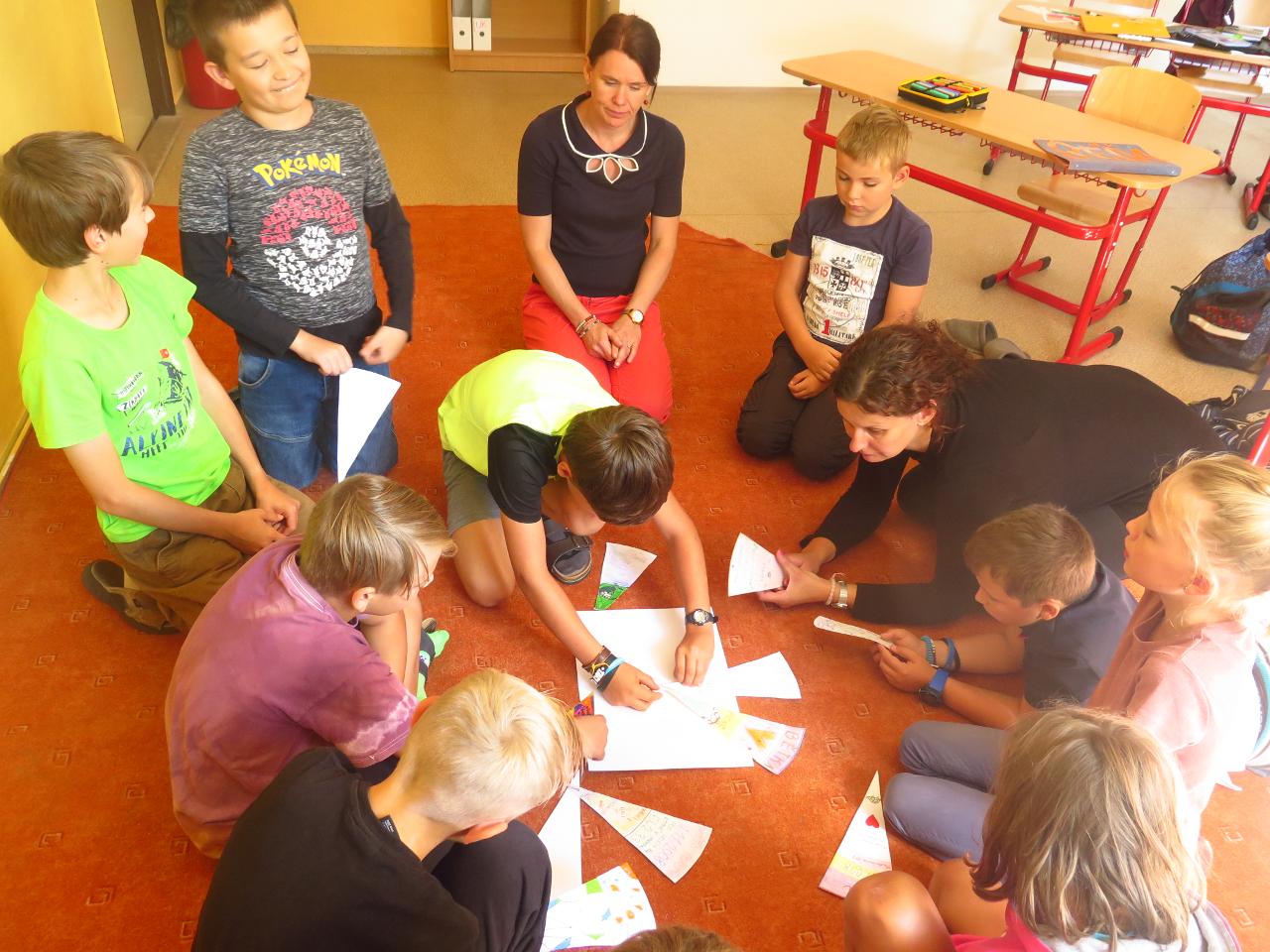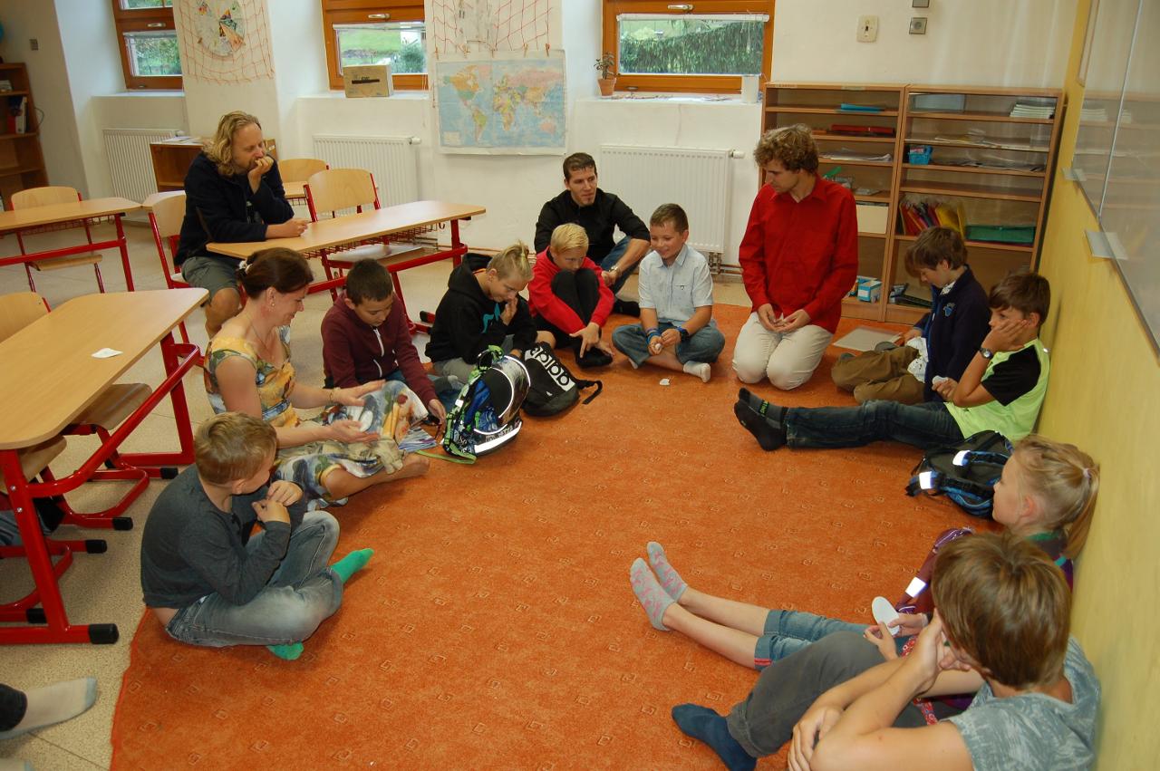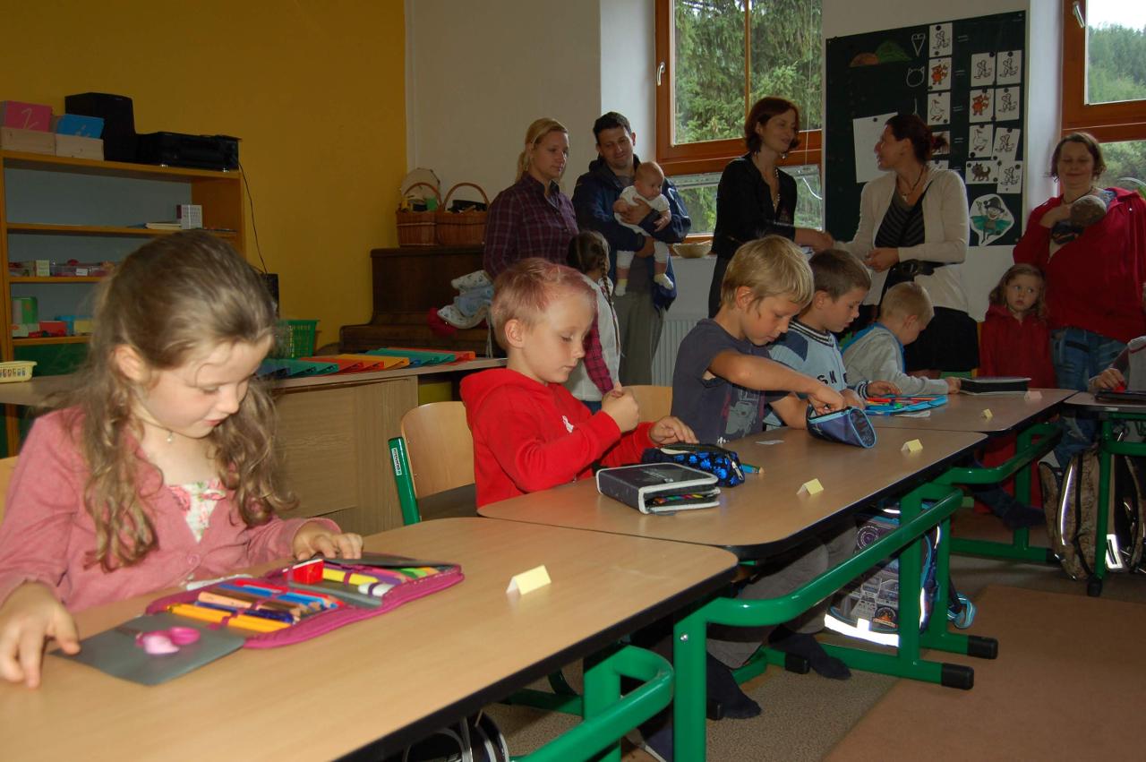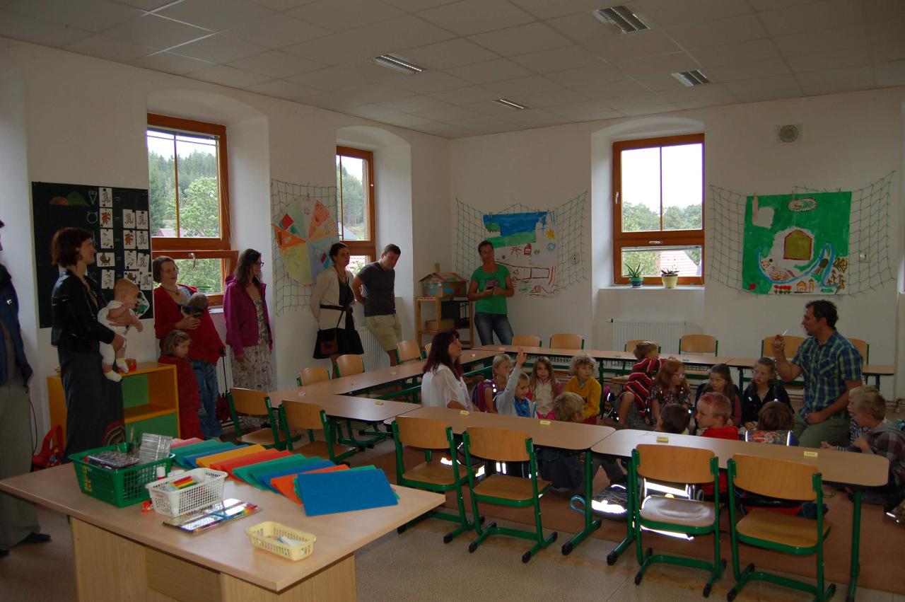 Pondělí 2. září nám otevřelo brány nového (již pátého) mravenčího školního roku. Školáci si na markoušovické návsi nejdříve v doprovodu svých rodin zazpívali mravenčí písničku v novém rytmu a pak si každý našel svého papírového mravence. Společně jsme poté zamířili na uvítání nejen prvňáčků ve staronových školních prostorách. V šatně a na schodech si pak třídní učitelé Zdenda a Míša převzali své školáky a zavedli je do tříd. Tam jsme si sdíleli zážitky z prázdnin a každý si vybarvil a umístil do mraveniště svého mravence. Na závěr prvního dne jsme si dali společnou svačinku, což je rituál, který nás bude provázet i nadále celým školním rokem.
