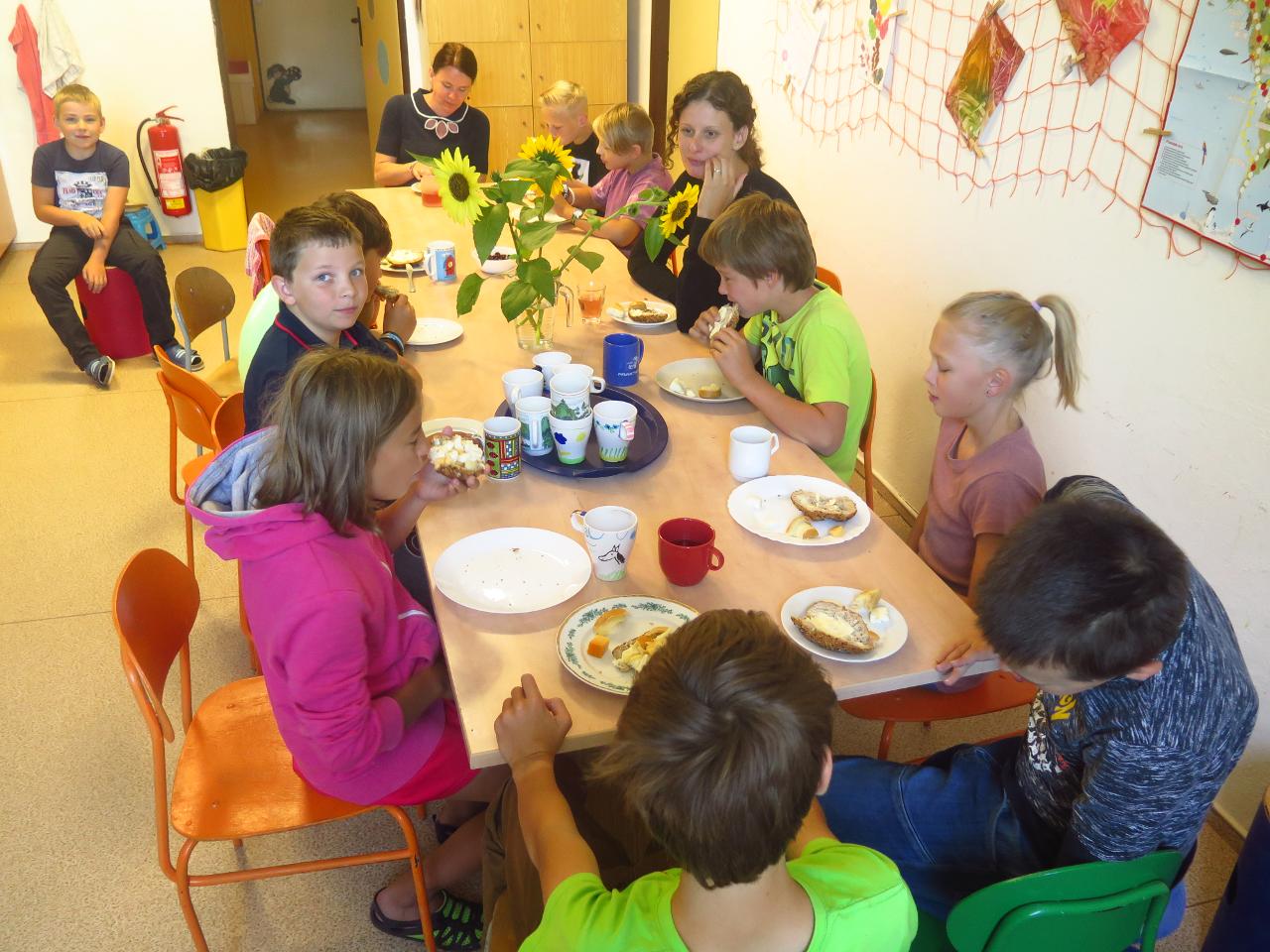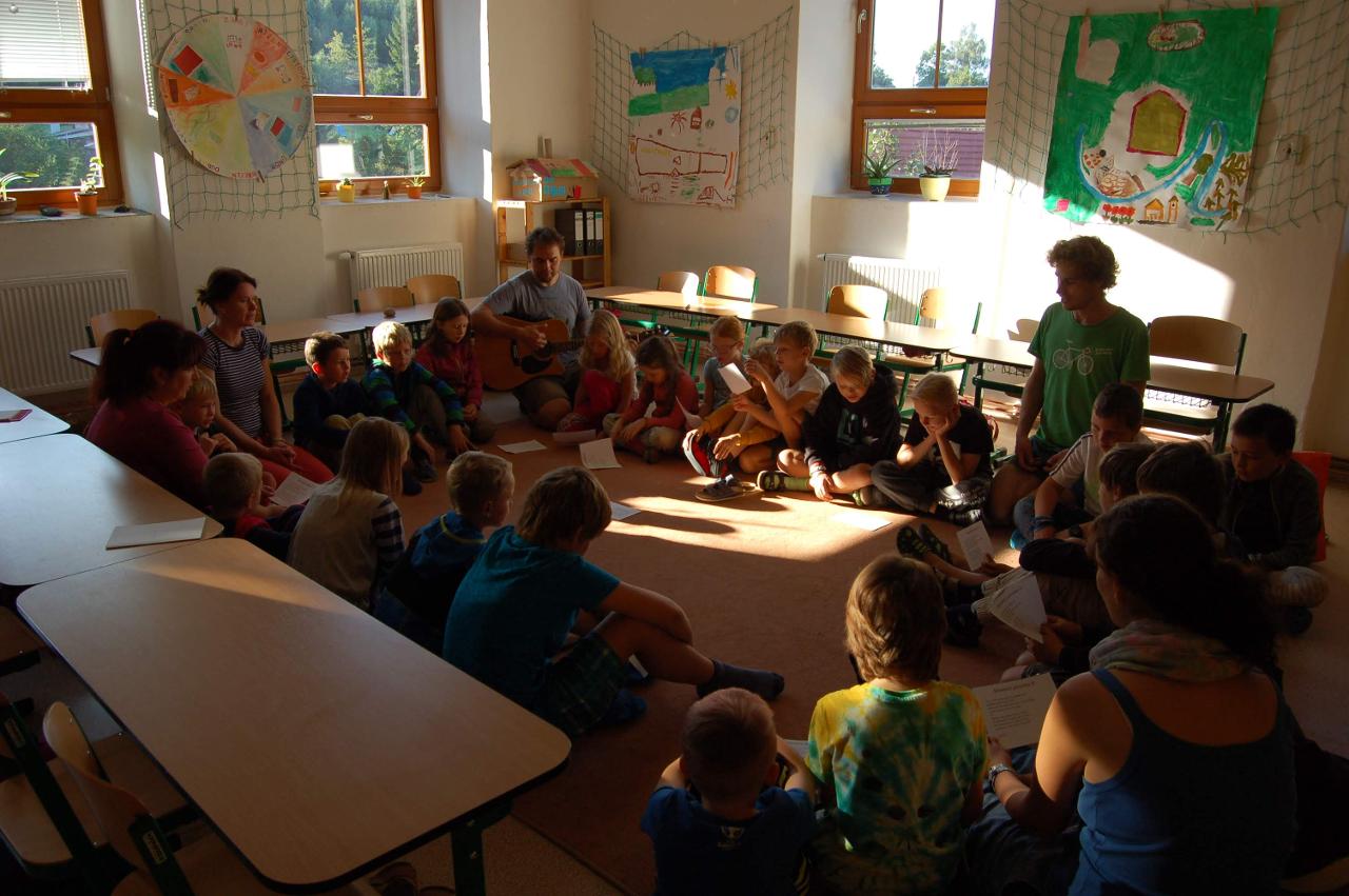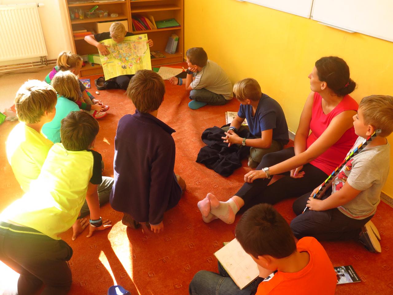 Pondělí 2. září nám otevřelo brány nového (již pátého) mravenčího školního roku. Školáci si na markoušovické návsi nejdříve v doprovodu svých rodin zazpívali mravenčí písničku v novém rytmu a pak si každý našel svého papírového mravence. Společně jsme poté zamířili na uvítání nejen prvňáčků ve staronových školních prostorách. V šatně a na schodech si pak třídní učitelé Zdenda a Míša převzali své školáky a zavedli je do tříd. Tam jsme si sdíleli zážitky z prázdnin a každý si vybarvil a umístil do mraveniště svého mravence. Na závěr prvního dne jsme si dali společnou svačinku, což je rituál, který nás bude provázet i nadále celým školním rokem.