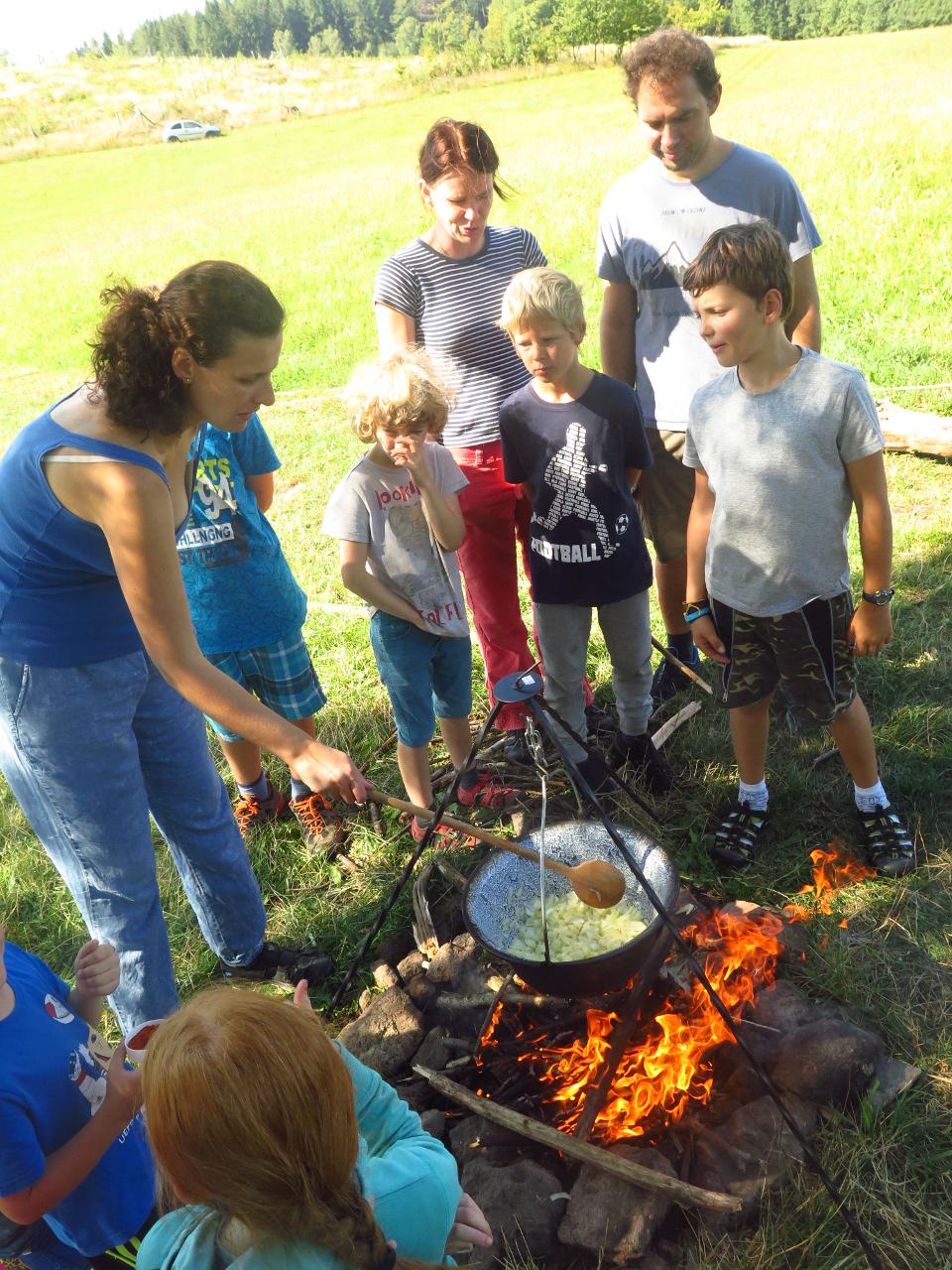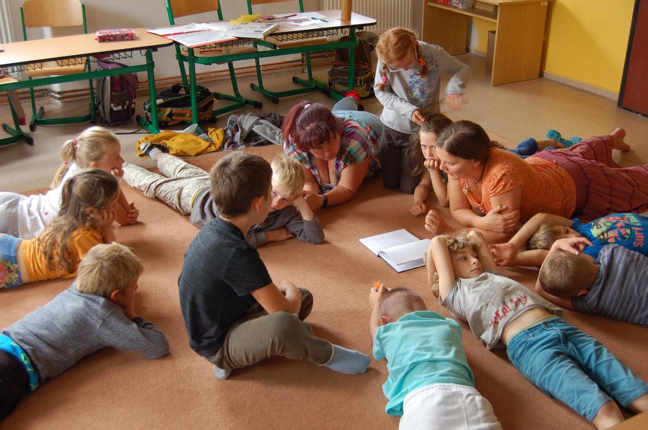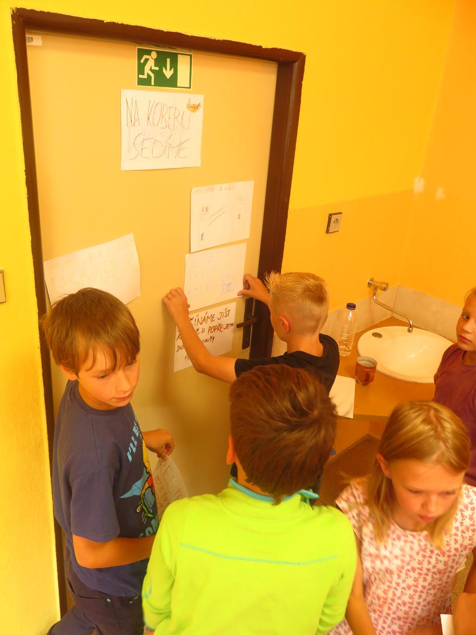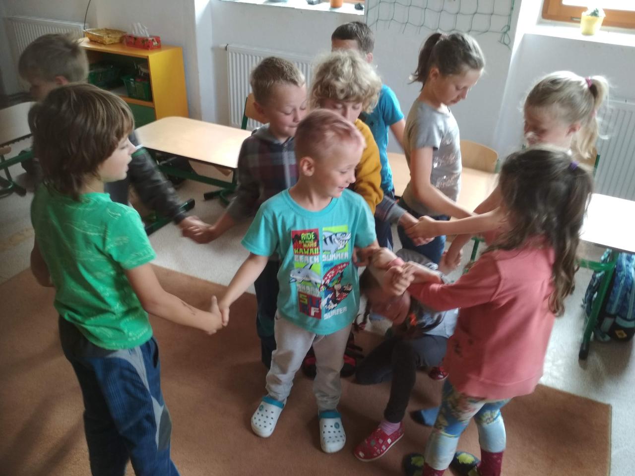První týden byl zaměřený na spolupráci, poznání prostředí třídy či školy a vzájemnou podporu bezpečného prostředí pro každého z nás. A tak jsme od začátku tvořili společná pravidla v jednotlivých třídách, která nám pomůžou vytvořit příjemné prostředí podporující učení. Ukazovali jsme si, sdíleli a malovali jsme, co kdo zažil během letních měsíců, příběhy nás zavedly od táborů, jižních Čech přes zábavné parky nejen v Polsku až po cestu vlakem k Jadranu. Hráli jsme hry ve třídě i venku, které podporovaly poznání nových spolužáků nebo jsme objevovali nový rytmus dnů - kromě ranní svolávací písničky jde například o prodloužení velké přestávky, která nám nyní umožní vyběhnout po svačince ven. Ve čtvrtek jsme se vypravili “k bříze” uvařit společně zeleninový guláš a díky tomu jsme poznali, co je vše potřeba - od přípravy surovin až po zapálení ohně a míchání dobrot v houpajícím se kotlíku. Celým týdnem nás provázelo výborné jídlo z nové mravenčí školní jídelny od šéfkuchařky Evičky Veselé. Týden jsme zakončili zdobením hrnků, první čtenářskou dílnou a společným celoškolním setkáním u mravenčí písničky.