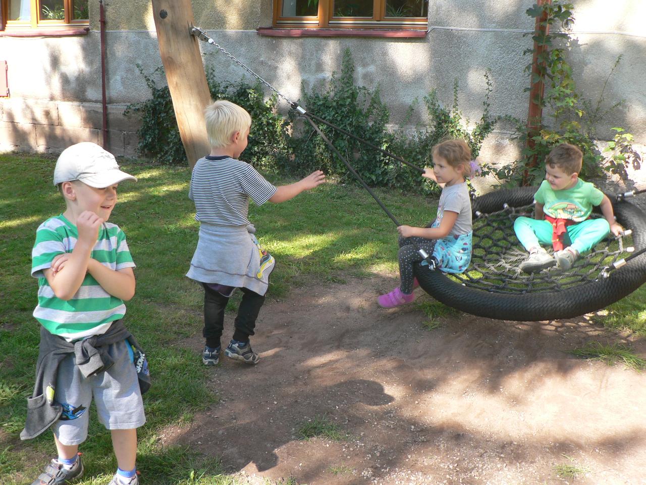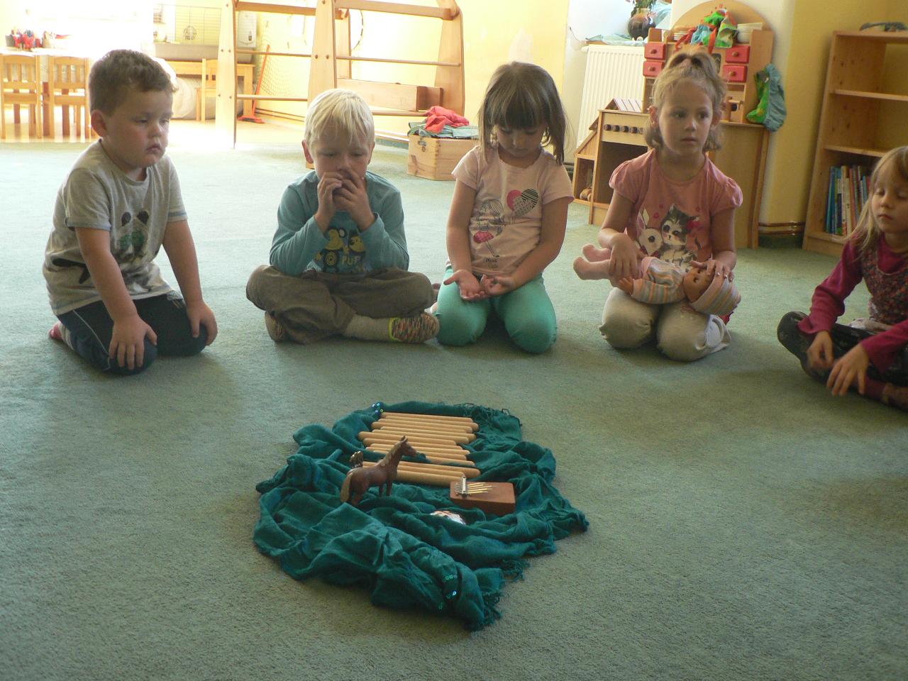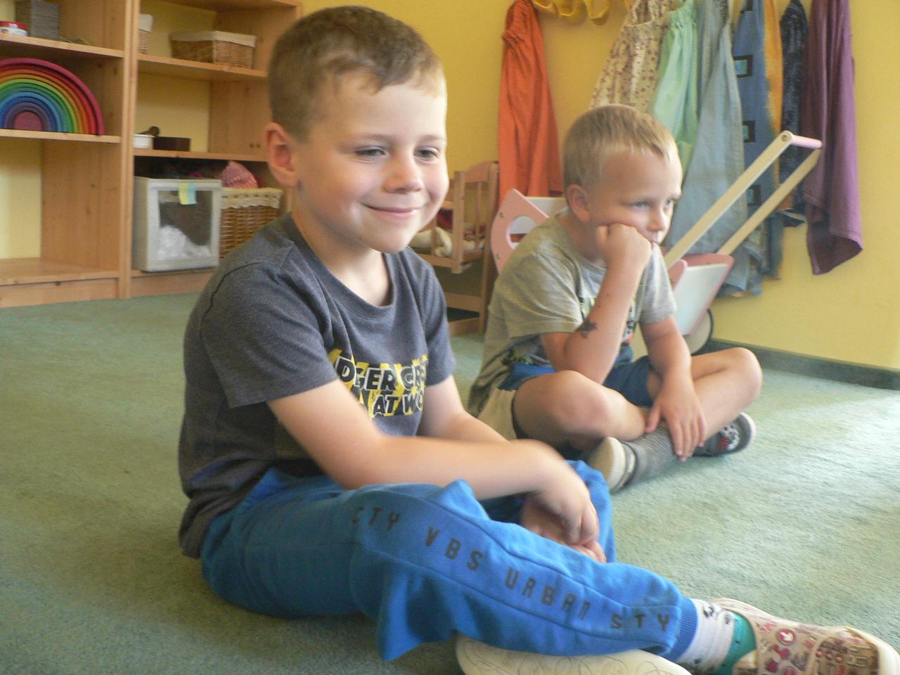 První týden po letních prázdninách jsme ve školce strávili vzájemným poznáváním a seznamováním se. Sešli jsme se ve staronovém kolektivu a začali jsme společně tvořit prostor, ve kterém se budeme cítit dobře a který nám i dětem bude vzájemně vyhovovat. Děti si pomalovaly látkové pytlíčky do skříněk v šatně, společně jsme vytvořili kalendář se jmény a narozeninami na nový školní rok. Pozornost jsme věnovali také zútulňování herny, zdobení oken a přesazování květin do nových květináčků. Děti nám vypravovaly o svých letních cestách a výletech a podnikli jsme hned několik výprav do okolí školky. Pozorovali jsme, co se děje v trávě, zkoušeli lézt po stromech, běhali po loukách a svou obratnost děti trénovaly také na hřišti před školou. Vyrazili jsme i do lesa, kde někteří stavěli domečky a jiní odvážně lezli po skalách a po kamenech. Naučili jsme se také nové říkačky, připomněli si oblíbené hry a seznámili se s písničkou a hudebními nástroji. Při tom všem jsme se učili vzájemnému respektu, podpoře a spolupráci. Nový školní rok je zahájen a my se těšíme, jaká nová dobrodružství společně prožijeme.