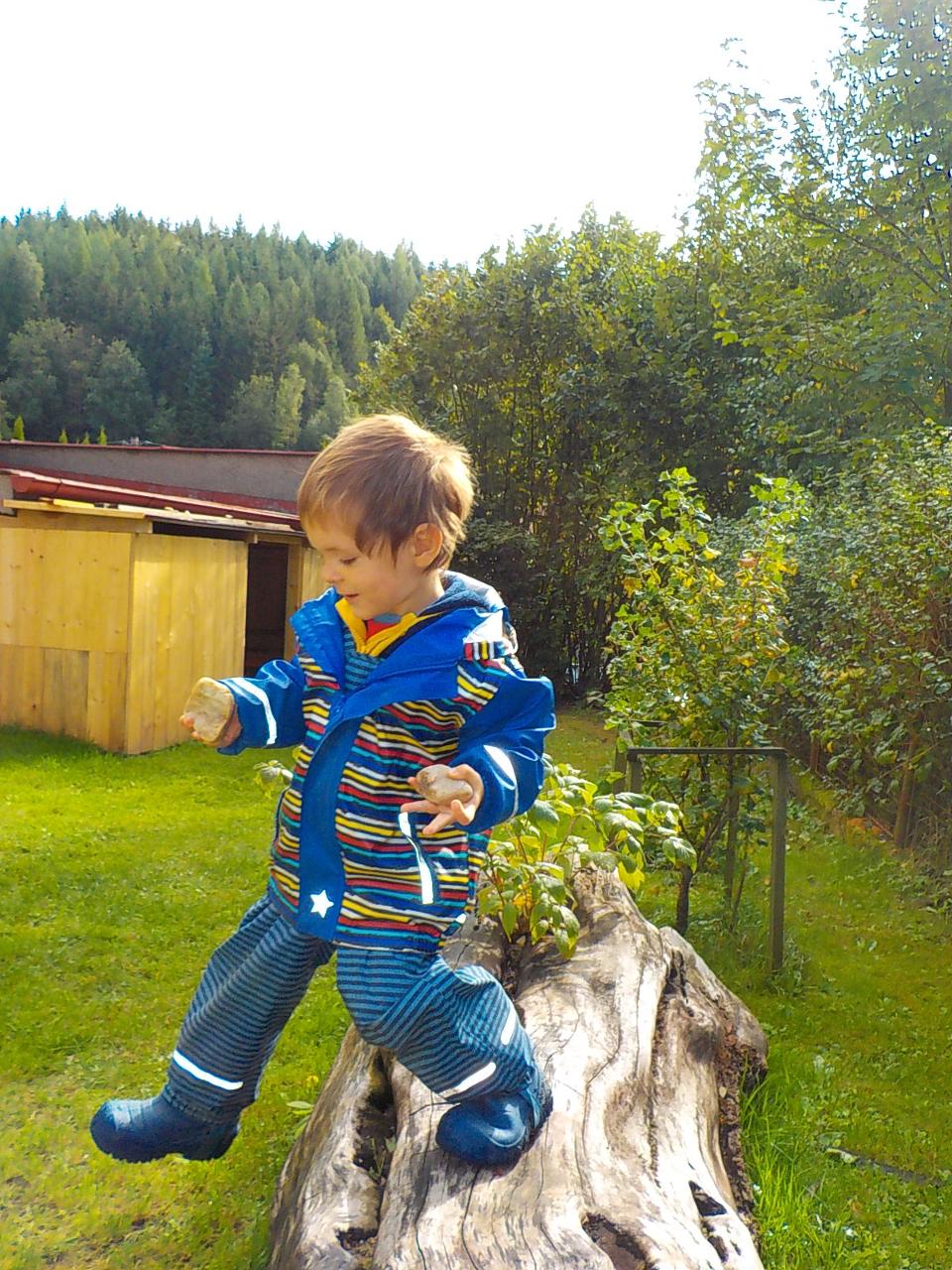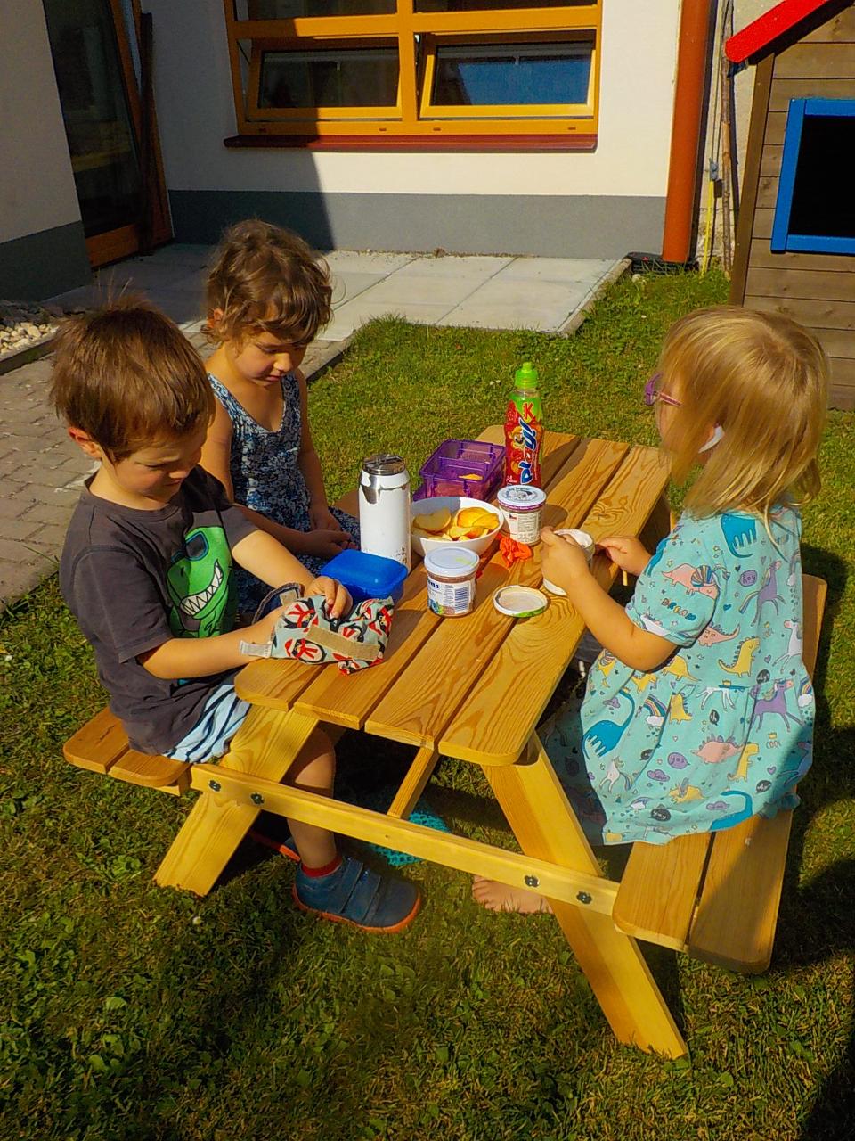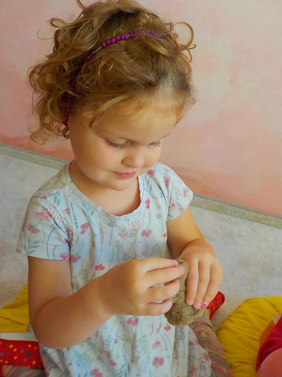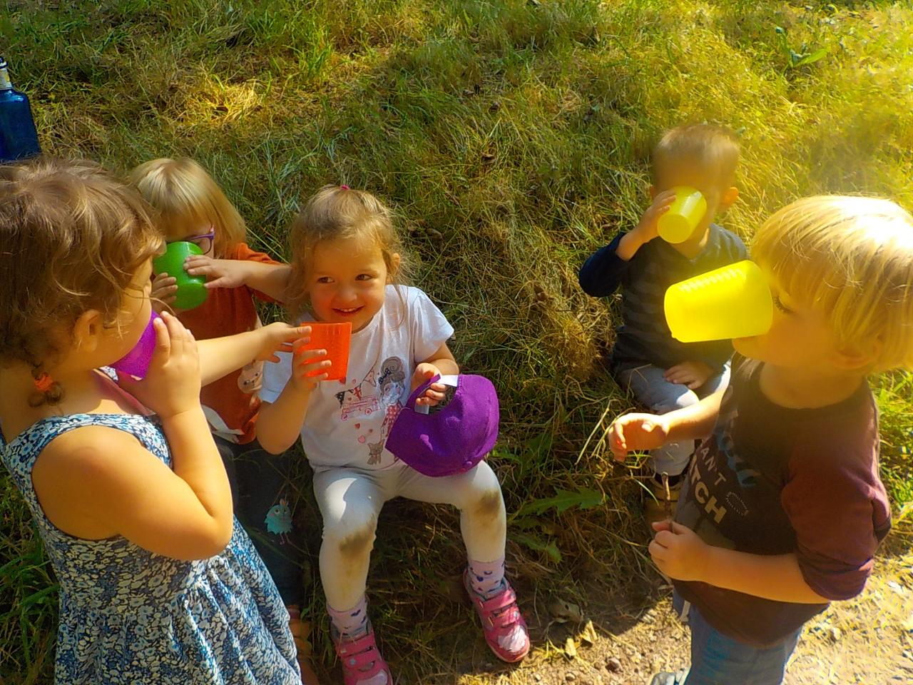 Víte-li pak, jak sedláček obilíčko seje, seče, váže, mlátí, mele a peče? My už to víme. Semínkem v zemi to začalo a semínkem v podobě rozemleté mouky a upečeného chlebíčka to končí. Každá z té dlouhé řady činností má své kouzlo. Klásky jsme vymlátili a zrnka posbírali, na mlýnku namleli a v míse promísili a výsledkem byl ve čtvrtek chutný chlebíček. To, že v chlebíčku je něco moc krásného schovaného nám ukázala Péťa se svým divadýlkem z chlebové střídy. A že to není jen tak a chce to trochu síly, jsme si mohli vyzkoušet při pátečním tvoření, kdy jsme si ze střídy vyráběli kuřátko. Vyprávěli jsme si totiž pohádku o kuřátku a obilí. Nové děti se učí napjatě poslouchat, zpívají s námi i tančí, dokáží počkat na domluvených místech. Tento týden nám sluníčko žehnalo každý den. Radostná byla i oslava Anežčiných narozenin – všichni se svíčkou v ruce mohli vyslovit pro ni přání, přidal se i skřítek s malým dárečkem. A mnohokrát děkujeme za výborný dort. Ale my všichni mravenečci jsme také dostali tento týden dárek, totiž nové hrníčky, jen naše, které si v jídelně hned poznáme. Jsou krásně průhledné, takže si to, co pijeme, i to co je za tím, můžeme dobře prohlédnout a někdy je to docela šišaté překvapení :-).