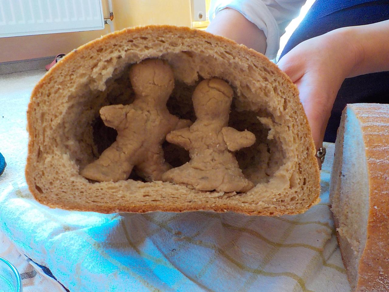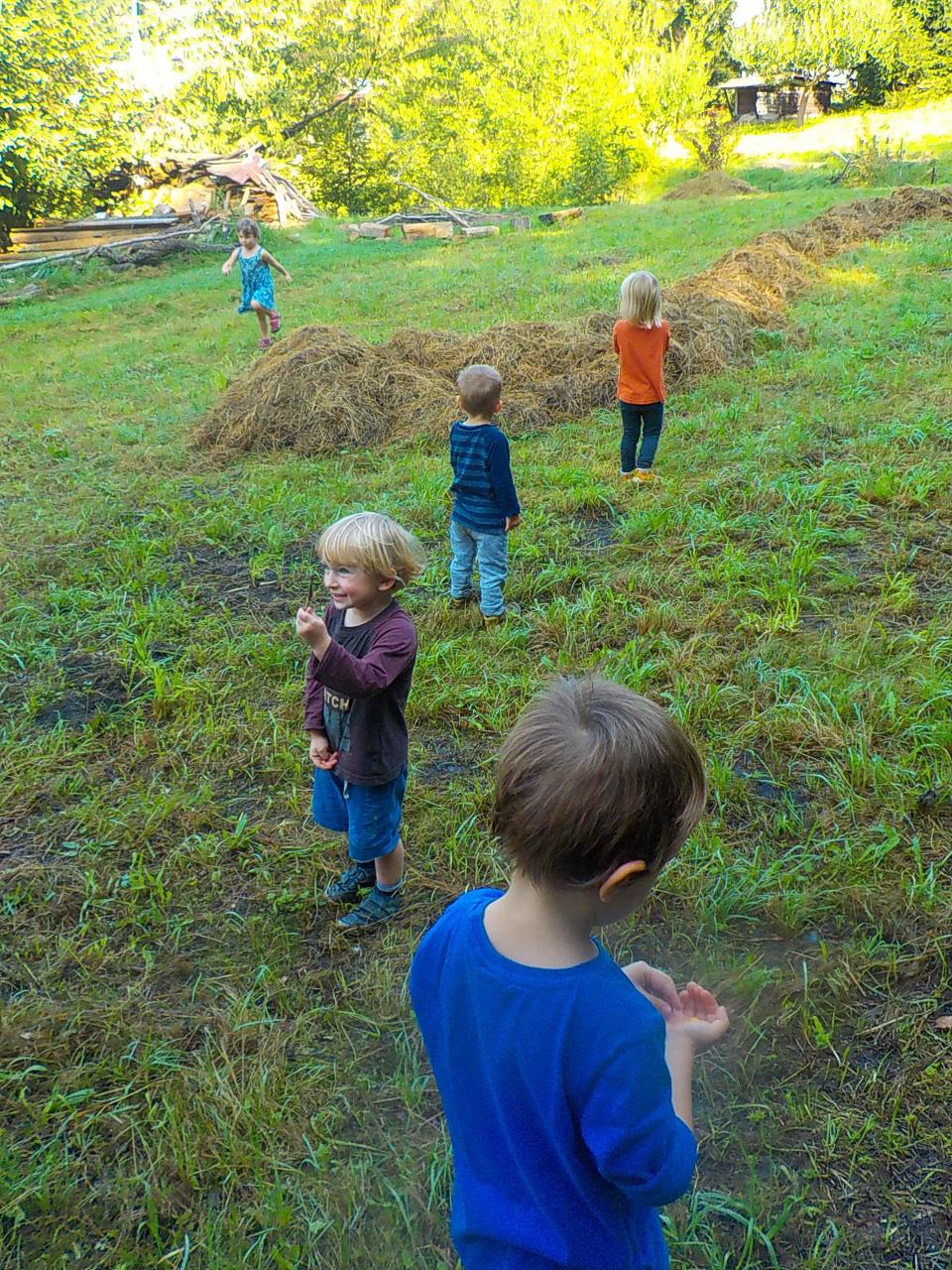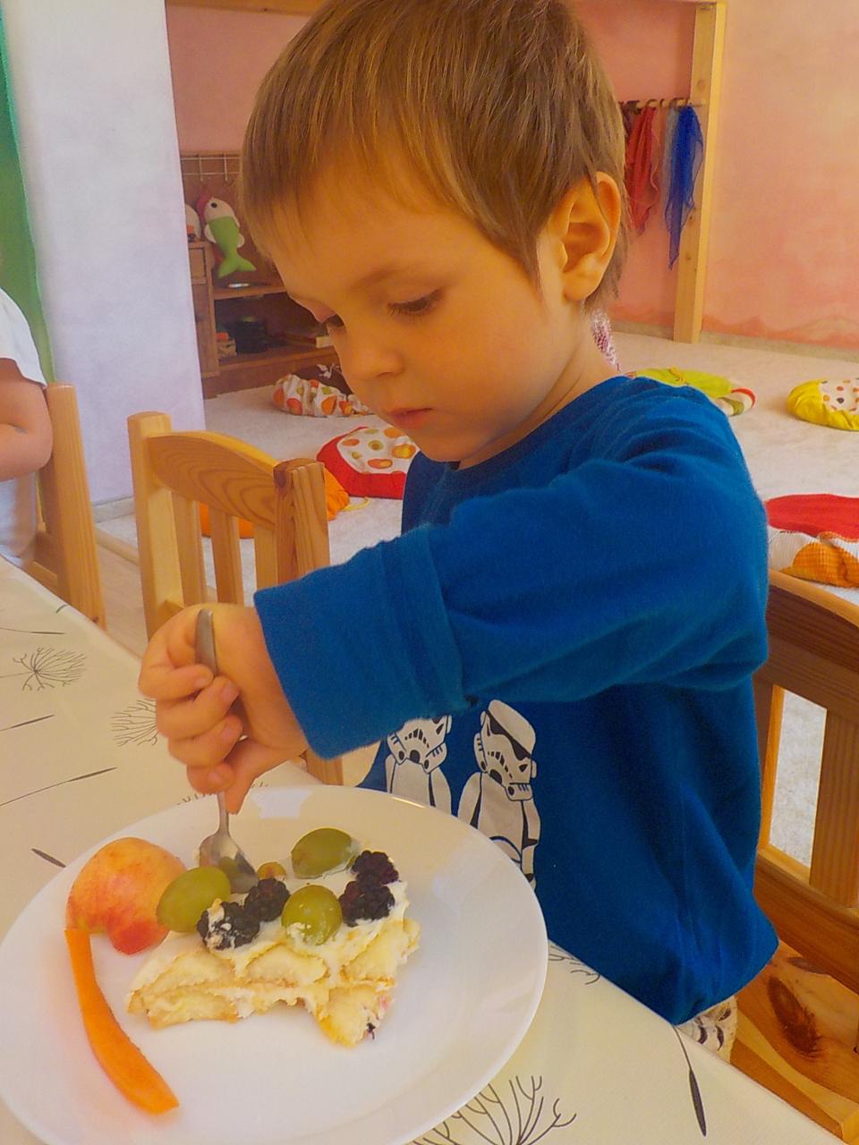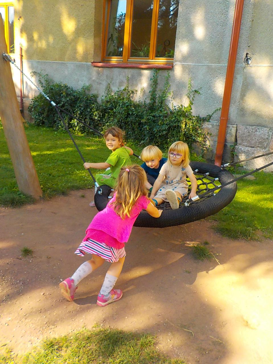 Víte-li pak, jak sedláček obilíčko seje, seče, váže, mlátí, mele a peče? My už to víme. Semínkem v zemi to začalo a semínkem v podobě rozemleté mouky a upečeného chlebíčka to končí. Každá z té dlouhé řady činností má své kouzlo. Klásky jsme vymlátili a zrnka posbírali, na mlýnku namleli a v míse promísili a výsledkem byl ve čtvrtek chutný chlebíček. To, že v chlebíčku je něco moc krásného schovaného nám ukázala Péťa se svým divadýlkem z chlebové střídy. A že to není jen tak a chce to trochu síly, jsme si mohli vyzkoušet při pátečním tvoření, kdy jsme si ze střídy vyráběli kuřátko. Vyprávěli jsme si totiž pohádku o kuřátku a obilí. Nové děti se učí napjatě poslouchat, zpívají s námi i tančí, dokáží počkat na domluvených místech. Tento týden nám sluníčko žehnalo každý den. Radostná byla i oslava Anežčiných narozenin – všichni se svíčkou v ruce mohli vyslovit pro ni přání, přidal se i skřítek s malým dárečkem. A mnohokrát děkujeme za výborný dort. Ale my všichni mravenečci jsme také dostali tento týden dárek, totiž nové hrníčky, jen naše, které si v jídelně hned poznáme. Jsou krásně průhledné, takže si to, co pijeme, i to co je za tím, můžeme dobře prohlédnout a někdy je to docela šišaté překvapení :-).