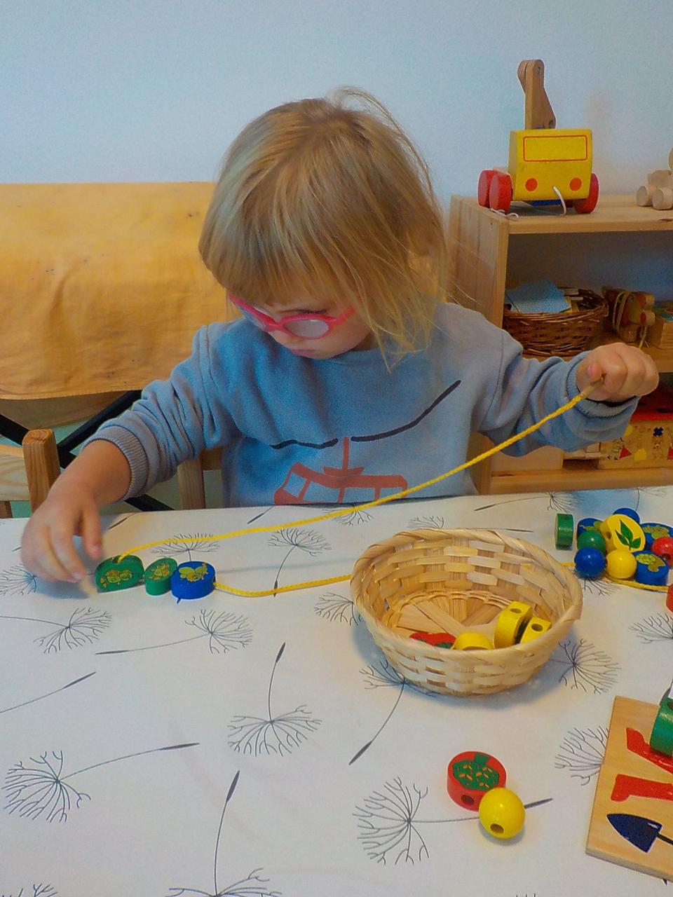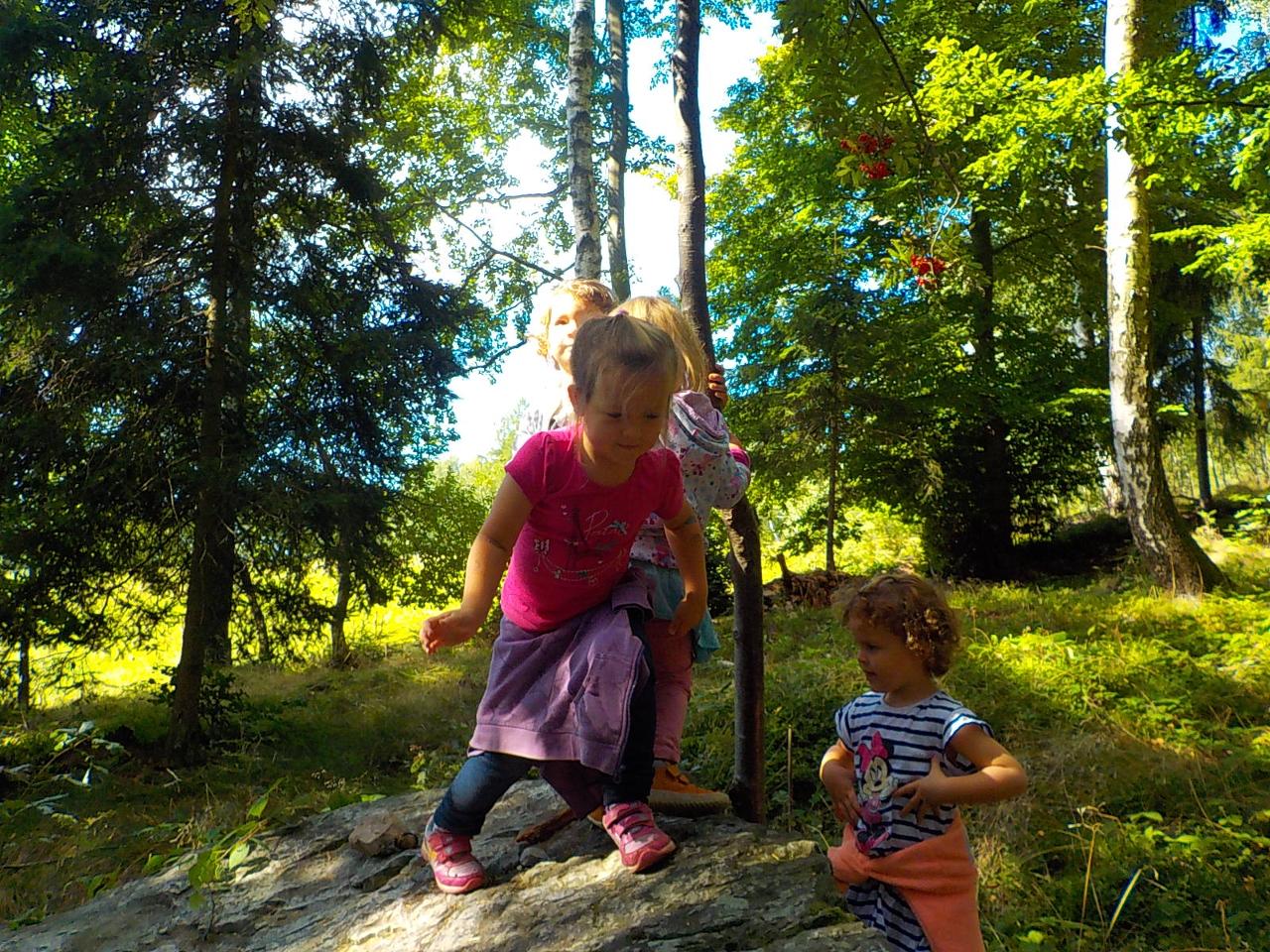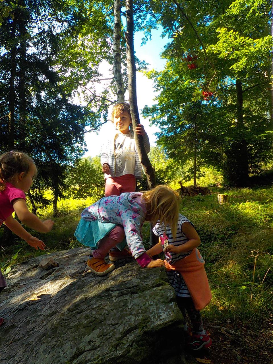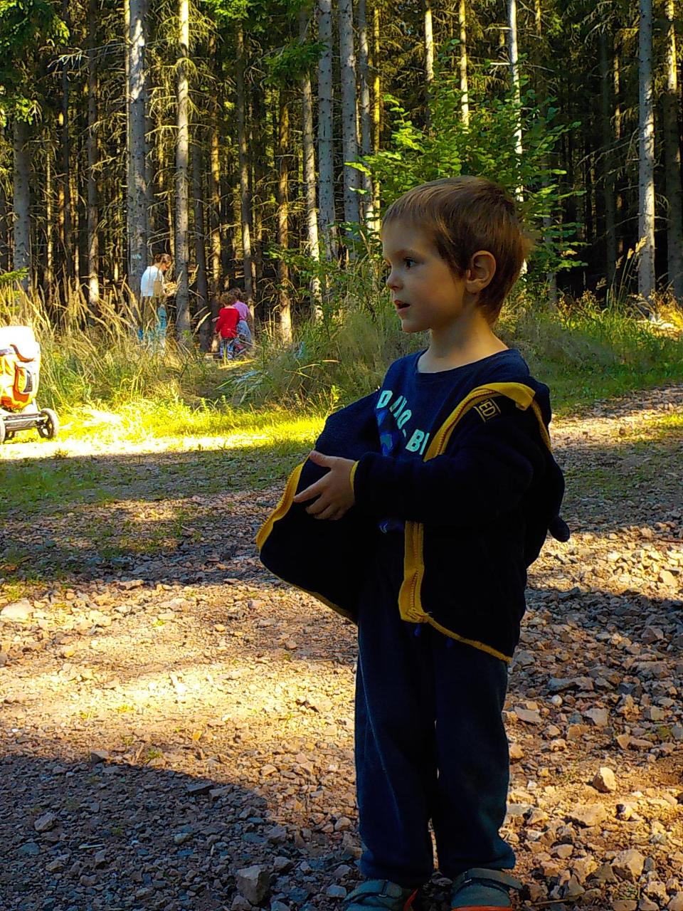 Ať uděláme krok kamkoli, všude narazíme na klobouček na nožce, celý les voní houbami a my jsme jak Kateřina v naší pohádce o uplakané muchomůrce – když už je košík plný, stejně jdeme dál a jen pozorujeme – ty červené muchomůrky jsou nejkrásnější. Tančíme jim a zpíváme houbí písničku „í í í apa apa í“… Houby se nám povedlo vymodelovat z včelího vosku, upéct z listového těsta, vystříhat a vybarvit z papíru i ušít z filcu a vyzdobit jim kloboučky plstěním ovčí vlny. A když jsme zrovna nebyli na houbách, kreslili jsme křídami na tabuli i na asfalt, trhali kytičky, běhali a učili se na sebe čekat na domluvených místech.