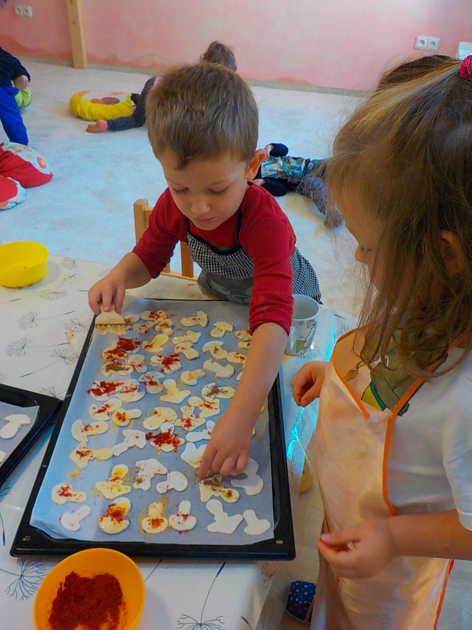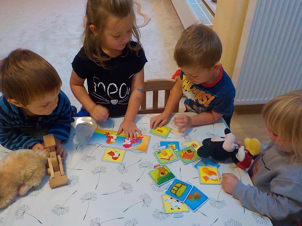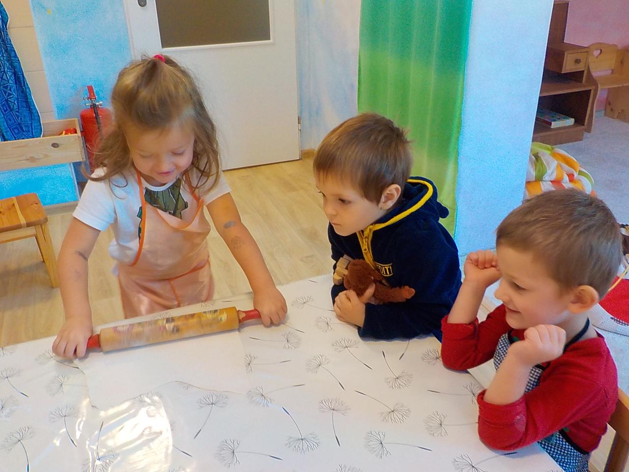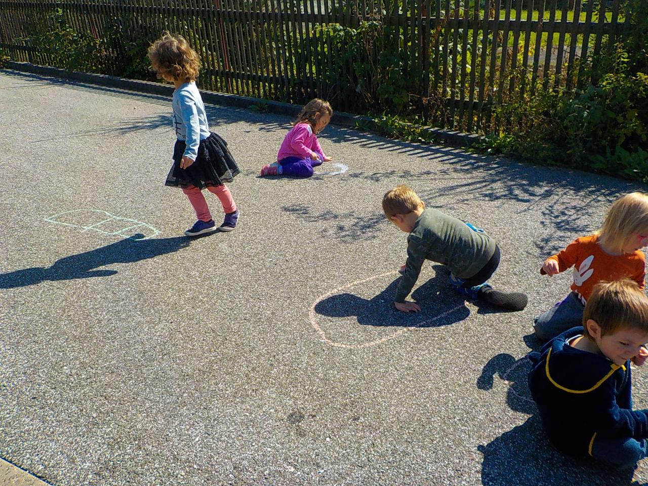 Ať uděláme krok kamkoli, všude narazíme na klobouček na nožce, celý les voní houbami a my jsme jak Kateřina v naší pohádce o uplakané muchomůrce – když už je košík plný, stejně jdeme dál a jen pozorujeme – ty červené muchomůrky jsou nejkrásnější. Tančíme jim a zpíváme houbí písničku „í í í apa apa í“… Houby se nám povedlo vymodelovat z včelího vosku, upéct z listového těsta, vystříhat a vybarvit z papíru i ušít z filcu a vyzdobit jim kloboučky plstěním ovčí vlny. A když jsme zrovna nebyli na houbách, kreslili jsme křídami na tabuli i na asfalt, trhali kytičky, běhali a učili se na sebe čekat na domluvených místech.