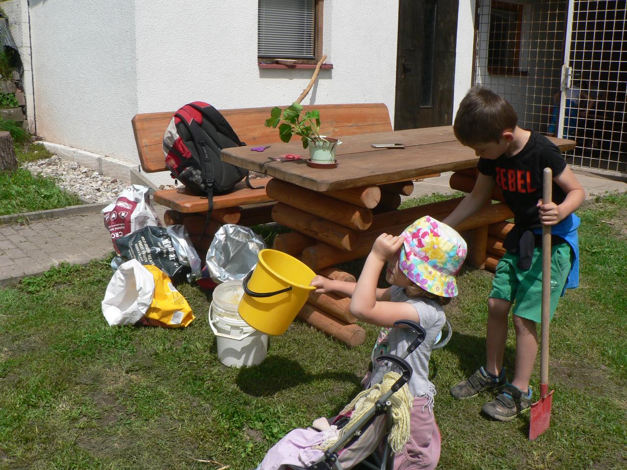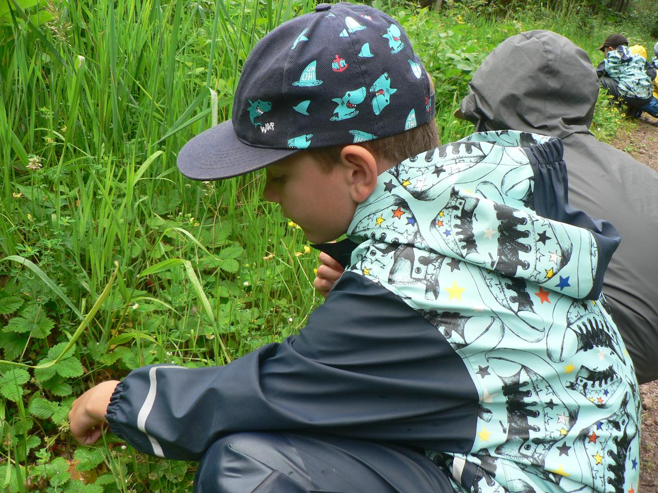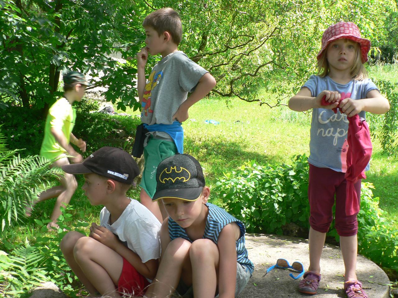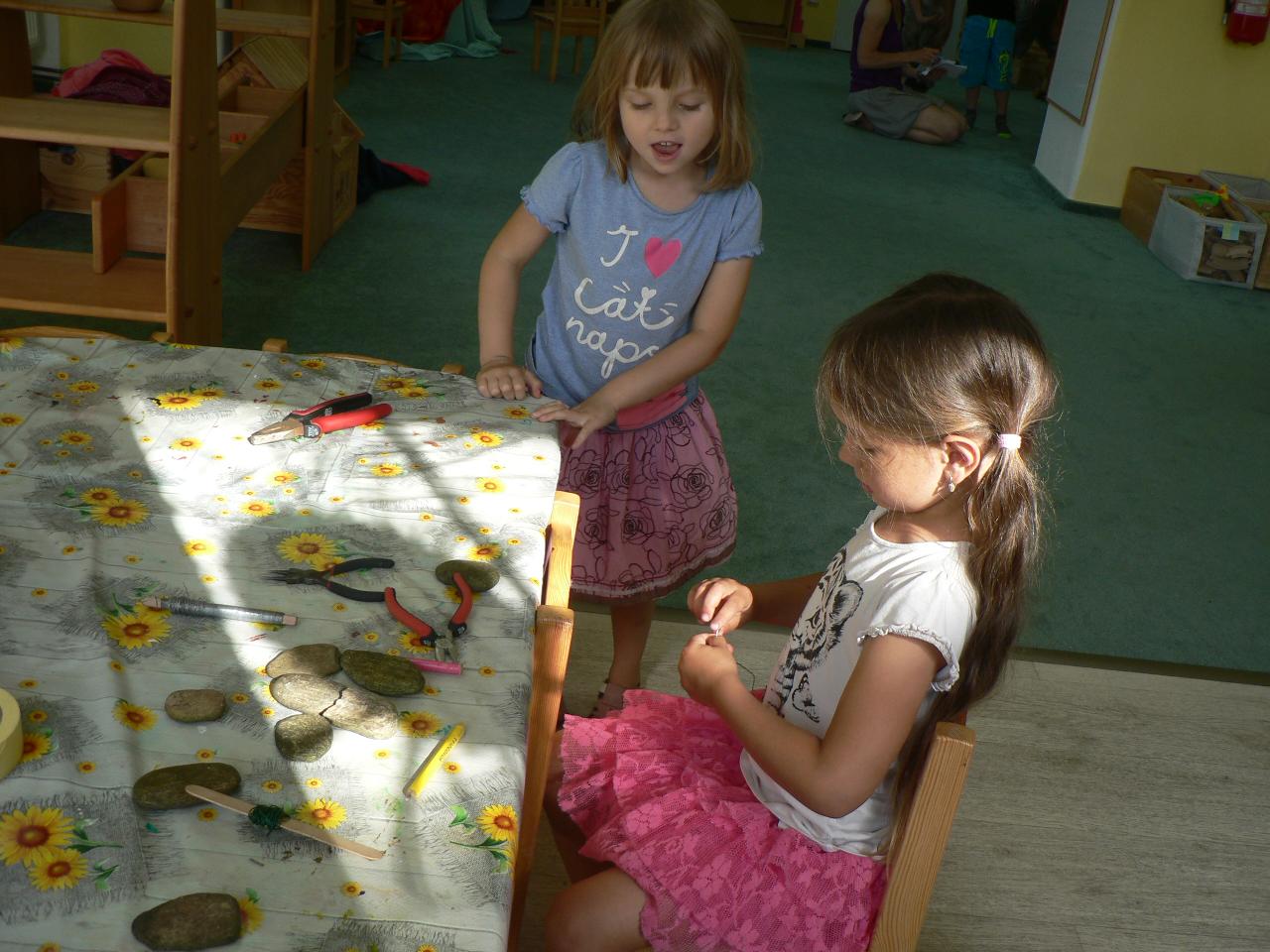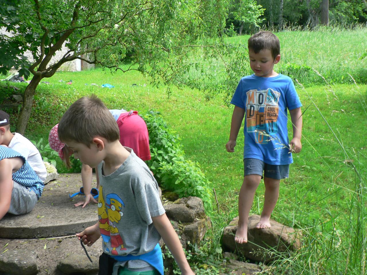 Pohádka O pyšném motýlovi nás zanesla na rozkvetlou louku do říše hmyzu. Spolu s motýlem Duháčkem jsme poznali, že pýcha mnoho dobrého nepřináší a samota je někdy vážně smutná. S dětmi jsme si povídali o tom, jak poznáme, zda je někdo náš kamarád, jak si můžeme pomáhat a chovat se k sobě ohleduplně. Poznávali jsme také vývojová stádia motýla od vajíčka, housenku, kuklu až po vylíhnutí motýla. Počasí nám přálo, a tak jsme na louce mohli pozorovat nejen různě barevné motýly, ale našli jsme i housenky a jiné druhy hmyzu. Při tvoření jsme malovali motýly, tvořili motýlí průsvity do oken nebo vyráběli broučky k drátků a kamínků. V pondělí jsme navíc zasadili dýně na školní zahradu, abychom mohli pozorovat, jak se mění a rostou a měli na podzim z čeho vařit a tvořit. Také jsme tento týden cvičili jógu, zpívali písničky, stihli jsme se vykoupat v potoce, hráli spoustu her uvnitř i venku a koncem týdne jsme si pochutnali na prvních jahůdkách.