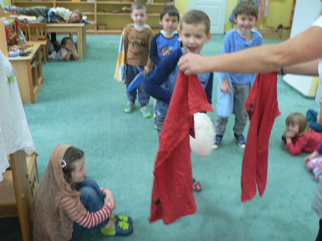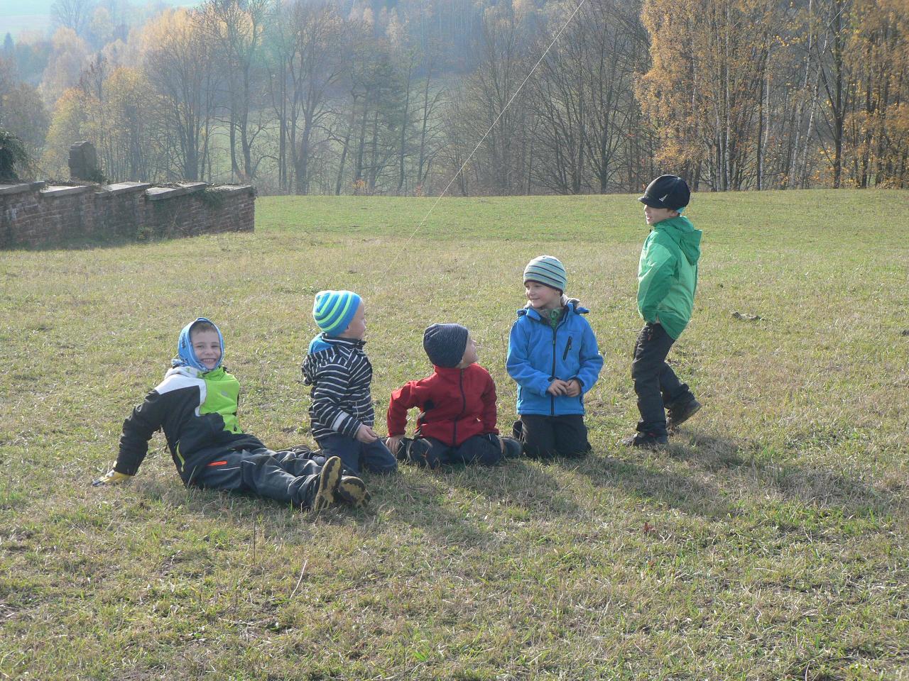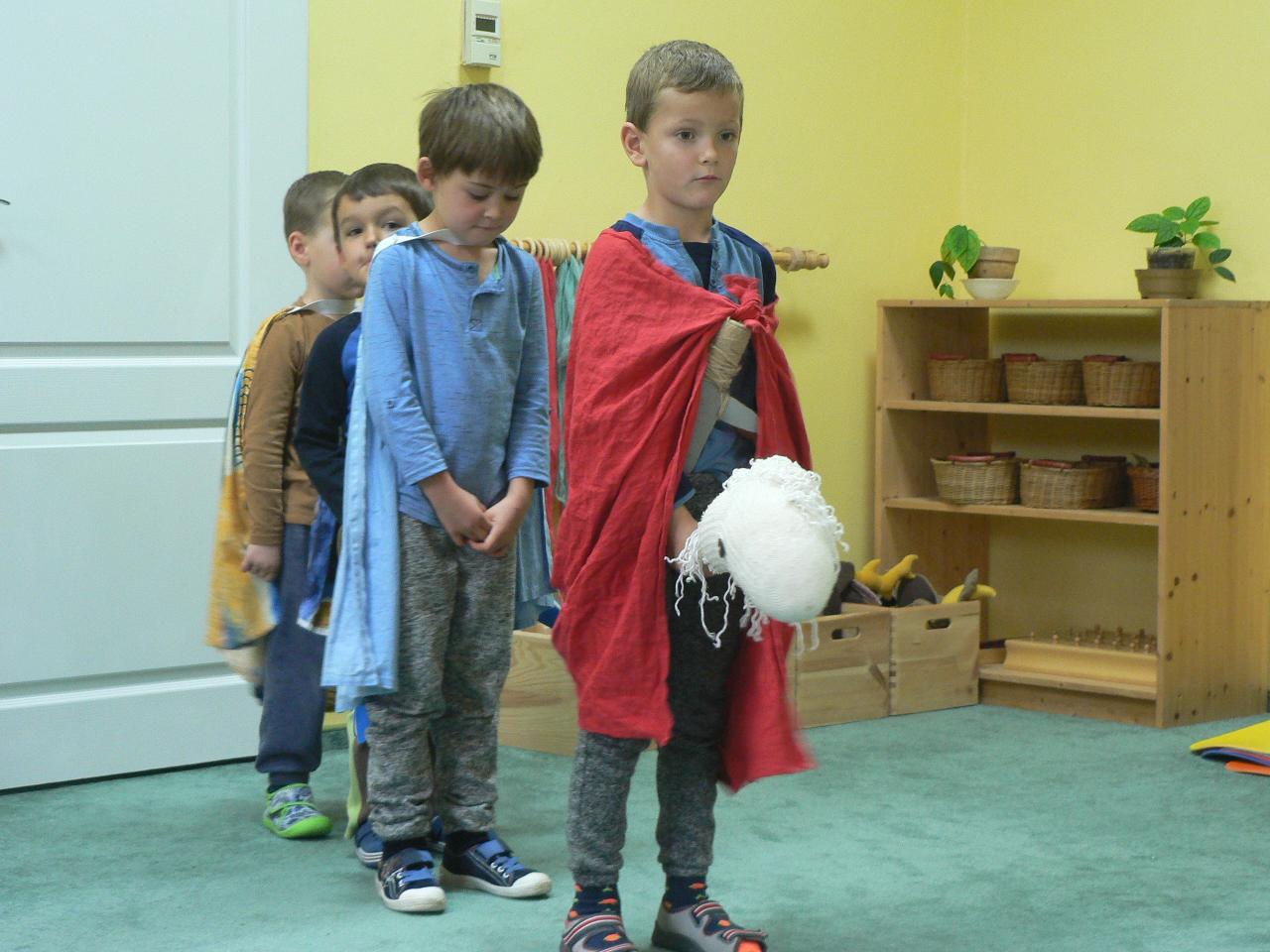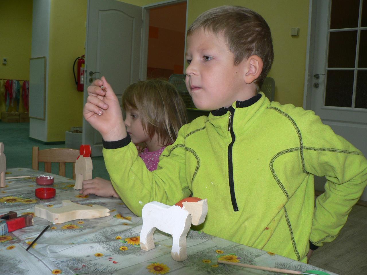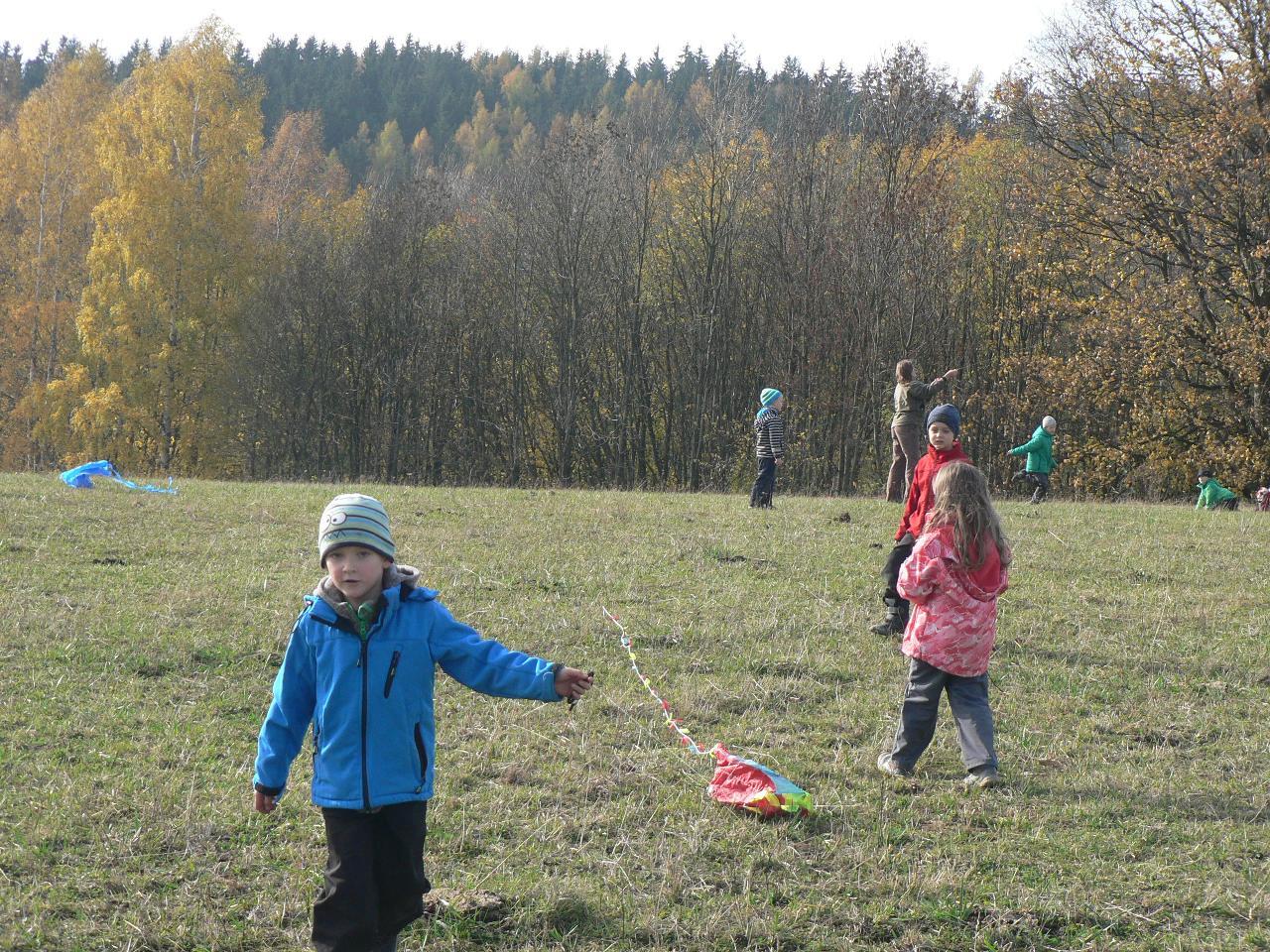 Týden ve znamení svatého Martina a svatomartinské slavnosti. Vyprávěli jsme si legendu o svatém Martinovi, abychom si z ní odnesli důležité poselství o tom, že je dobré se umět rozdělit s druhými. V kroužku jsme si pak s dětmi povídali o tom, kdy už někoho obdarovali, kdy se rozdělili a jaké to pro ně bylo. A také o tom, jaké to je být obdarovaný. S Martinem pak souvisela spousta činností, které jsme během týdne vyzkoušeli. Pekli jsme svatomartinské rohlíčky, zpívali martinské písně, vyráběli lucerničky z plechovek a na konci týdne si děti malovaly dřevěné figurky Martina na koni. A protože nám přálo slunečné a větrné počasí, užili jsme si parádně i veškeré venkovní aktivity, pouštění draků nevyjímaje. Ve čtvrtek pak celou školu i školku pohltily přípravy na odpolední slavnost. Dopoledne si děti ve školce hrály Martinův příběh jako divadýlko, dělily se se žebrákem o plášť a došlo i na prozrazení Martina schovávajícího se mezi husami. Odpoledne jsme se pak po shlédnutí martinského divadélka a vystoupení školáků v jídelně všichni společně vydali průvodem po vesnici obdarovat sousedy napečenými rohlíčky. Na cestu nám svítily lucerničky a v háječku jsme potkali i samotného Martina, který tam poztrácel zlaté podkovy.