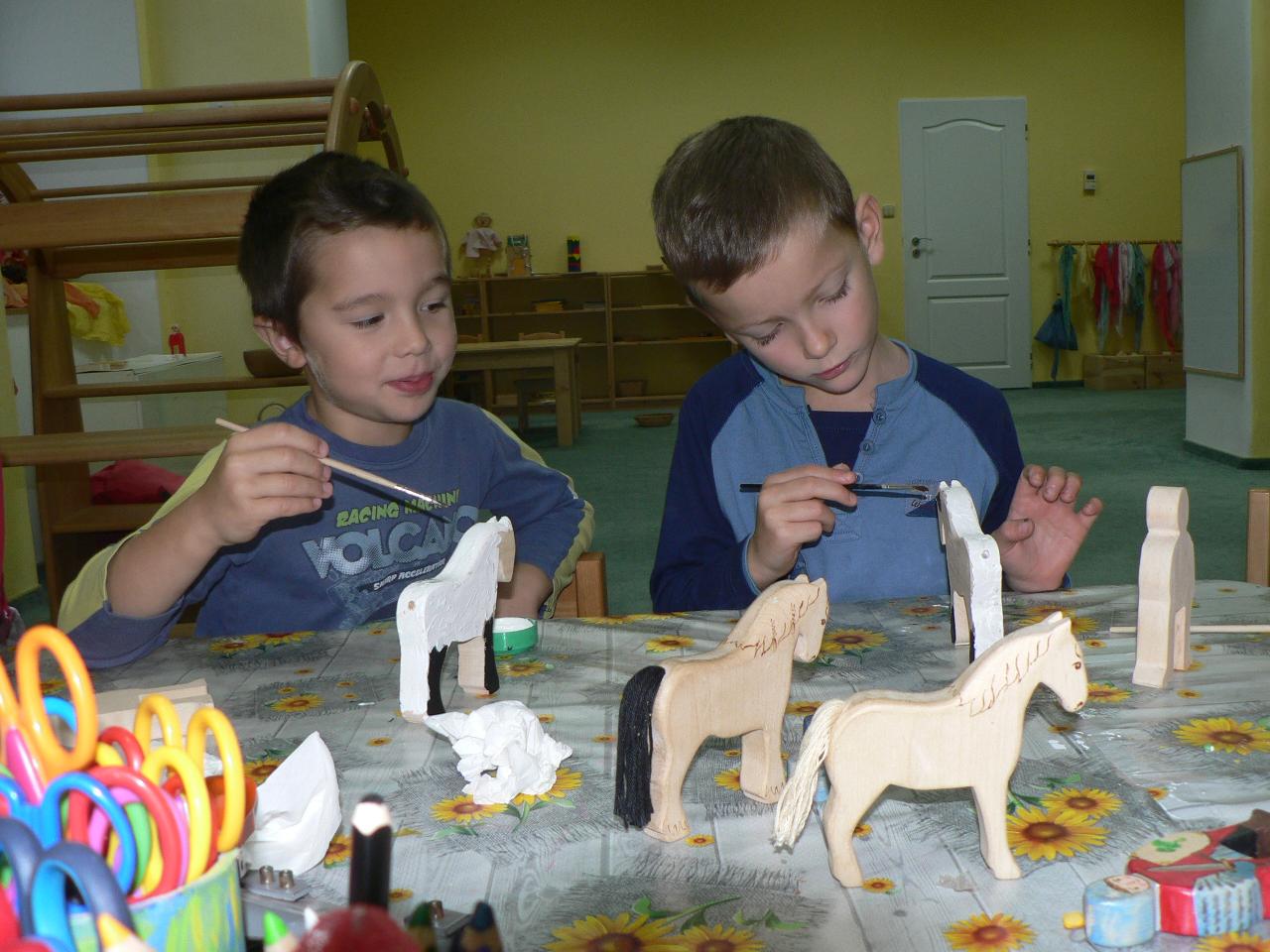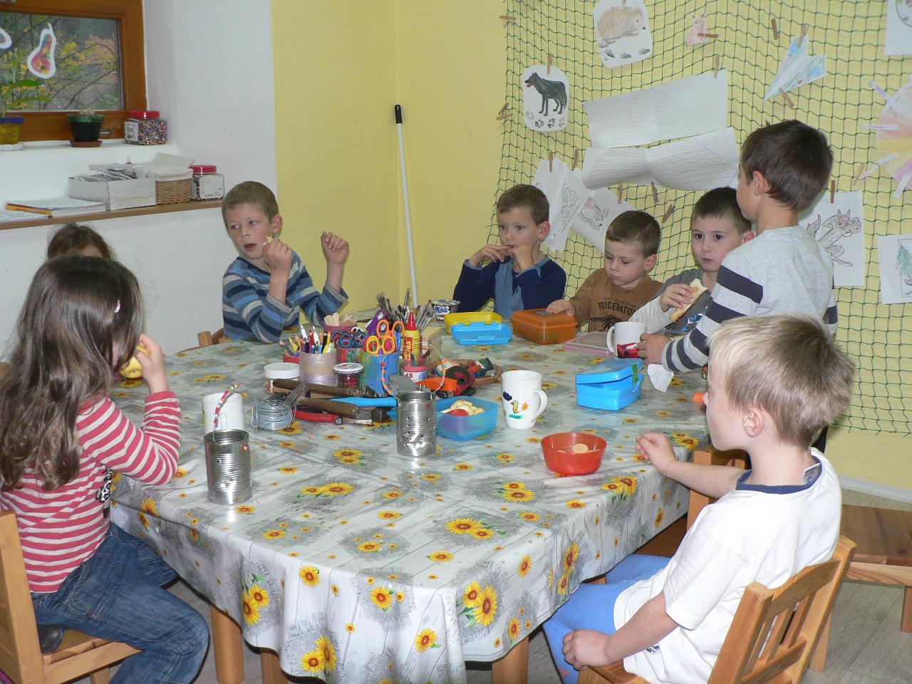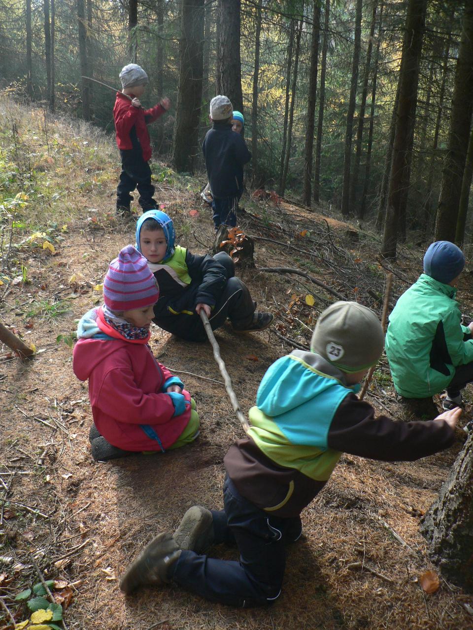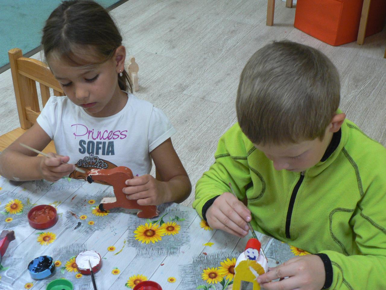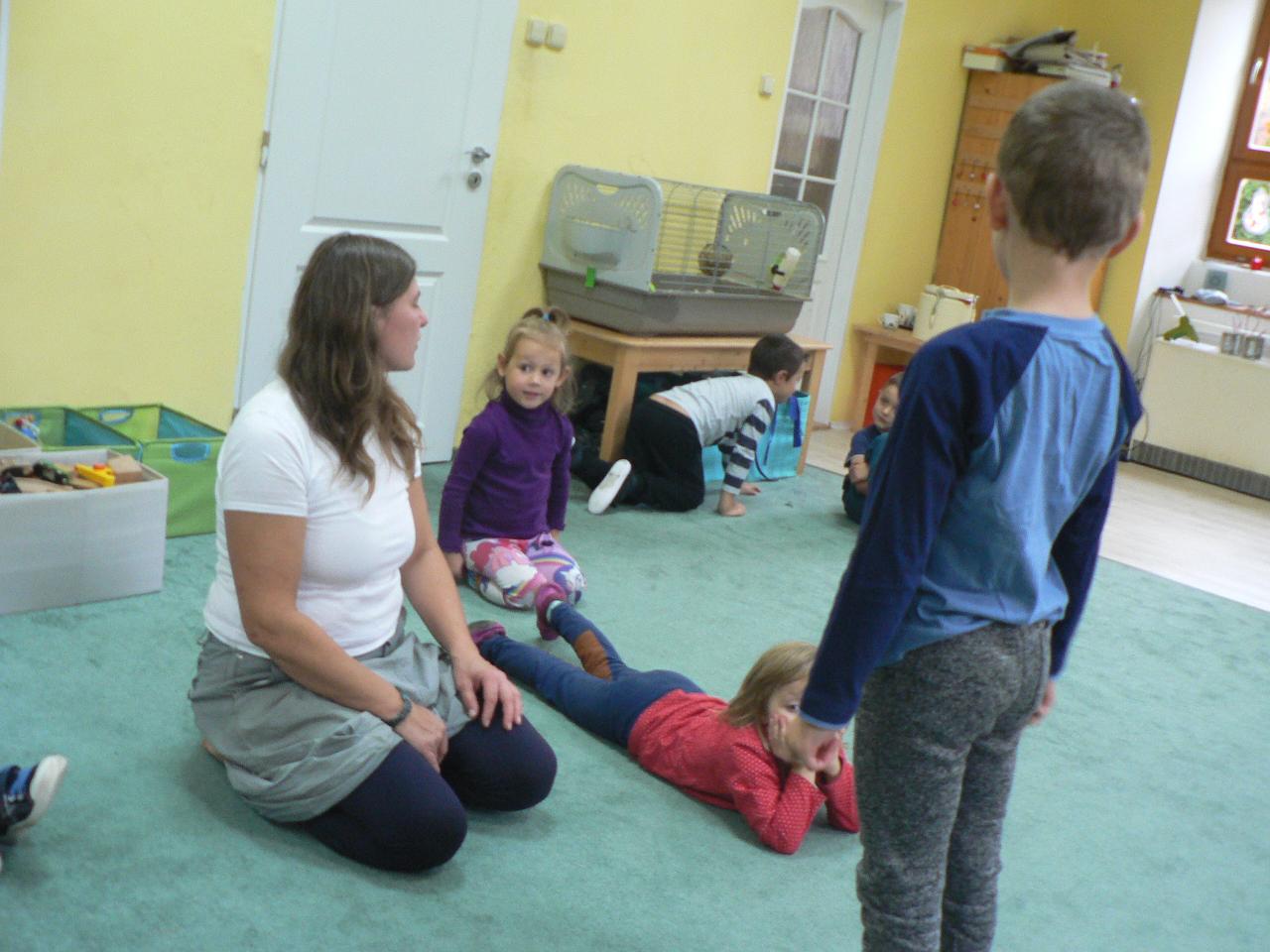 Týden ve znamení svatého Martina a svatomartinské slavnosti. Vyprávěli jsme si legendu o svatém Martinovi, abychom si z ní odnesli důležité poselství o tom, že je dobré se umět rozdělit s druhými. V kroužku jsme si pak s dětmi povídali o tom, kdy už někoho obdarovali, kdy se rozdělili a jaké to pro ně bylo. A také o tom, jaké to je být obdarovaný. S Martinem pak souvisela spousta činností, které jsme během týdne vyzkoušeli. Pekli jsme svatomartinské rohlíčky, zpívali martinské písně, vyráběli lucerničky z plechovek a na konci týdne si děti malovaly dřevěné figurky Martina na koni. A protože nám přálo slunečné a větrné počasí, užili jsme si parádně i veškeré venkovní aktivity, pouštění draků nevyjímaje. Ve čtvrtek pak celou školu i školku pohltily přípravy na odpolední slavnost. Dopoledne si děti ve školce hrály Martinův příběh jako divadýlko, dělily se se žebrákem o plášť a došlo i na prozrazení Martina schovávajícího se mezi husami. Odpoledne jsme se pak po shlédnutí martinského divadélka a vystoupení školáků v jídelně všichni společně vydali průvodem po vesnici obdarovat sousedy napečenými rohlíčky. Na cestu nám svítily lucerničky a v háječku jsme potkali i samotného Martina, který tam poztrácel zlaté podkovy.