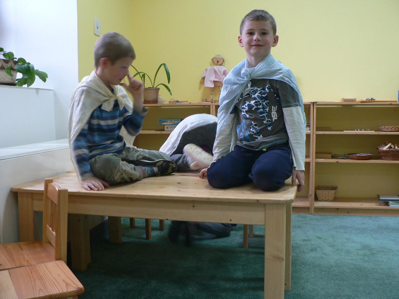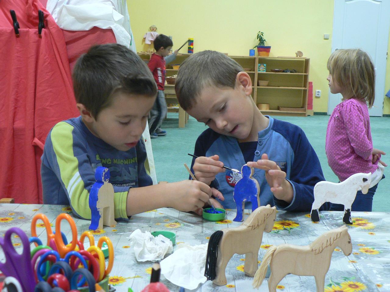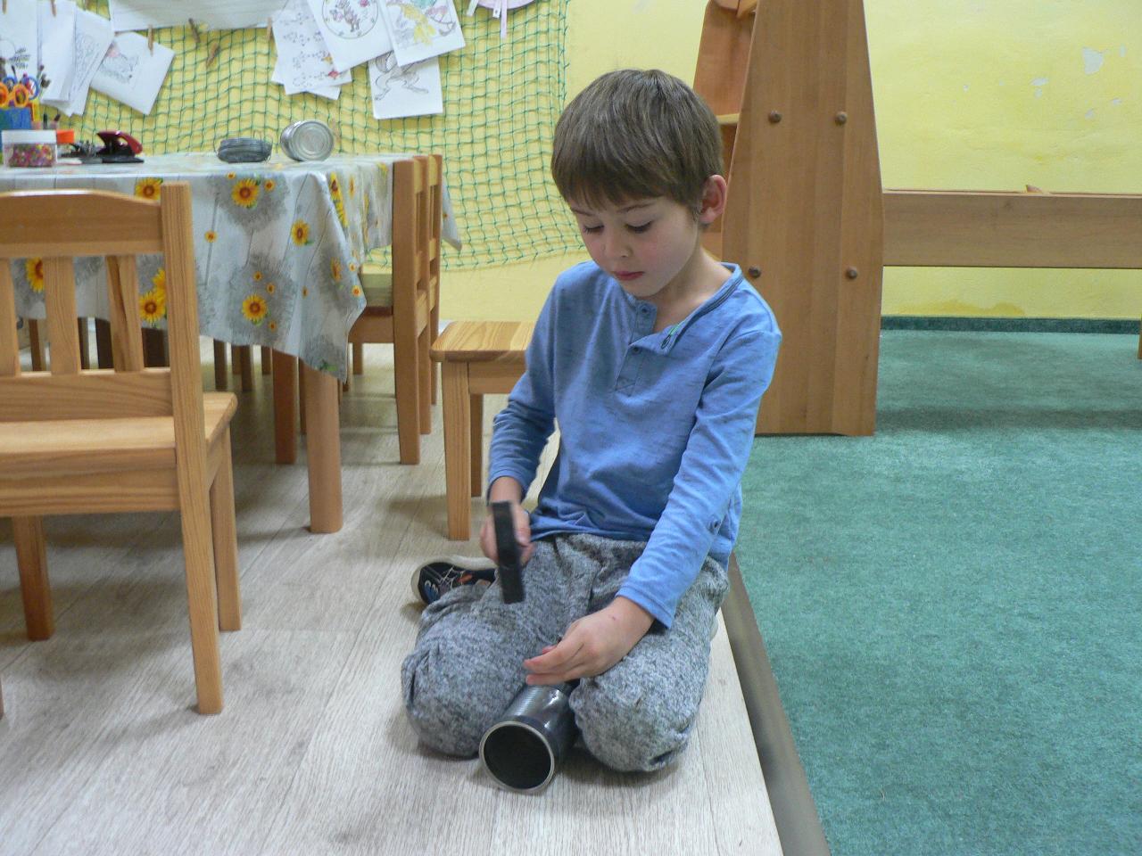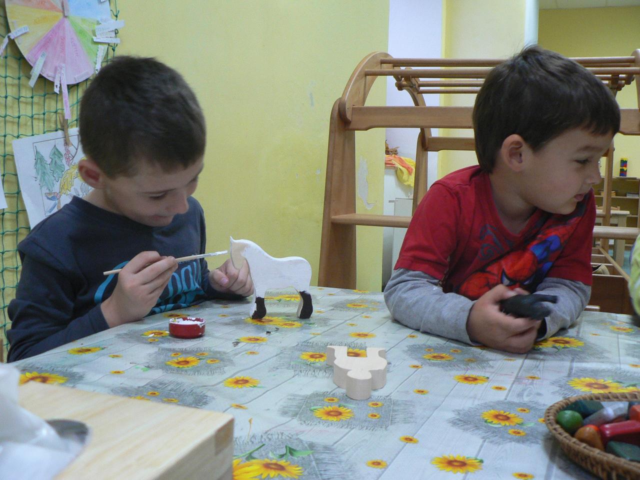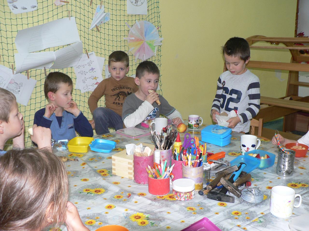 Týden ve znamení svatého Martina a svatomartinské slavnosti. Vyprávěli jsme si legendu o svatém Martinovi, abychom si z ní odnesli důležité poselství o tom, že je dobré se umět rozdělit s druhými. V kroužku jsme si pak s dětmi povídali o tom, kdy už někoho obdarovali, kdy se rozdělili a jaké to pro ně bylo. A také o tom, jaké to je být obdarovaný. S Martinem pak souvisela spousta činností, které jsme během týdne vyzkoušeli. Pekli jsme svatomartinské rohlíčky, zpívali martinské písně, vyráběli lucerničky z plechovek a na konci týdne si děti malovaly dřevěné figurky Martina na koni. A protože nám přálo slunečné a větrné počasí, užili jsme si parádně i veškeré venkovní aktivity, pouštění draků nevyjímaje. Ve čtvrtek pak celou školu i školku pohltily přípravy na odpolední slavnost. Dopoledne si děti ve školce hrály Martinův příběh jako divadýlko, dělily se se žebrákem o plášť a došlo i na prozrazení Martina schovávajícího se mezi husami. Odpoledne jsme se pak po shlédnutí martinského divadélka a vystoupení školáků v jídelně všichni společně vydali průvodem po vesnici obdarovat sousedy napečenými rohlíčky. Na cestu nám svítily lucerničky a v háječku jsme potkali i samotného Martina, který tam poztrácel zlaté podkovy.