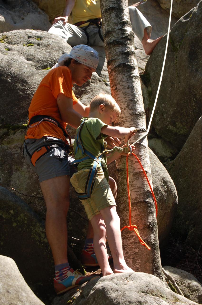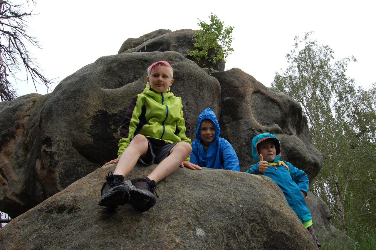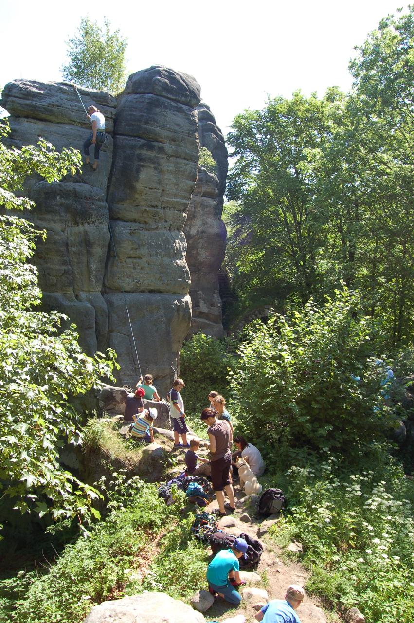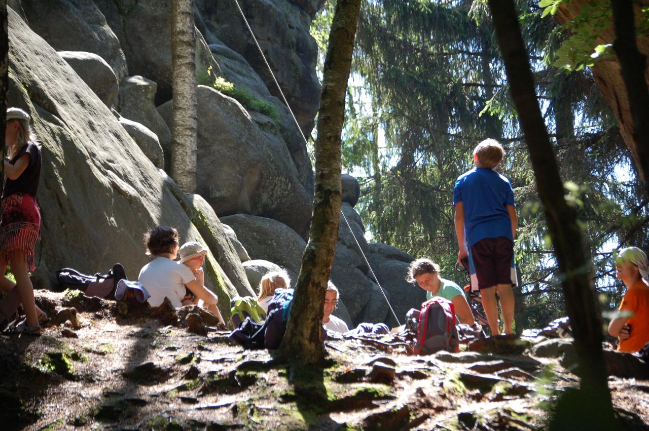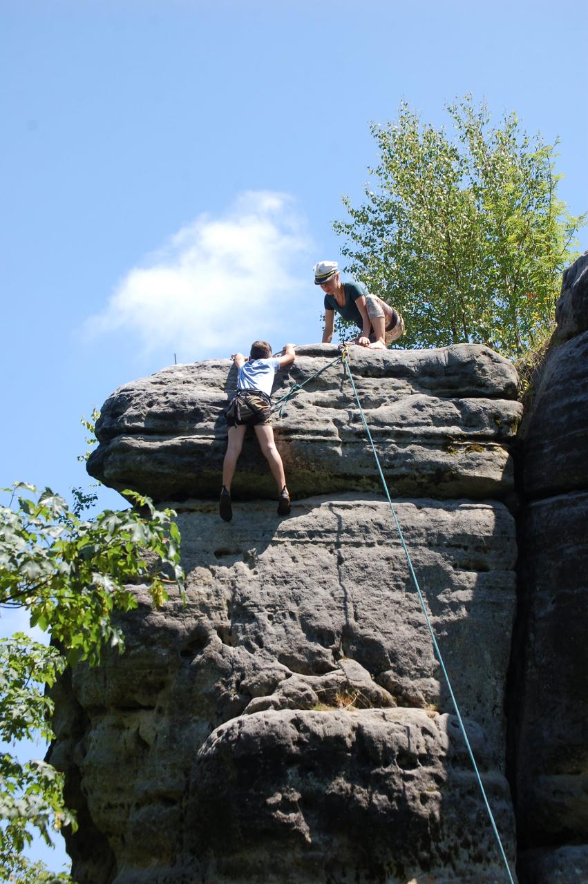 V polovině června jsme nejprve věnovali první polovinu týdně matematice, češtině či přípravě zahradní slavnosti a tvoření malováním kulis nebo kamenů. Evča, Zdenda a Míša Š. také navštívili ZŠ Hučák, moderní a inovativní školu v Hradci Králové, kde hledali inspiraci i pro naší školu. V druhé části týdne se Mravenčí škola vypravila na dvoudenní výpravu do skal, kde si školáci díky rodičům lezcům vyzkoušeli, jaké je to překonat se, najít si správné “chyty” a vylézt na pískovcovou věž. Po deštivém čtvrtku jsme zažili noc ve stanech a slunečný lezecký pátek. Každý si našel svou výzvu, pro někoho to byla první noc ve stanu, první vícedenní výlet se školou či první navléknutí sedáku, pro jiné to bylo zdolání všech nabízených lezeckých cest - a třeba rovnou dvakrát :-)