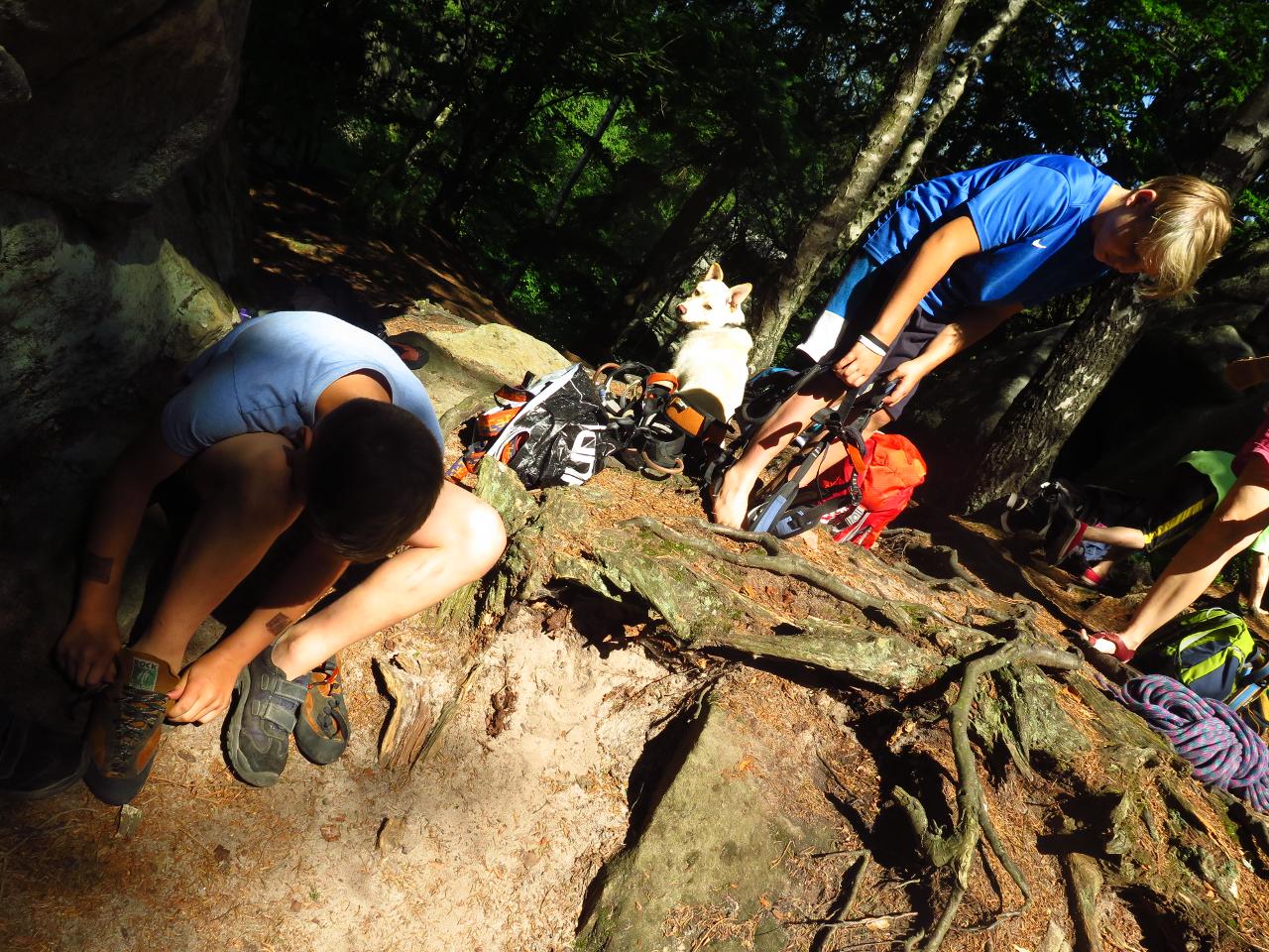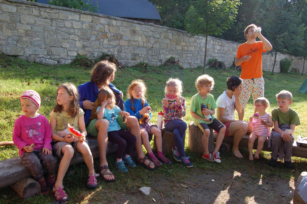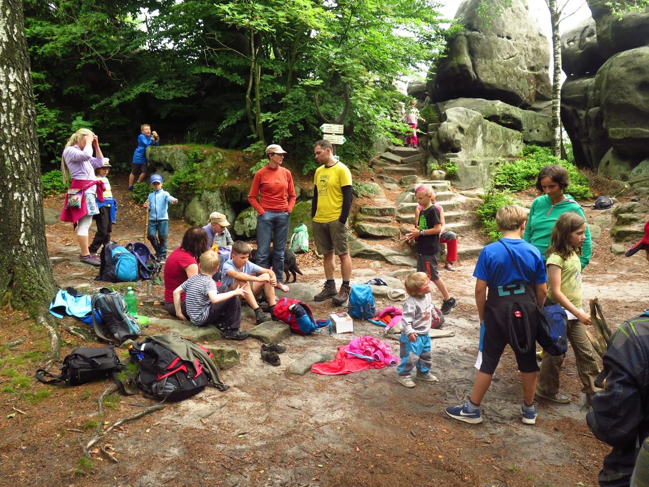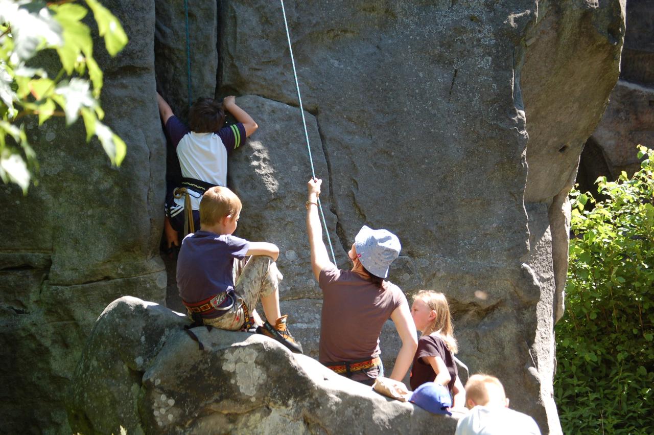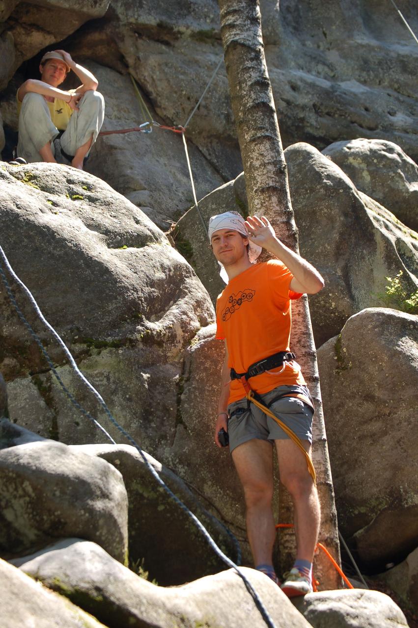 V polovině června jsme nejprve věnovali první polovinu týdně matematice, češtině či přípravě zahradní slavnosti a tvoření malováním kulis nebo kamenů. Evča, Zdenda a Míša Š. také navštívili ZŠ Hučák, moderní a inovativní školu v Hradci Králové, kde hledali inspiraci i pro naší školu. V druhé části týdne se Mravenčí škola vypravila na dvoudenní výpravu do skal, kde si školáci díky rodičům lezcům vyzkoušeli, jaké je to překonat se, najít si správné “chyty” a vylézt na pískovcovou věž. Po deštivém čtvrtku jsme zažili noc ve stanech a slunečný lezecký pátek. Každý si našel svou výzvu, pro někoho to byla první noc ve stanu, první vícedenní výlet se školou či první navléknutí sedáku, pro jiné to bylo zdolání všech nabízených lezeckých cest - a třeba rovnou dvakrát :-)