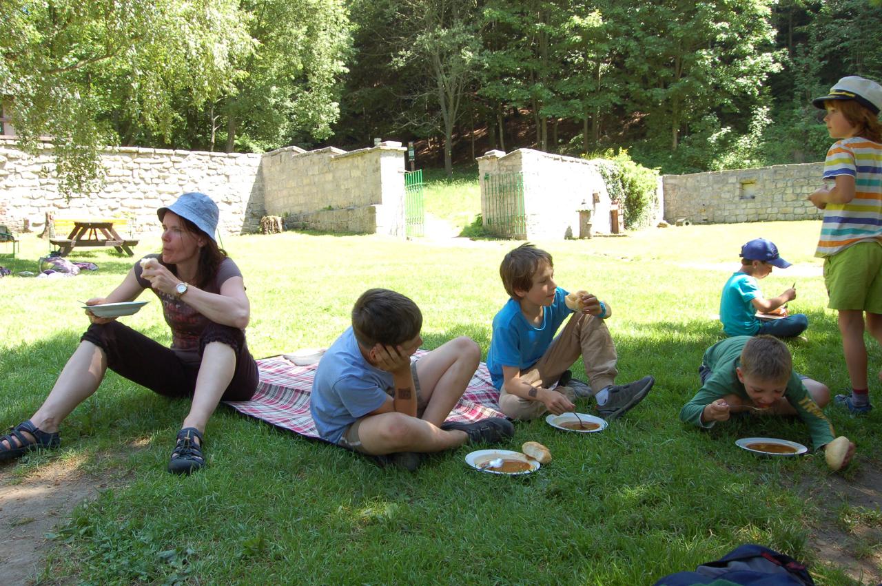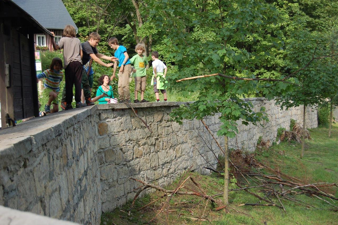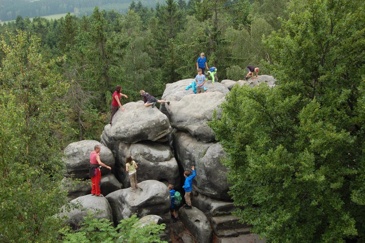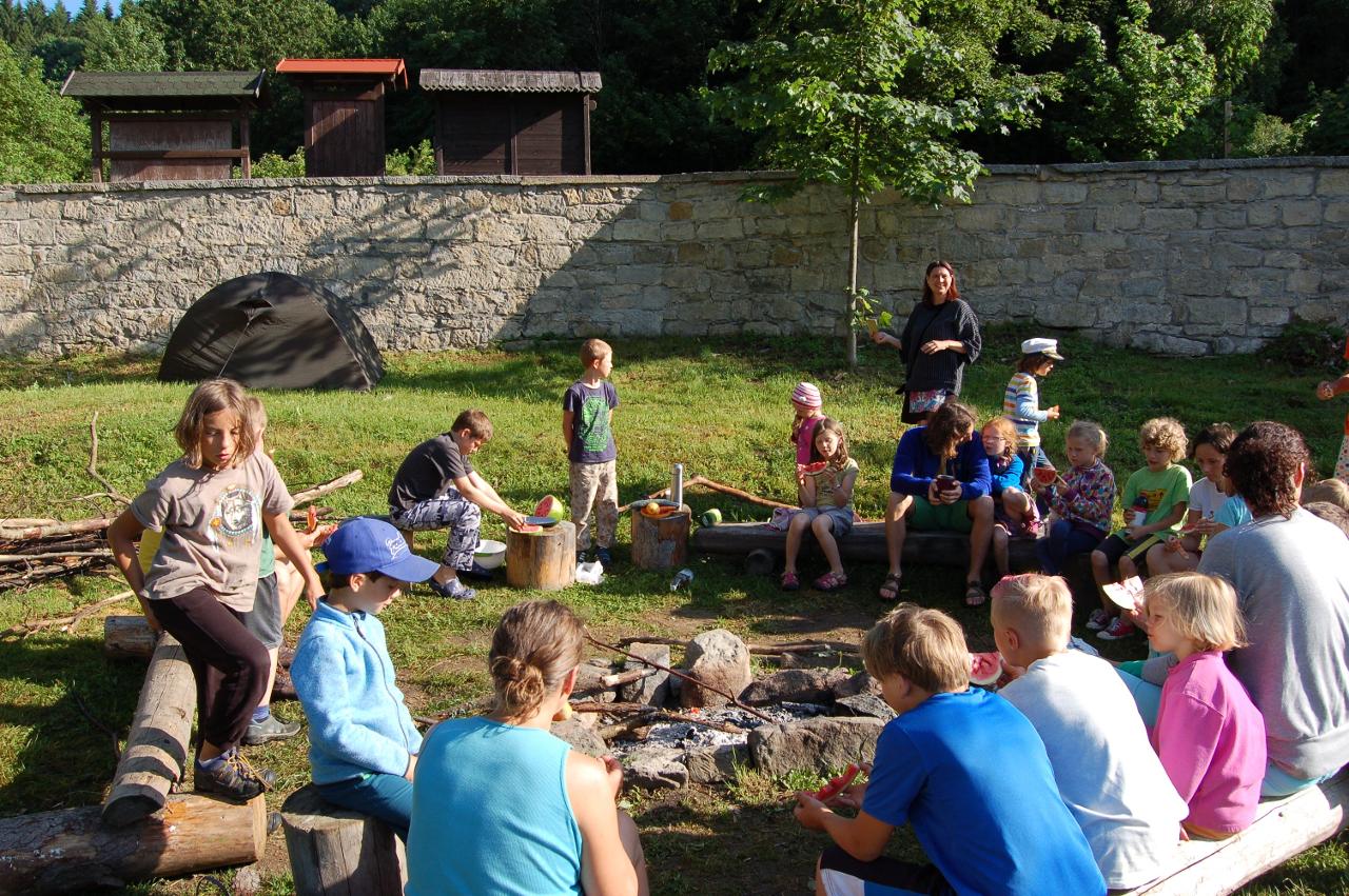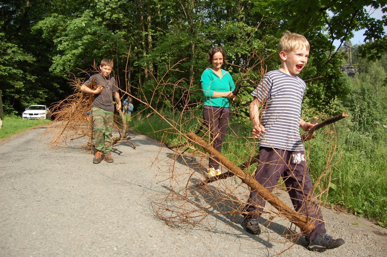 V polovině června jsme nejprve věnovali první polovinu týdně matematice, češtině či přípravě zahradní slavnosti a tvoření malováním kulis nebo kamenů. Evča, Zdenda a Míša Š. také navštívili ZŠ Hučák, moderní a inovativní školu v Hradci Králové, kde hledali inspiraci i pro naší školu. V druhé části týdne se Mravenčí škola vypravila na dvoudenní výpravu do skal, kde si školáci díky rodičům lezcům vyzkoušeli, jaké je to překonat se, najít si správné “chyty” a vylézt na pískovcovou věž. Po deštivém čtvrtku jsme zažili noc ve stanech a slunečný lezecký pátek. Každý si našel svou výzvu, pro někoho to byla první noc ve stanu, první vícedenní výlet se školou či první navléknutí sedáku, pro jiné to bylo zdolání všech nabízených lezeckých cest - a třeba rovnou dvakrát :-)
