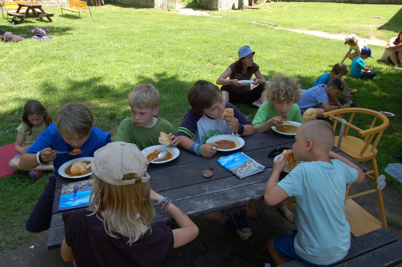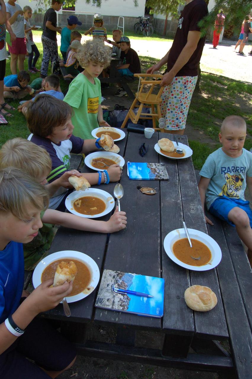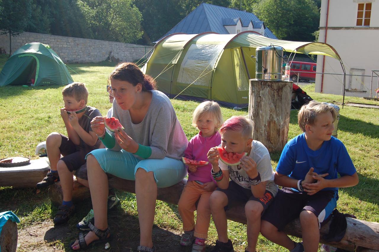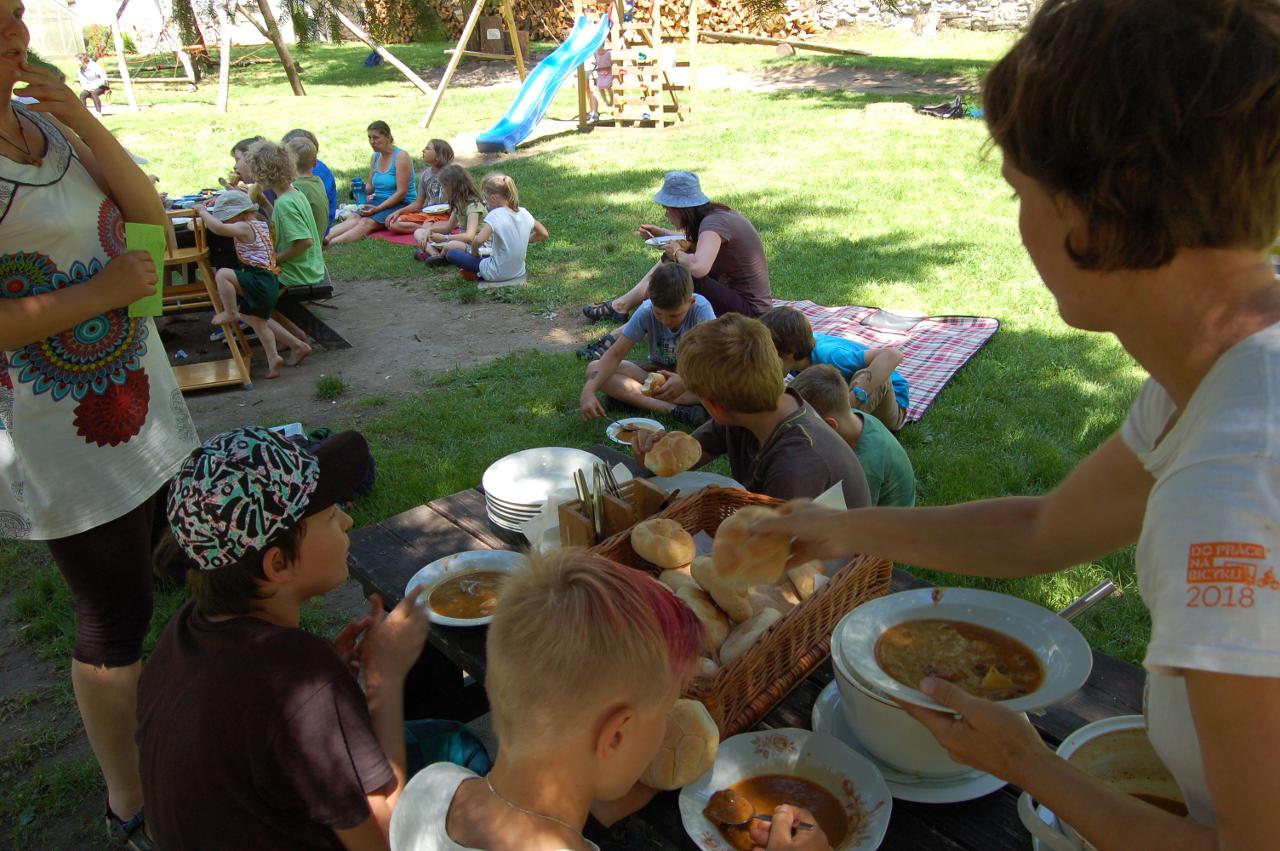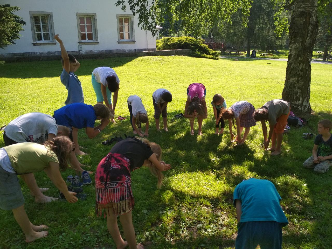 V polovině června jsme nejprve věnovali první polovinu týdně matematice, češtině či přípravě zahradní slavnosti a tvoření malováním kulis nebo kamenů. Evča, Zdenda a Míša Š. také navštívili ZŠ Hučák, moderní a inovativní školu v Hradci Králové, kde hledali inspiraci i pro naší školu. V druhé části týdne se Mravenčí škola vypravila na dvoudenní výpravu do skal, kde si školáci díky rodičům lezcům vyzkoušeli, jaké je to překonat se, najít si správné “chyty” a vylézt na pískovcovou věž. Po deštivém čtvrtku jsme zažili noc ve stanech a slunečný lezecký pátek. Každý si našel svou výzvu, pro někoho to byla první noc ve stanu, první vícedenní výlet se školou či první navléknutí sedáku, pro jiné to bylo zdolání všech nabízených lezeckých cest - a třeba rovnou dvakrát :-)