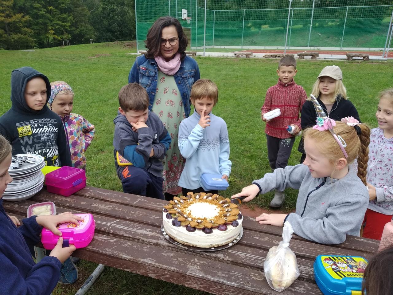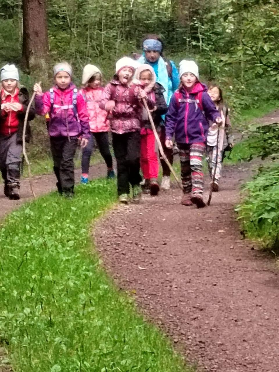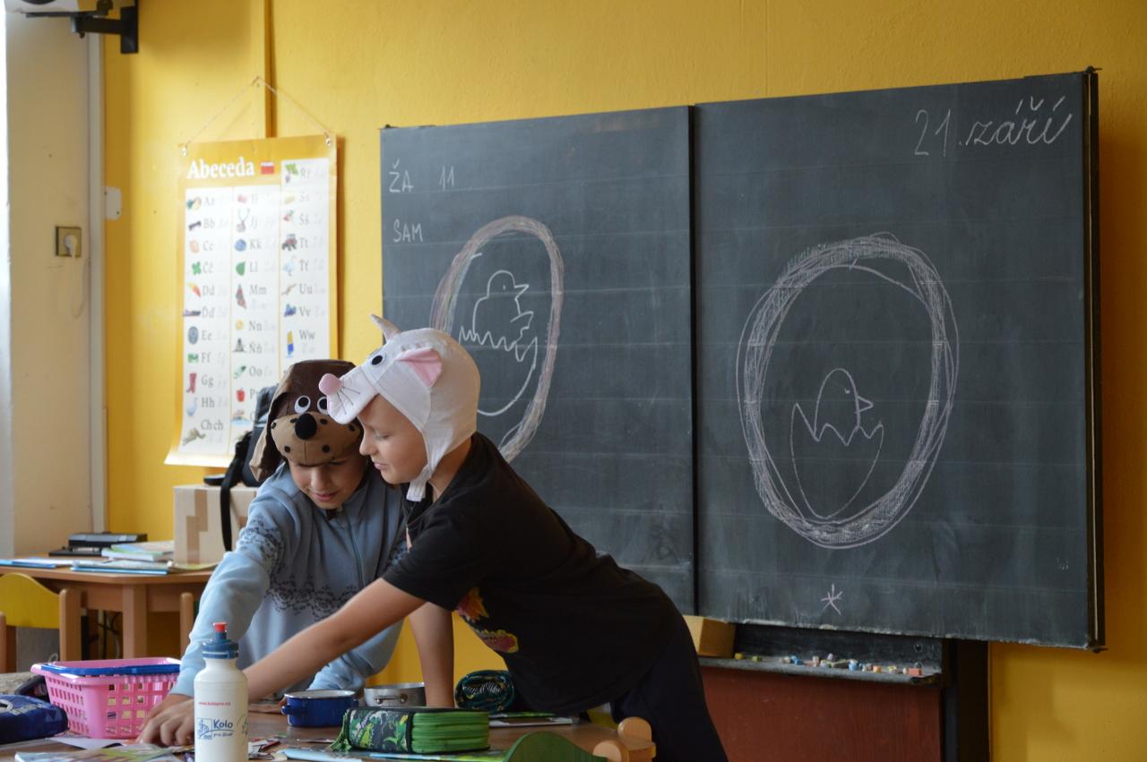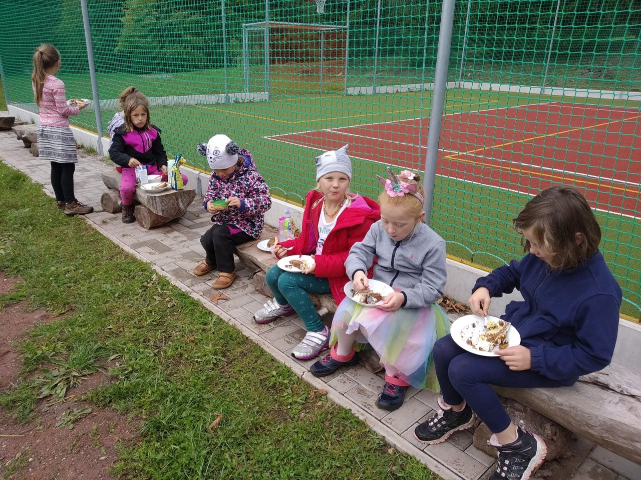 Loupežníka Lotranda známe z Čapkovské pohádky “Loupežnická pohádka” a tak jsme se rozhodli navštívit Lotranda v jeho jeskyni, která se v našem kraji nachází. Cesta lesem nás přivedla až k 24 m vysoké rozhledně Žaltman, mnozí překonali sami sebe a přes svůj strach z výšky nakonec shlédli do kraje ze samého vršku rozhledny. Poté jsme se vydali cestu za Lotrandem. Ale kudy jít? Jé…na cestě se třpytily zlaťáky, které asi vypadly cestou z lupu samotnému Lotrandovi. Zlaťáky nás přivedly k jeskyni, kde jsme potkali Lotranda i s jeho ženou a loupežnickým synkem. Připravili jsme si ohniště a vzájemně se s loupežnickou rodinou podělili o naše pochoutky. Vyprávěli jsme si o našich životech, škole a zážitcích. Celým výletem nás provázely písničky a češtinářské slovní hádanky. Kousek cesty jsme se nakonec svezli naším Mravbusem.