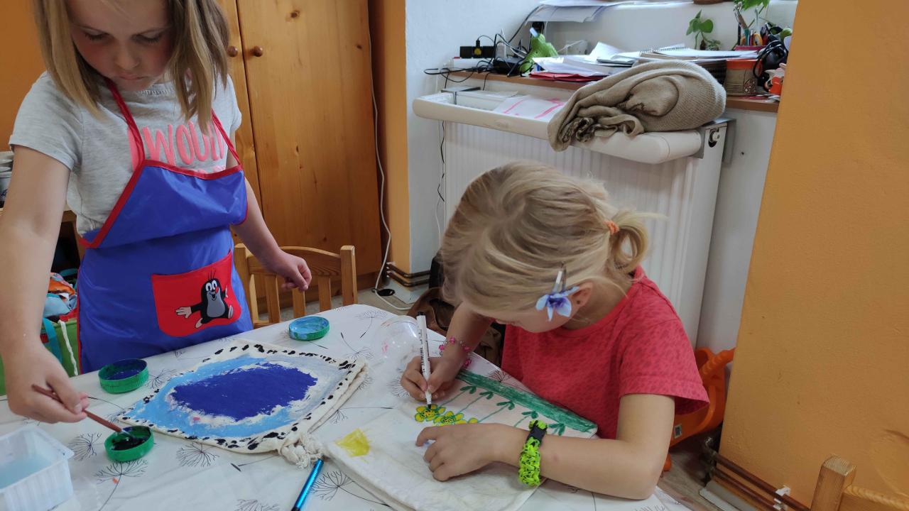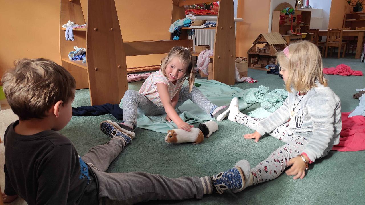 První týden věnujeme seznamování, vzájemnému poznávání a utváření společných pravidel. Tak jako pavouček tká svou nitku, tak i my tkali nitku přátelství, aby bylo pouto mezi námi pevné a silné. Učíme se vzájemnému respektu a sžíváme se s prostředím a chodem školky. Malujeme látkové pytlíčky, tvoříme narozeninové sluníčko a utváříme si prostor ve školce tak, abychom se v něm cítili dobře. I tento rok s námi zůstávají dva zvířecí kamarádi, o které pečujeme a učíme se o ně starat. Poznáváme, kolik legrace si s nimi můžeme užít a zároveň se učíme domlouvat a dělit s kamarády.