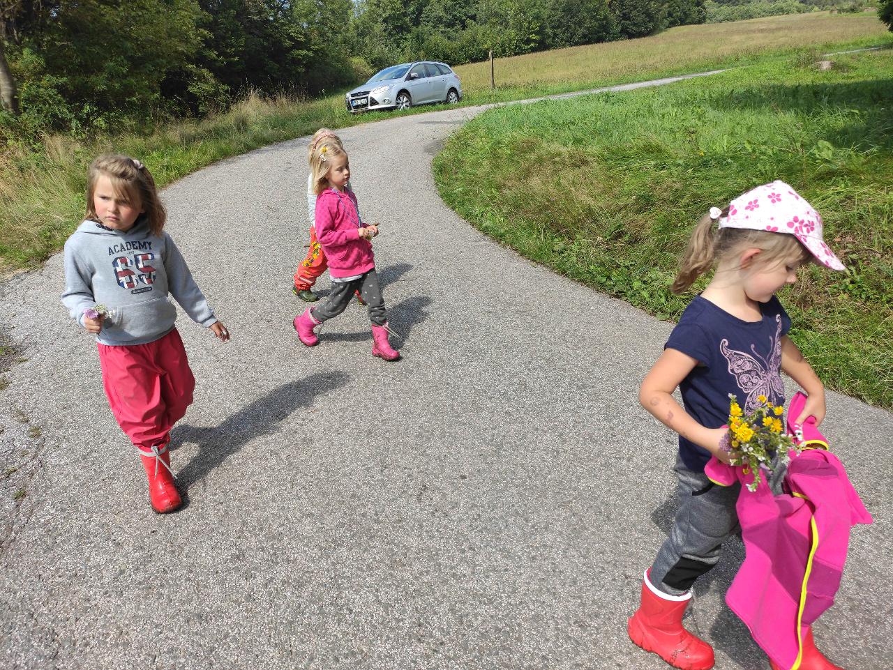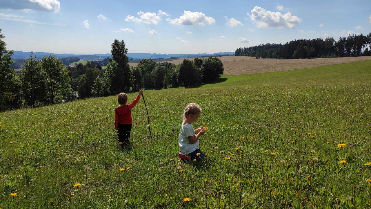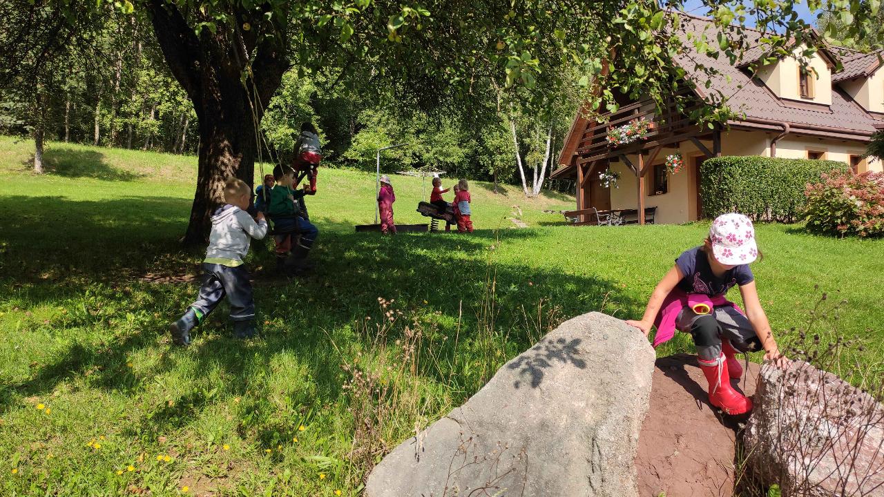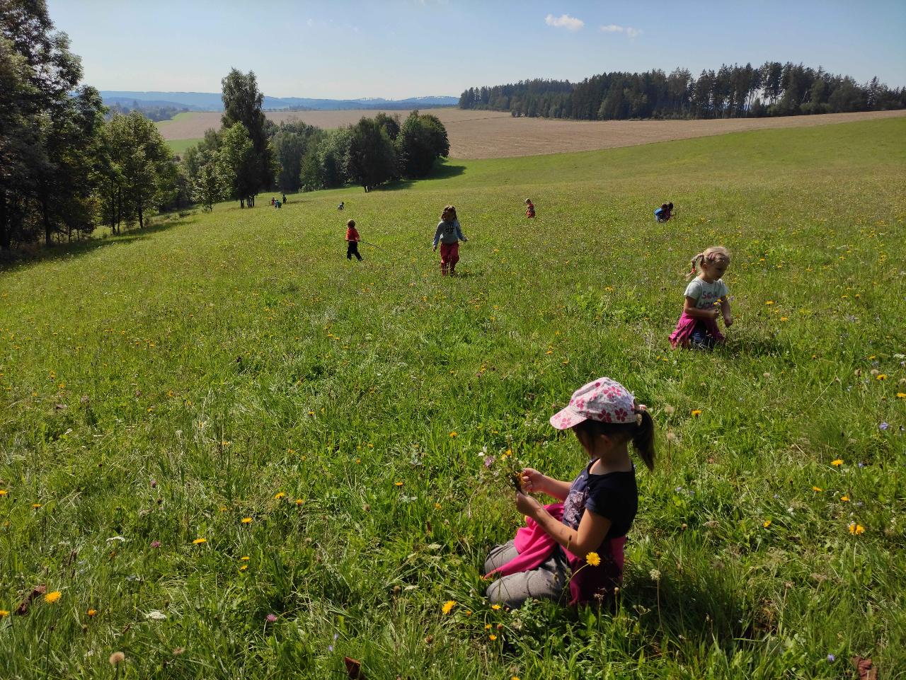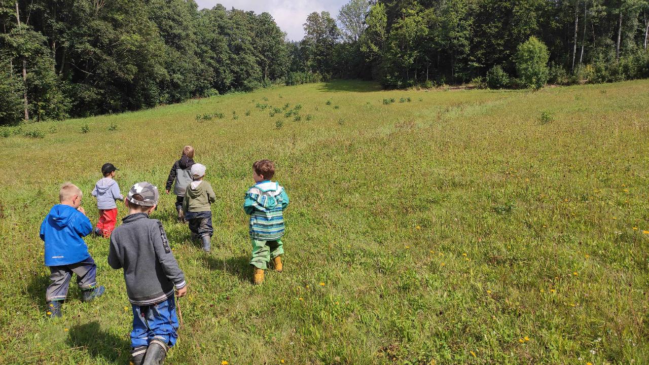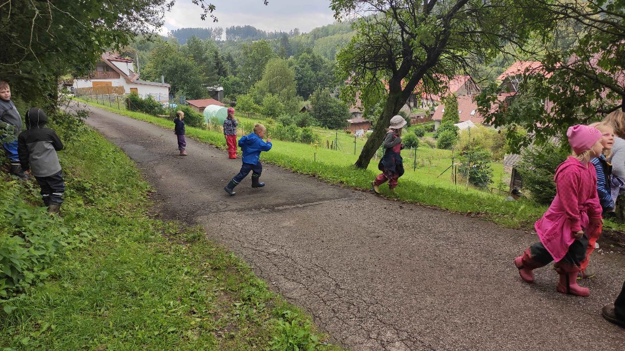 Prozkoumáváme okolní louky a lesy, kde staví děti domečky pro skřítky a lesní zvířátka. Na louce chytáme kobylky a poznáváme další luční tvory. Budujeme nová přátelství, trháme kytičky a společně se těšíme z pohybu venku.
