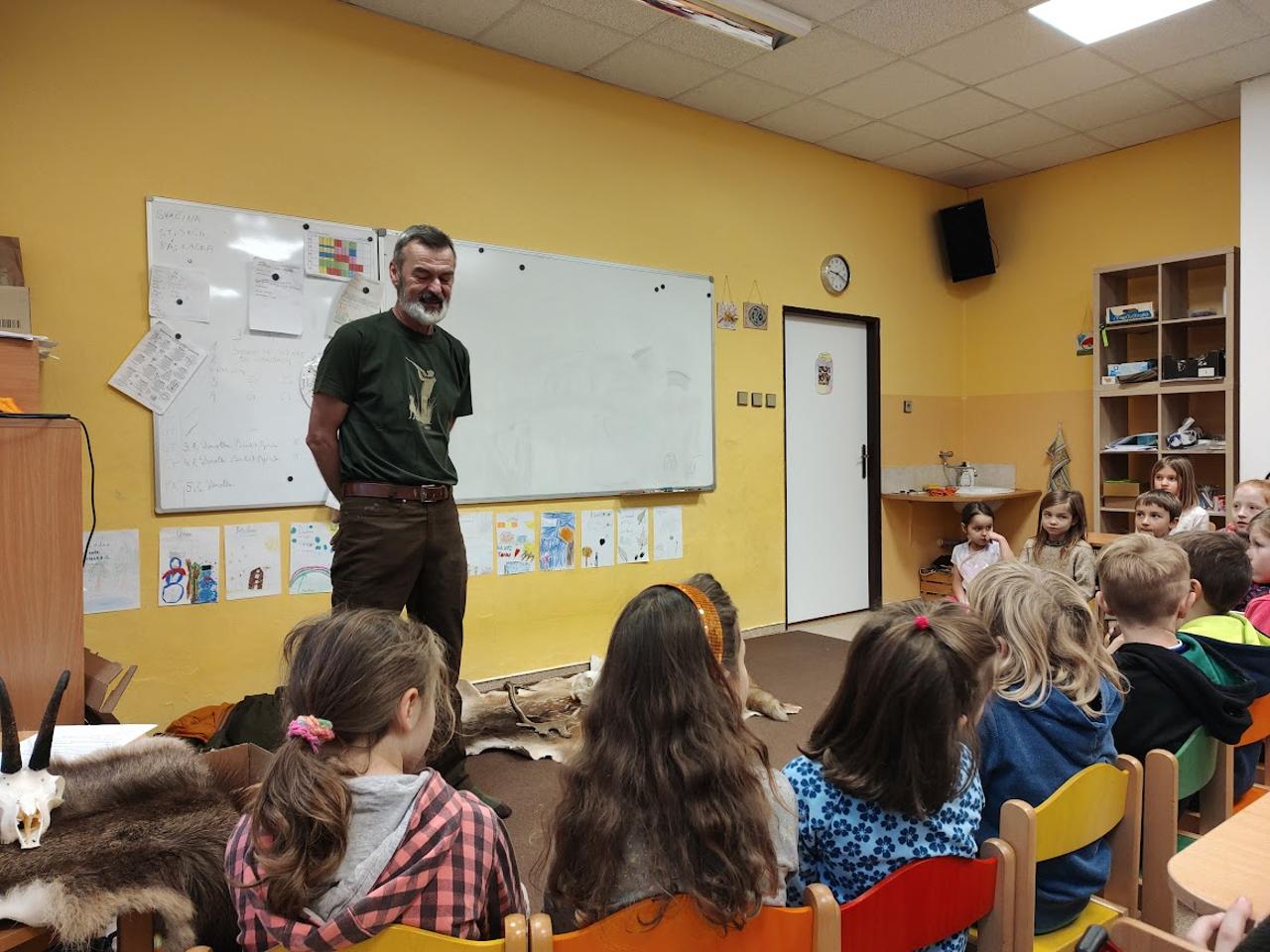 Týden nám začal až ve středu. Přivítali jsme se v novém roce 2024, přinesli si na ukázku dárky, které jsme našli pod stromečkem. Ve čtvrtek jsme přivítali hospodáře z Mysliveckého spolku Jestřebí Velké Svatoňovice. Ing. Jiří Večeř nám povídal o souvislostech krajiny, zemědělství, našeho chování a volného času, který trávíme v přírodě, na chování a výskytu lesní zvěře. Dozvěděli jsme se opravdu mnoho, děti nejvíce zaujala lebka medvěda, kterého pan Večeř ulovil ve Slovinsku. Neulovil ho pro zábavu, ale pro přemnožení v této oblasti. Vydali jsme se i na procházku lesem a dozvěděli se informace o ekosystémech, erozích, meandrech, co nám vrací krajina díky hornictví, které tu bylo ve větší míře atd... Byl to zajímavý a krásný den. Připravovali jsme se také na každoroční sčítání ptáků s Českou společností ornitologickou. Jak dopadne Ptačí hodinka 5.-7.1.2024? Kolik se nás zapojí?