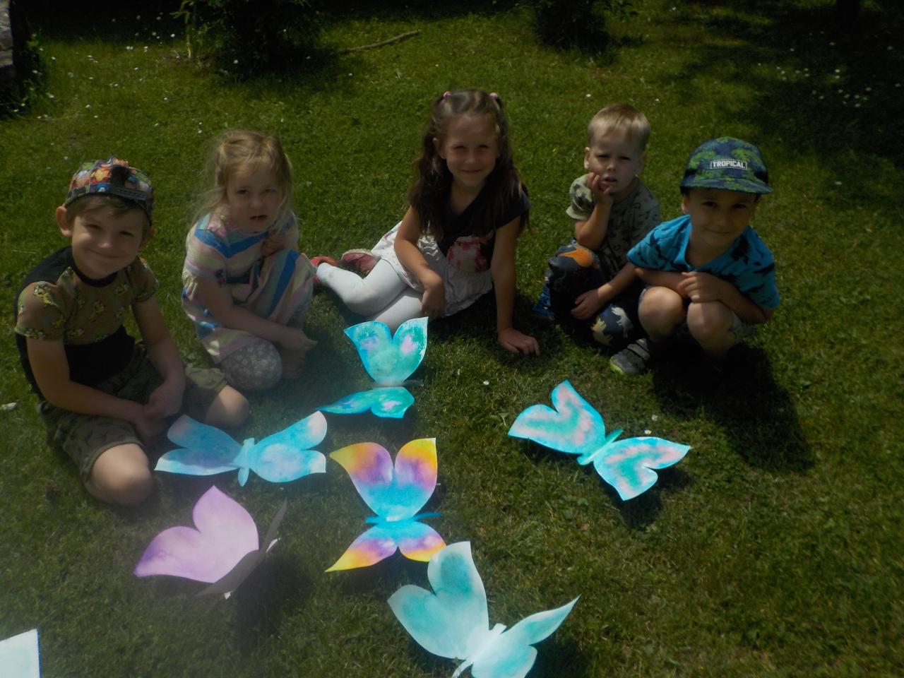 Minulý týden jsme navštívili "Motýlí strom" a tento týden jsme s motýly prožili úplně celý. Každý den jsme si povídali a hráli hry na téma jednotlivých stádií motýla. Naučili jsme se písničky a dva krásně barevné motýly jsme si upekli ke svačině. Každý den jsme zavítali do přírody, některé dny bylo bohužel chladněji a deštivo, a to se ani motýlům ven nechtělo. My se nenechali odradit, ven jsme šli, jen na jejich pozorování nebylo moc příležitostí. Zato jsme našli píďalku, vajíčka a alespoň jsme si motýla vyrobili a namalovali.
