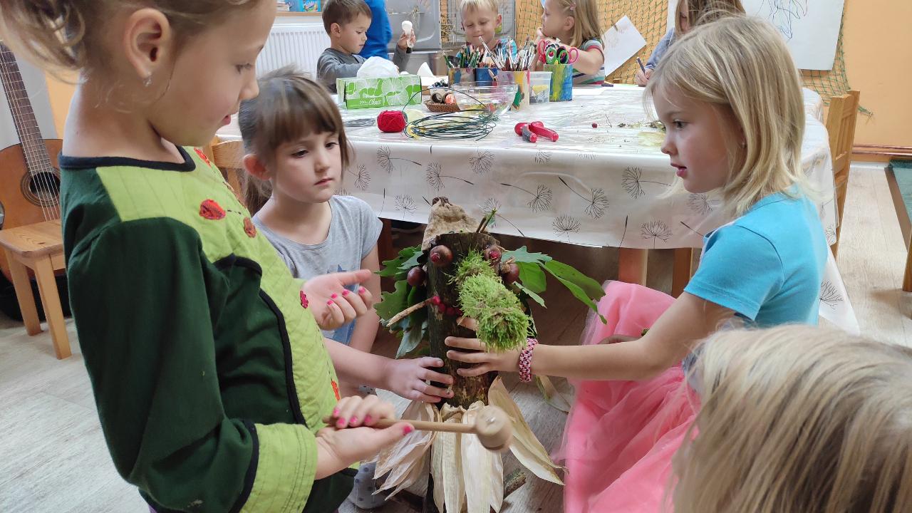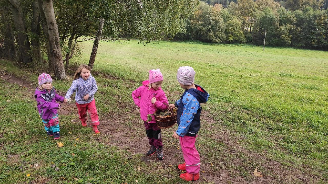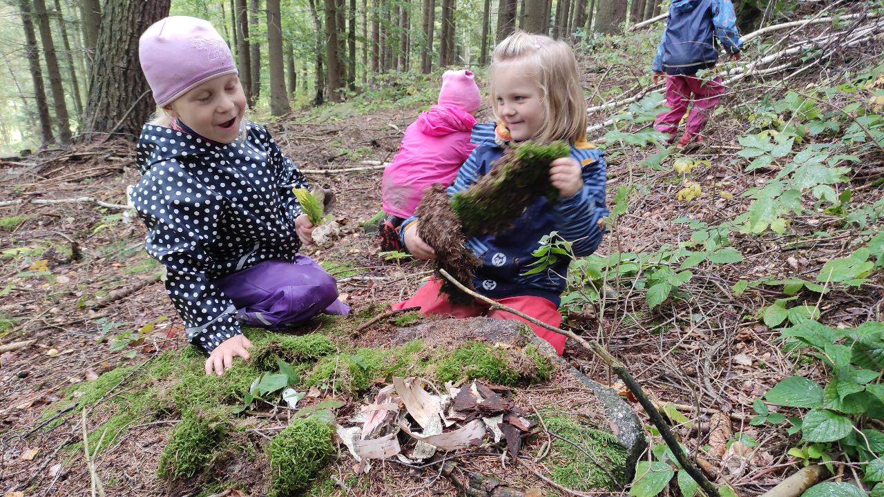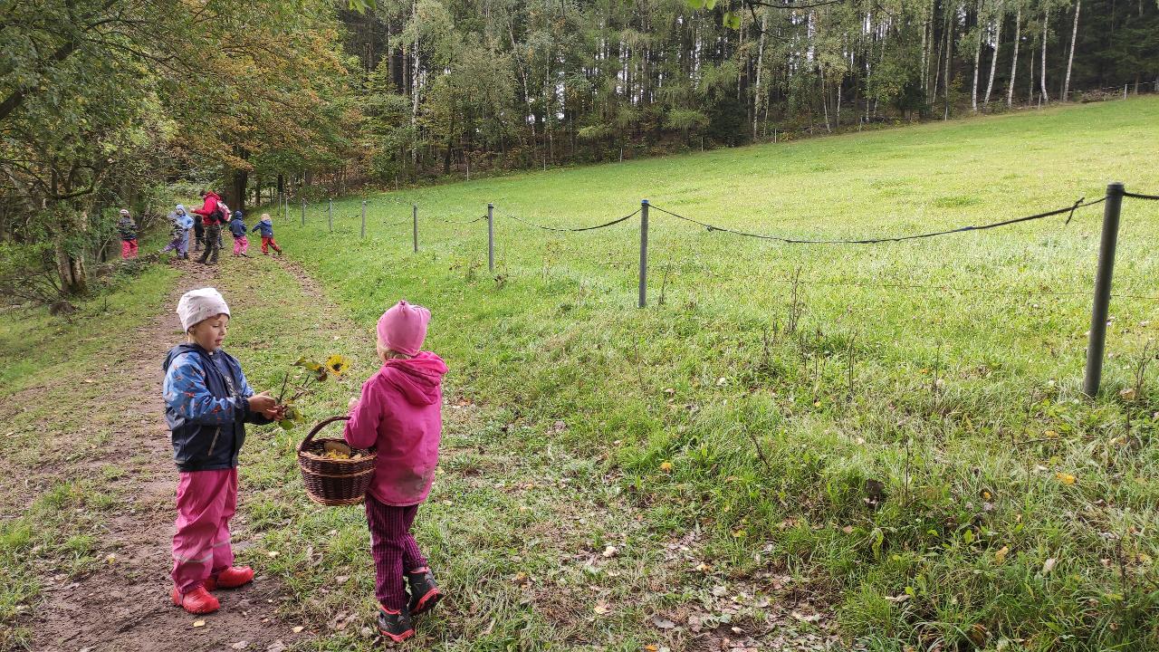 Co s sebou podzim přináší, jaké počasí k podzimu patří, co nás na podzimu nejvíc baví, o tom všem jsme si tento týden povídali. Venku zjišťujeme, jak se nám příroda mění před očima. Sbíráme materiál na tvoření skřítků malých i velkých, šijeme z filcu, tvoříme jedlé i nejedlé houby. V lese si děti otvírají kavárnu a cukrárnu, a tak máme šanci "ochutnat" třeba mechové palačinky nebo kávu s různými příchutěmi. Užíváme si podzimní déšť a děti hledají nejlepší úkryt ke hraní.