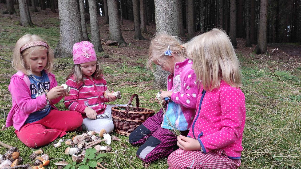 Zažíváme první společná dobrodružství. Hledáme a poznáváme houby, putujeme přírodou, trénujeme obratnost lezením a houpáním na stromech. Kreslíme křídami, skáčeme panáka a užíváme krásných slunečných dnů.