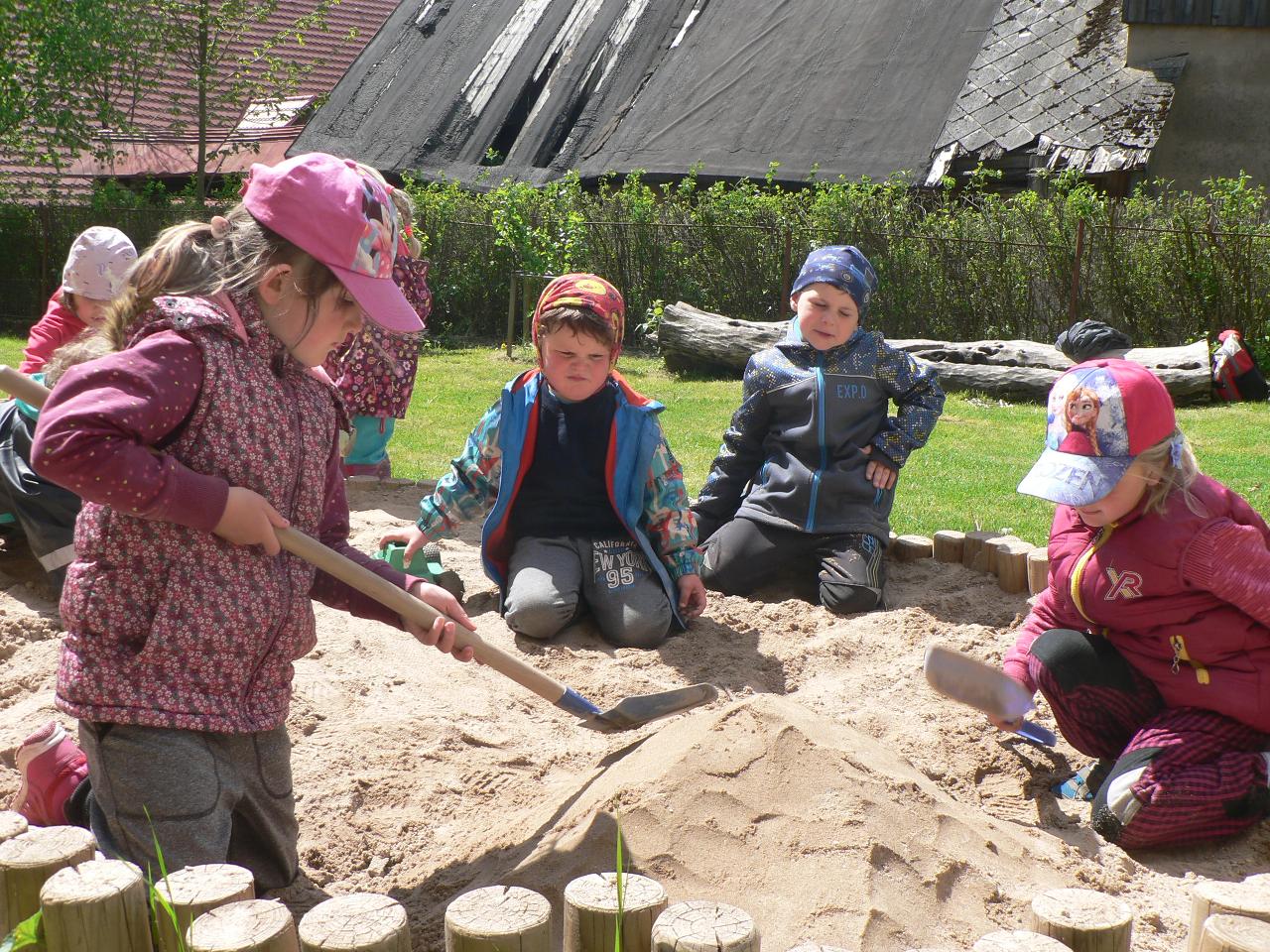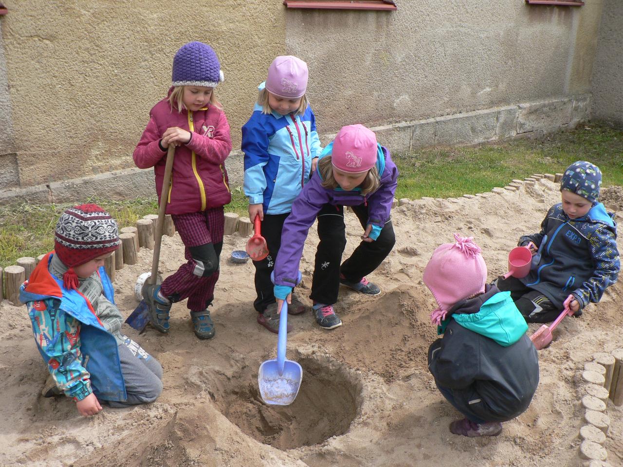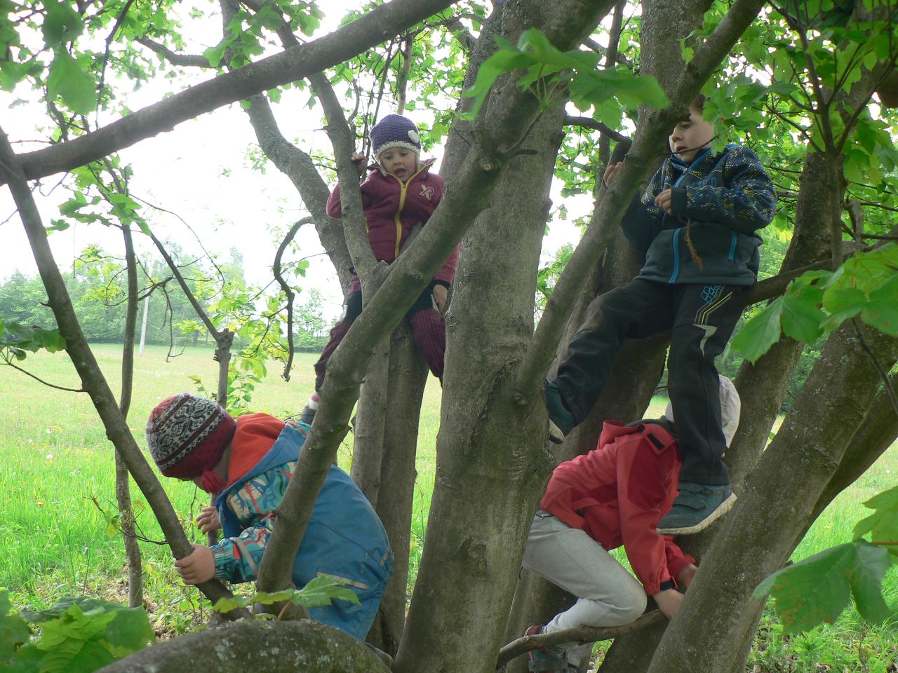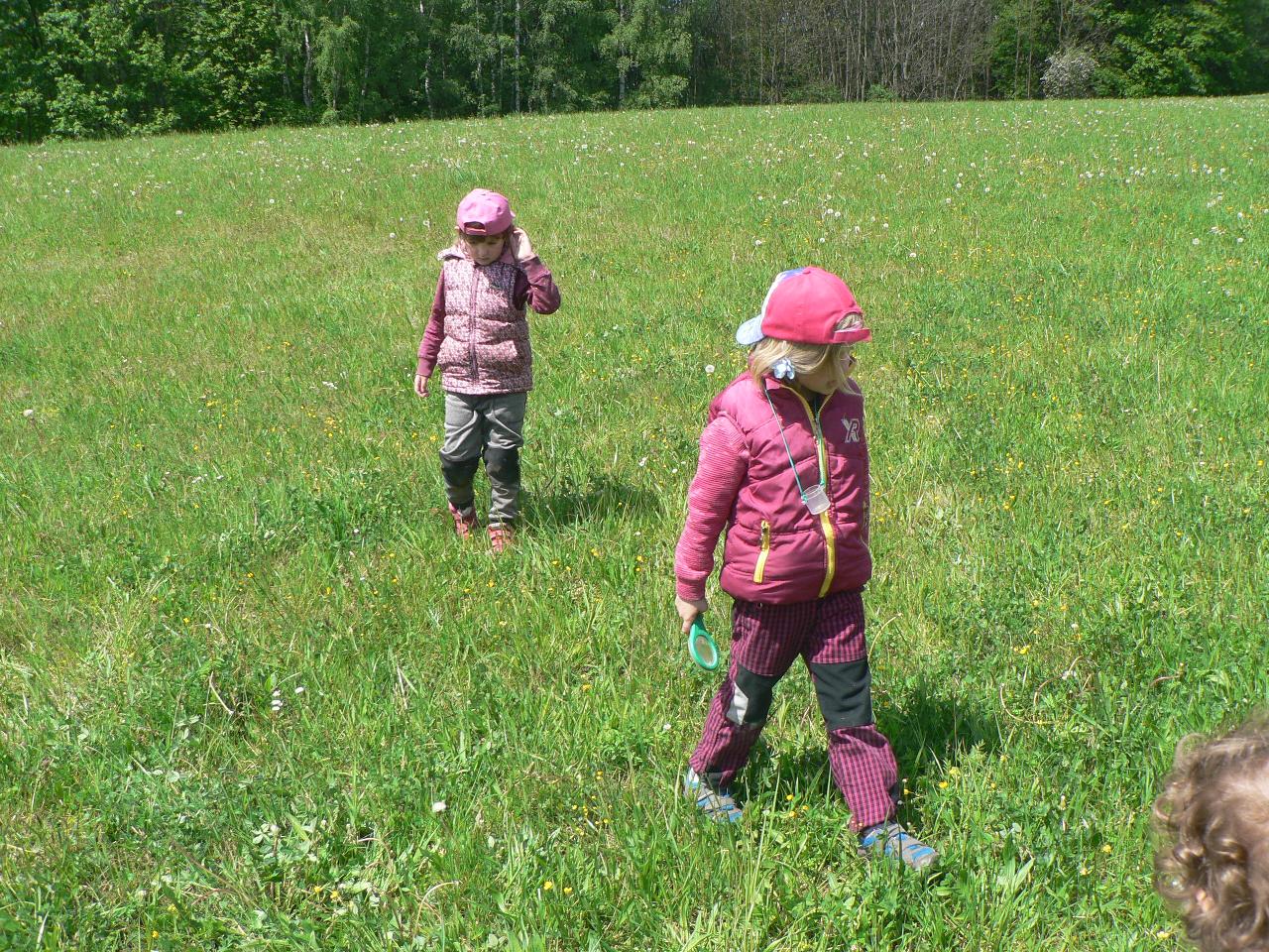 Tentokrát se naše společné objevování přesunulo do říše hmyzu. Zavedla nás tam pohádka „Jak beruška hledala tečky“. A protože nám přálo počasí, měli jsme spoustu příležitostí různé lezoucí i létající druhy hmyzu pozorovat nejen na obrázcích a v knížkách, ale vyrazit za nimi na okolní rozkvetlé louky. Děti se v tu chvíli proměnily na skutečné detektivy a vybavené lupami a odchytovými krabičkami, běhaly po loukách a vracely se s různými úlovky v podobě různých broučků, pavoučků nebo housenek. Při ranním tvoření jsme berušky malovali na kameny, lepili a vystřihovali z papíru, počítali jim tečky a spoustu dalšího. No a protože se v pohádce objevil také jeden hladový datel, tak jsme si ho v pátek pěkně vybarvili a vystřihli a připomněli si, jak vlastně vypadá. Celým týdnem nás provázely jarní říkanky, písničky a dobrá nálada.