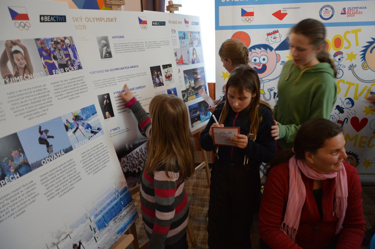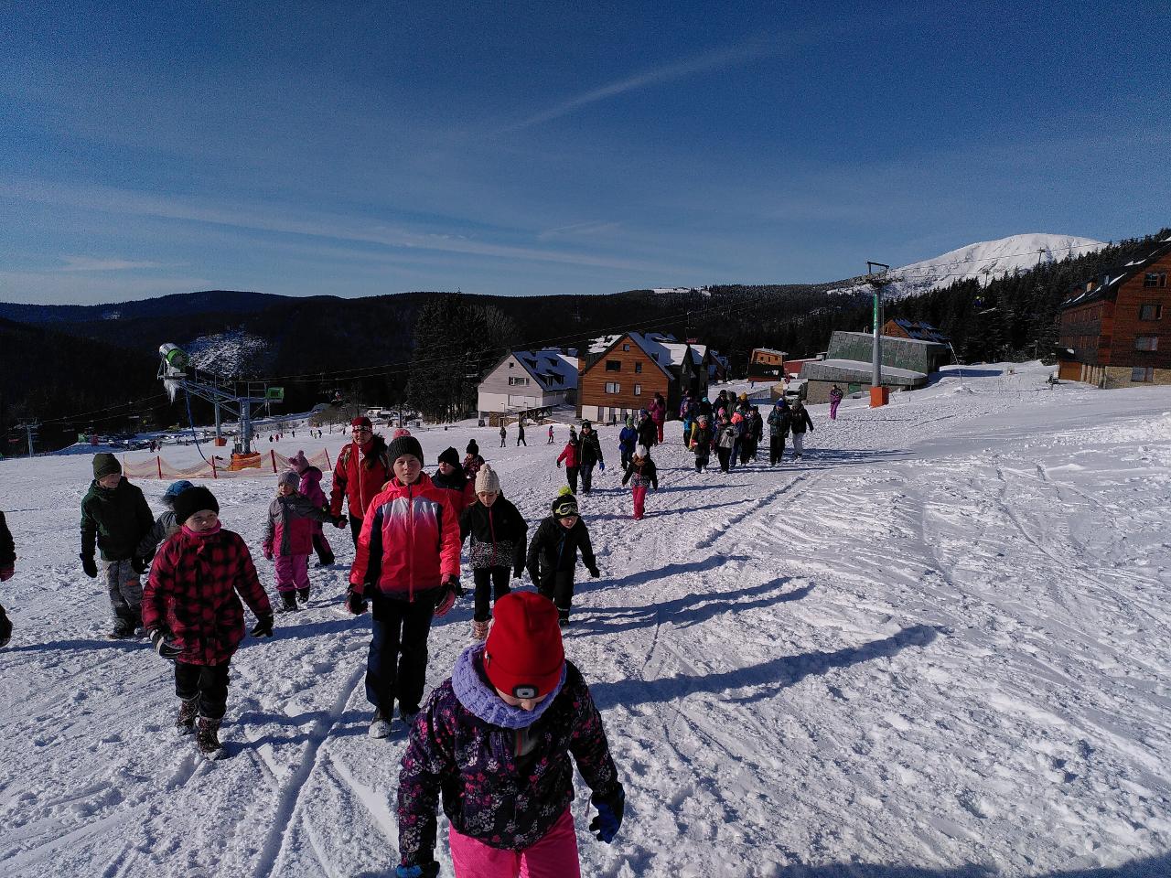 Tento týden jsme začali vyjímečně venkovním dnem hned v pondělí. Vyrazili jsme na Olympiádu dětí a mládeže do Krkonoš. Cesty nás zavedly nejprve na biatlonovou střelnici do Vrchlabí. Přesunem na Horní Mísečky jsme zažili slalom a velkou radostí všech bylo setkání se s olympijským maskotem - velkým modrým sněhulákem. Dalším přesunem jsme se dostali do Špindlerova Mlýna - Bedřichova a olympijského domu. Olympijským domem se stal hotel VZ Volareza. Rozešli jsme se v Trutnově v pozdějších hodinách a kdo ještě neměl dost sportu, mohl zajít na zimní stadion, kde se konalo utkání v hokeji. Celým dnem nás provázelo velmi krásné, slunečné počasí se sněhem, jako z pohádky.