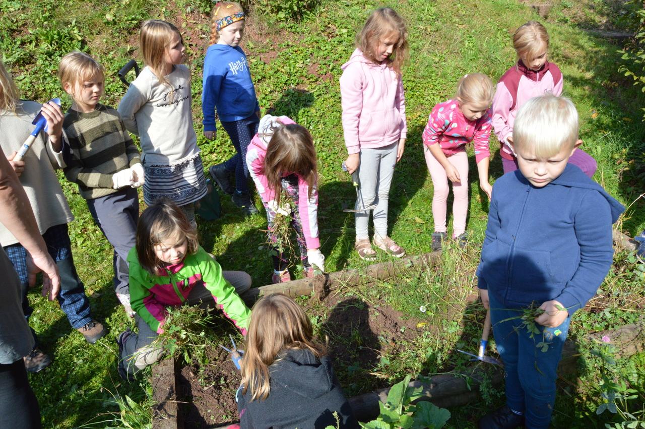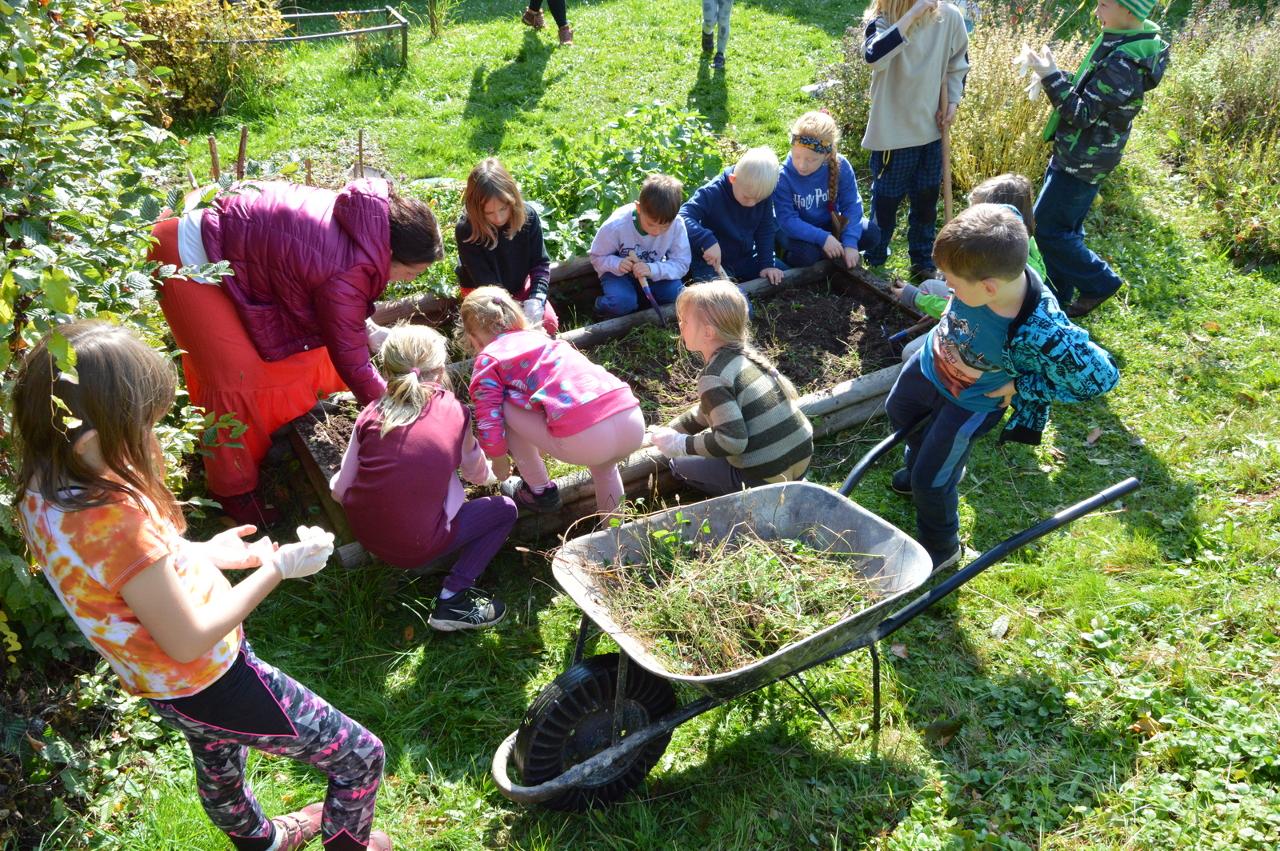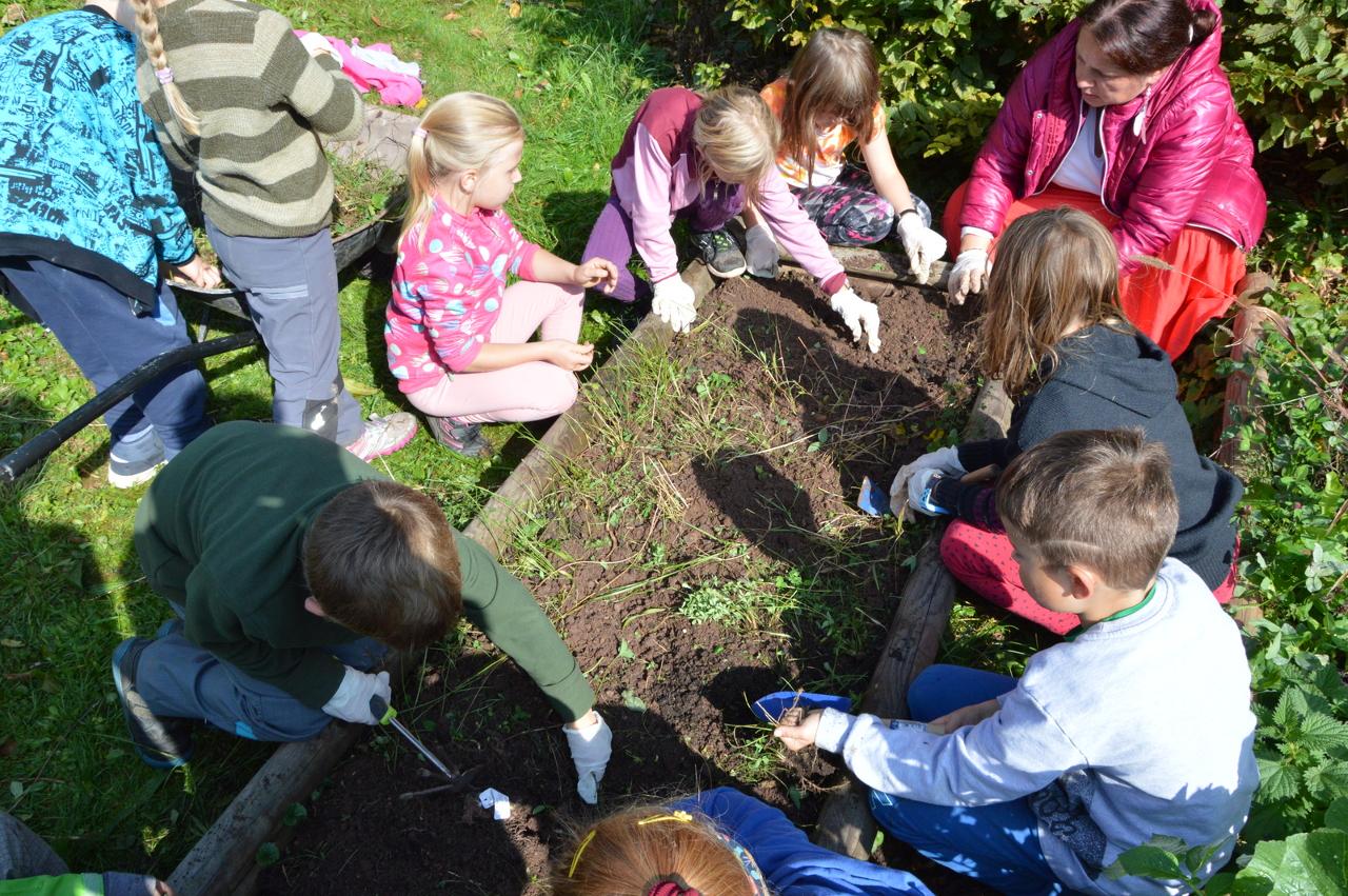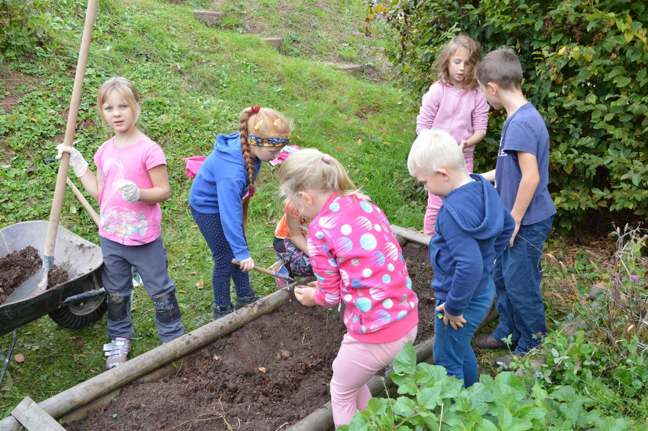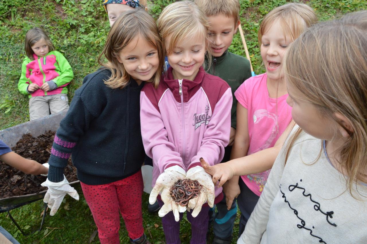 Podzim plyne v plném proudu, stromy se krásně barví a my máme to štěstí, že to můžeme pozorovat v tak krásném okolí, jaké Mraveniště má. V tomto týdnu navazujeme na dary přírody a rozhodli jsme se, že si upečeme chléb. Bylo však potřeba zjistit více, abychom věděli, jak na to.. Dozvěděli jsme se, že pekaři věří, že chléb má svoji duši. Zaujala nás historie chleba. Víte jak to bylo? Nejprve se žvýkala zrna, pak se pražila, o něco později se drtila, čímž vznikla první mouka, ze které se začaly dělat kaše a placky. Díky náhodě se v Egyptě zjistilo, že sluníčko má tu schopnost množit bakterie a vznikl kvásek. My jsme si také zkusili chlebík upéct. Těšili jsme se na to, že si zkusíme mlít obilná zrna. Náš mlýnek nás však vůbec neposlouchal. Mouku jsme naštěstí měli, tak jsme se vrhli do pečení. Chlebíky se nám vydařily znamenitě. To byla dobrůtka. Po pečení na nás už čekala naše mravenčí zahrada. Celou jsme jí prošli, ukázali jsme si, kde co roste a zjistili jsme co je potřeba udělat před zimou. Práce bylo dost. Děti si vybraly, že vyplejeme jeden záhon. Kluci přivezli kolečko, rýč a motyky. Vrhli jsme se na to. Práce nám šla hezky od ruky. Našli jsme dlouhatánské kořeny, ale také mnoho žížal. Jedna byla tak tlustá, jako malíček dospěláka. A v kolik žížal jsme teprve objevili v kompostu! Brzy bylo hotovo, mnoho ručiček zvládlo velký kus práce během chvilky. Je radost s vámi být.