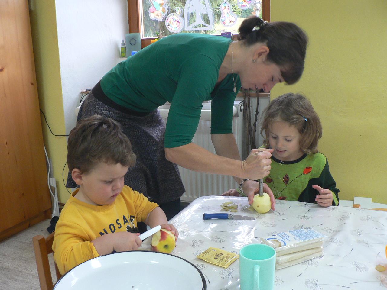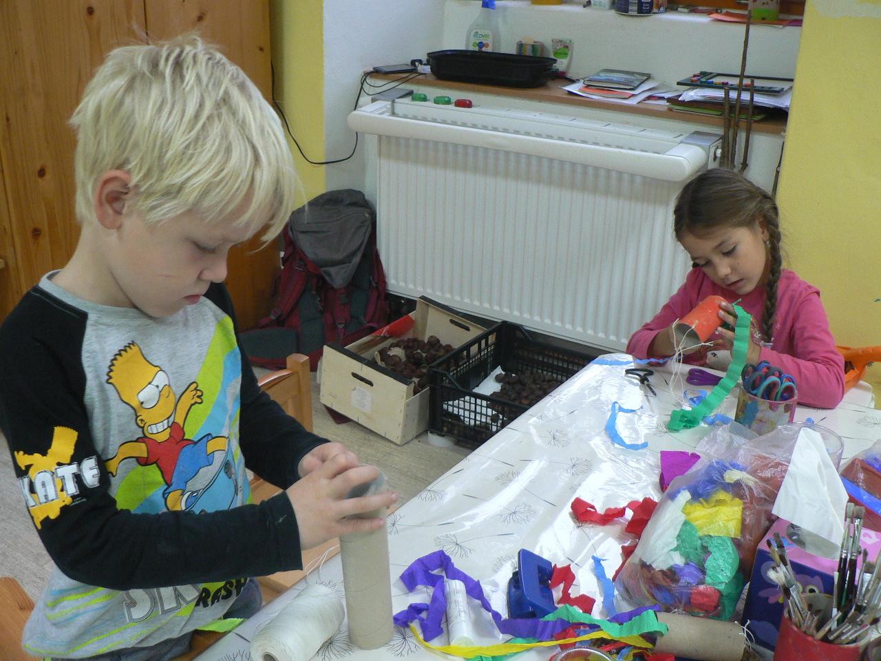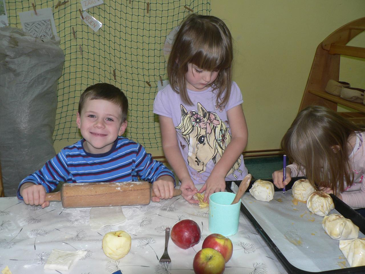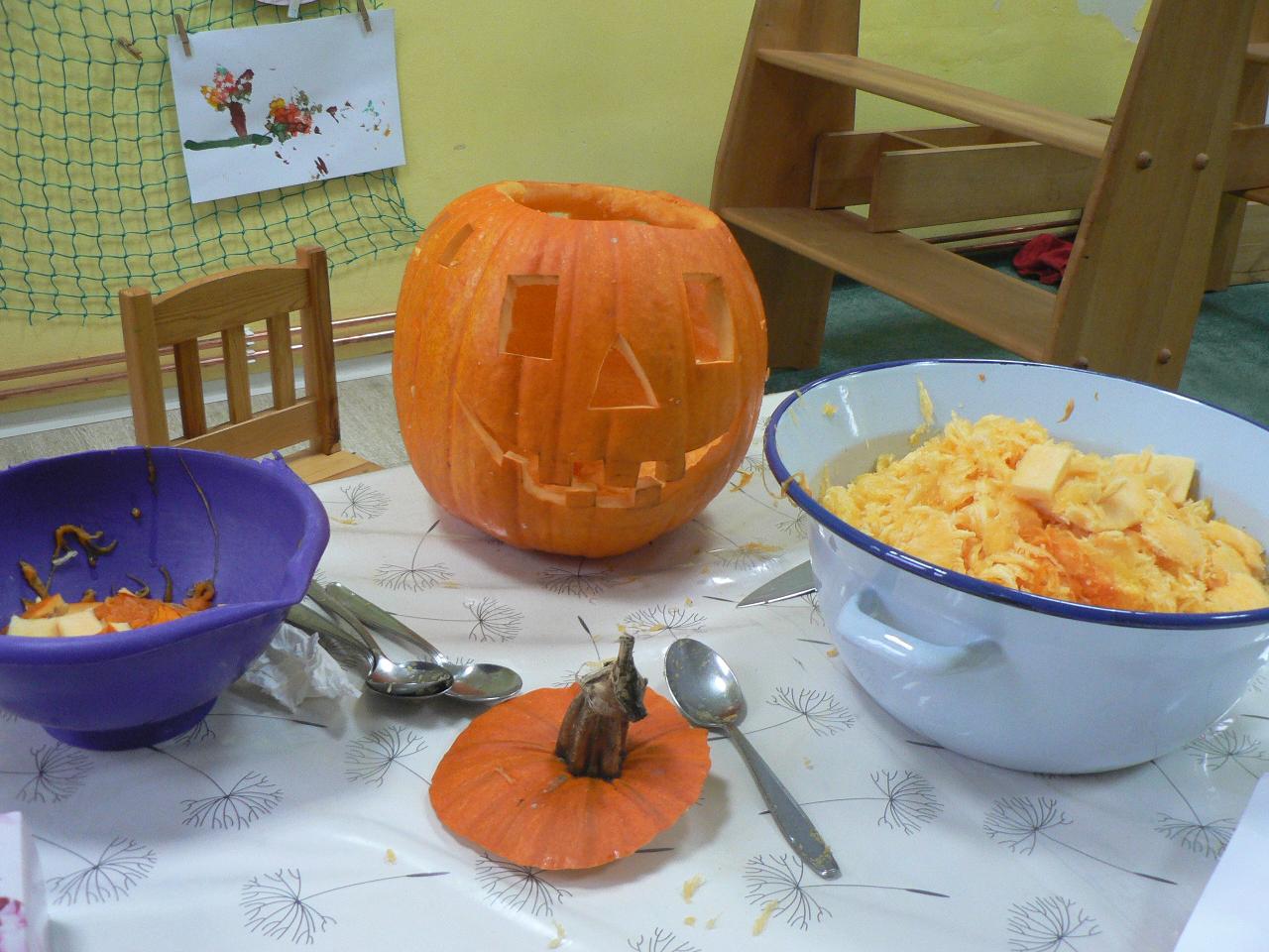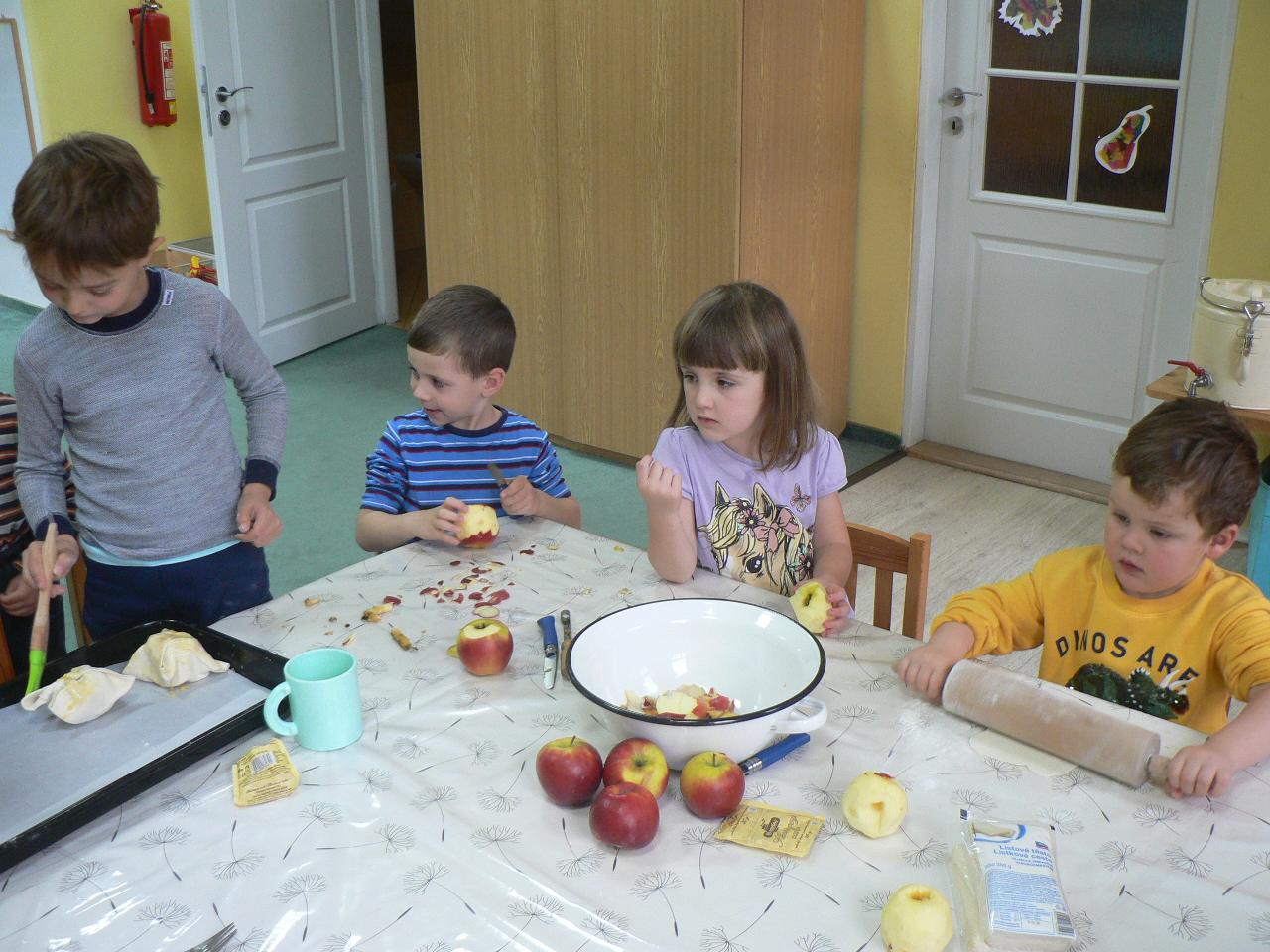 Tento týden byl ve školce hodně tvořivý. Dlabali a vyřezávali jsme dýně, naučili jsme se péct jablka v županu, malovali na kameny, vyráběli větrníky z papírových roliček a také jsme si připravovali a malovali lucerničky na blížící se Svatomartinskou slavnost. Vyprávěli jsme pohádku o Malém větříku a o tom, že menší síla někdy může přinést více užitku. Děti spolu s Větříkem poznávaly, co může příliš velká síla způsobit a že někdy je lepší na síle trochu ubrat a přidat více citu. Sílu a intenzitu jsme vnímali v pohybu i v rytmu a také v hudbě. Naučili jsme se nové říkanky, zpívali písničky a dováděli venku. No a pomalu jsme se začali připravovat a těšit na příští týden a na příchod svatého Martina. Kdoví, třeba přivítáme i první sníh…