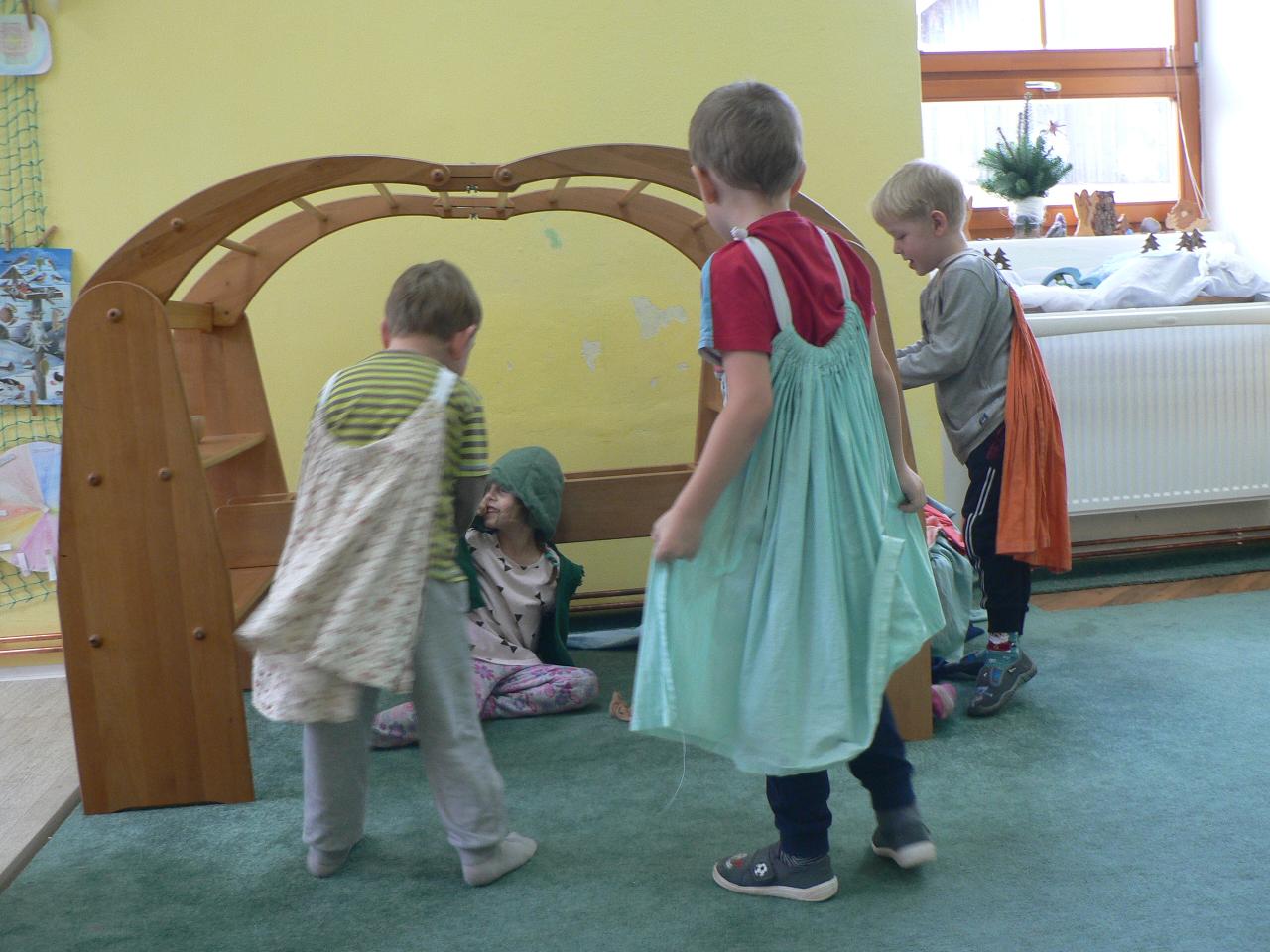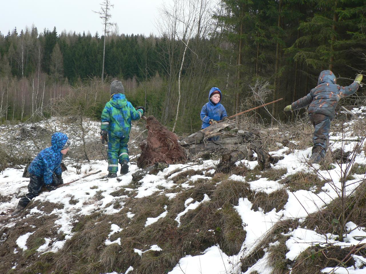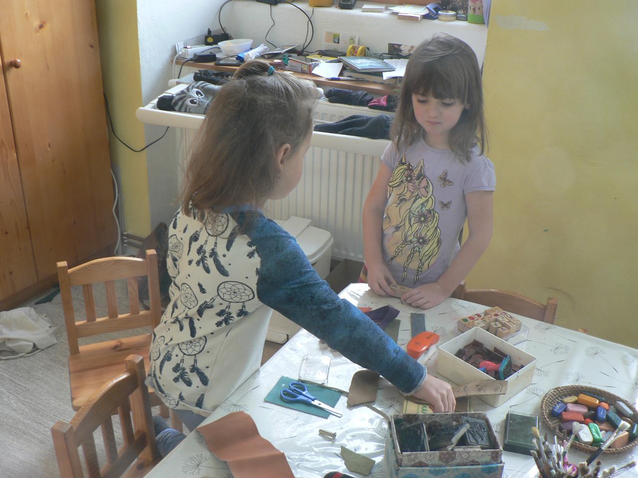 Tento týden jsme se spolu se dvěma šikovnými skřítky vydali do jedné malé ševcovské dílny. Vyprávěli jsme si pohádku „Jak skřítkové šili boty“ a povídali si o tom, co takový švec dělá, z čeho boty šije a jaké nástroje k tomu potřebuje. Díky našemu vyrábění jsme se vždy ráno na chvíli na ševce proměnili a zkoušeli si měřit nožky, stříhat míru na podrážky, vyrábět pantofle (alespoň z kartonu), šít jehlou nebo třeba vyrábět náramky a ozdoby z kůže. Naučili jsme se nové ševcovské říkanky a v písničkách hledali různě schovaná povolání. V kroužku jsme si pak povídali o tom, co dělají naši rodiče a co je to vlastně povolání. A protože sníh už venku roztál, tak jsme při našich venkovních výpravách běhali po loukách, lezli po stromech a hráli si v lese i na hřišti.