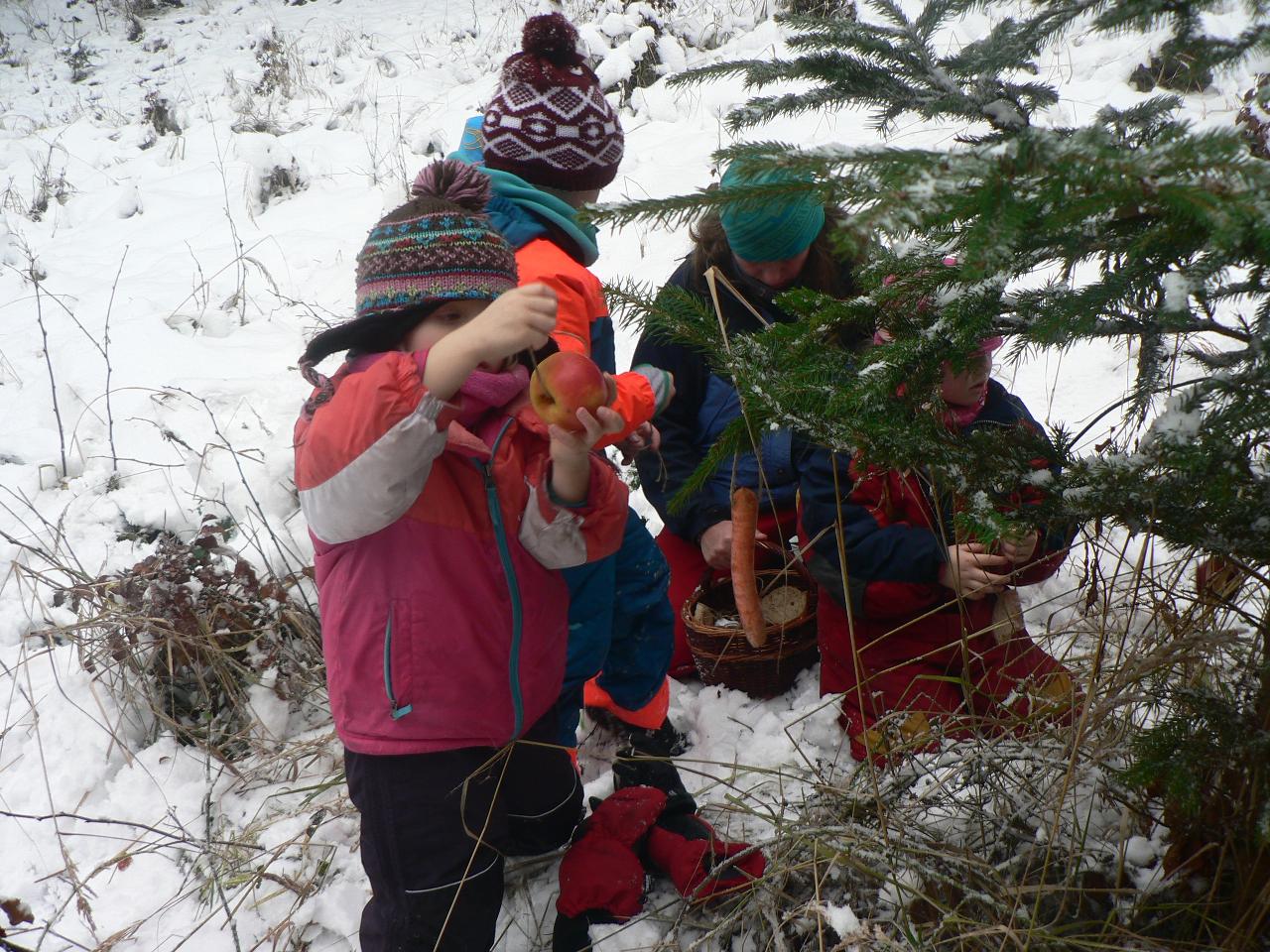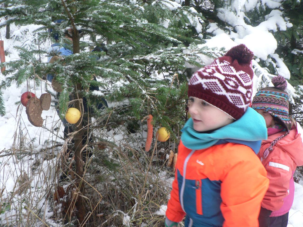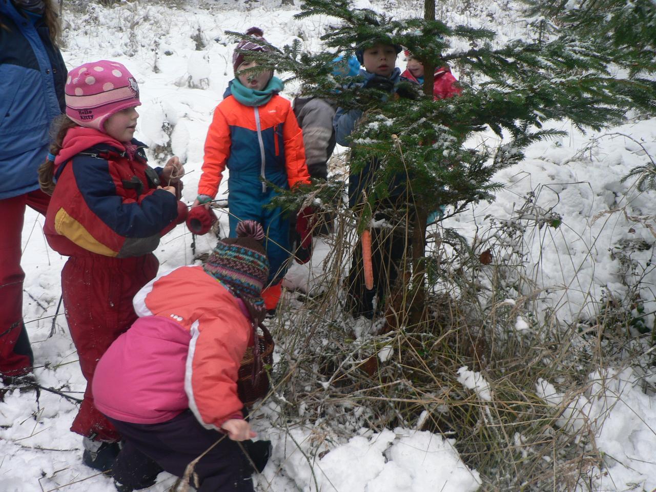 Poslední týden před Vánoci, týden plný příprav, napětí a očekávání. Vyprávíme si příběh o putování Marie a Josefa, příběh o narození Ježíška. V představách se s nimi vydáváme na dlouhou a namáhavou cestu a také společně s nimi prožíváme různá setkání i zázraky na cestě. Díky školákům pak celý příběh prožíváme také v podobě divadelního představení, které bylo opravdu vydařené a všem se nám moc líbilo. V kroužku společně zpíváme vánoční koledy, učíme se nové říkačky a hrajeme hry, při kterých se učíme něco o postřehu, rychlosti i spolupráci. Připomínáme si vánoční zvyky a tradice, povídáme si o vánocích a o tom, na co se kdo těší nejvíc. Tento týden je také ve znamení vánočního tvoření - zdobili jsme skleněné kuličky, vyráběli korálkové ozdoby na stromeček, průsvitné papírové hvězdy do oken, malovali jsme betlém. Venku si stále užíváme spoustu zábavy se sněhem, zjišťujeme, jak velké koule z něho dokážeme uválet, kolik se ho vejde do veliké kaluže a taky že za krkem pěkně studí. V pátek pak připravujeme spoustu jedlých ozdob, které jsme naskládali do košíku se vydali do lesa za zvířátky, abychom i je před Vánoci podarovali a donesli jim něco dobrého na zub.