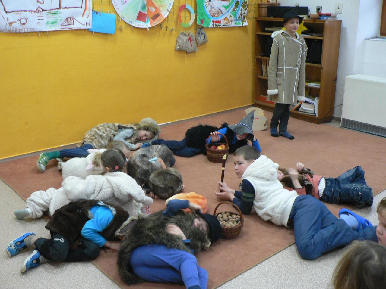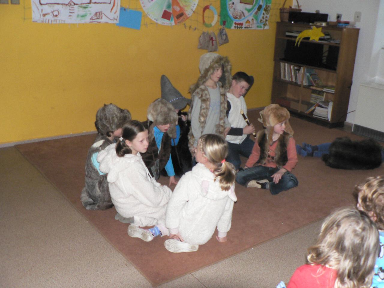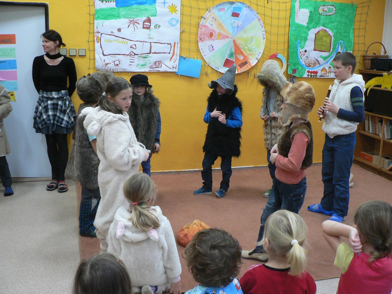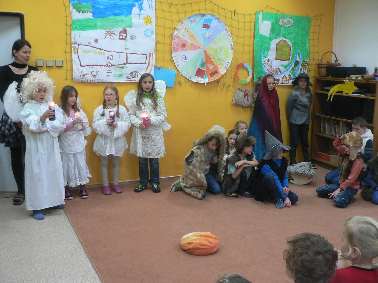 Poslední týden před Vánoci, týden plný příprav, napětí a očekávání. Vyprávíme si příběh o putování Marie a Josefa, příběh o narození Ježíška. V představách se s nimi vydáváme na dlouhou a namáhavou cestu a také společně s nimi prožíváme různá setkání i zázraky na cestě. Díky školákům pak celý příběh prožíváme také v podobě divadelního představení, které bylo opravdu vydařené a všem se nám moc líbilo. V kroužku společně zpíváme vánoční koledy, učíme se nové říkačky a hrajeme hry, při kterých se učíme něco o postřehu, rychlosti i spolupráci. Připomínáme si vánoční zvyky a tradice, povídáme si o vánocích a o tom, na co se kdo těší nejvíc. Tento týden je také ve znamení vánočního tvoření - zdobili jsme skleněné kuličky, vyráběli korálkové ozdoby na stromeček, průsvitné papírové hvězdy do oken, malovali jsme betlém. Venku si stále užíváme spoustu zábavy se sněhem, zjišťujeme, jak velké koule z něho dokážeme uválet, kolik se ho vejde do veliké kaluže a taky že za krkem pěkně studí. V pátek pak připravujeme spoustu jedlých ozdob, které jsme naskládali do košíku se vydali do lesa za zvířátky, abychom i je před Vánoci podarovali a donesli jim něco dobrého na zub.