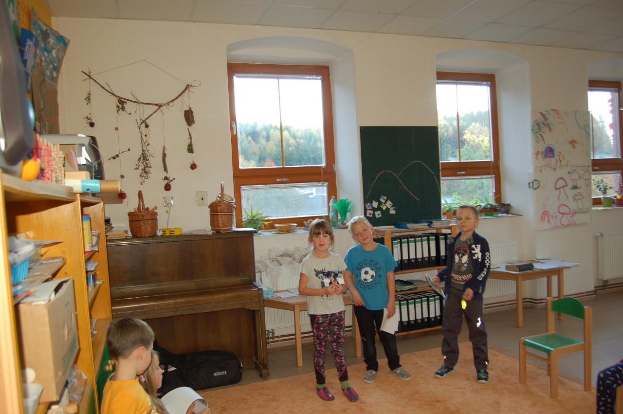 Čekaly nás pouhé pouhé dva školní dny ze začátku týdne, a ty patřily psím příběhům. Je to zajímavé, ale téměř všichni školáci naší třídy mají doma psa. A vlastně i průvodci ve třídě :-) Do školy jsme přinesli obrázky našich čtyřnohých kamarádů a vyprávěli si, co všechno mohou psi s námi i bez nás zažít. Víme už kde spí, co jedí, jaké jsou psí rasy a poznali jsme spoustu jejich dalších radostí i starostí. Stihli jsme také procvičit psaní, čtení, matematiku, angličtinu, protáhli tělo při tělocviku, výtvarný kroužek, a pak už vyrazili všichni na podzimní prázdniny.