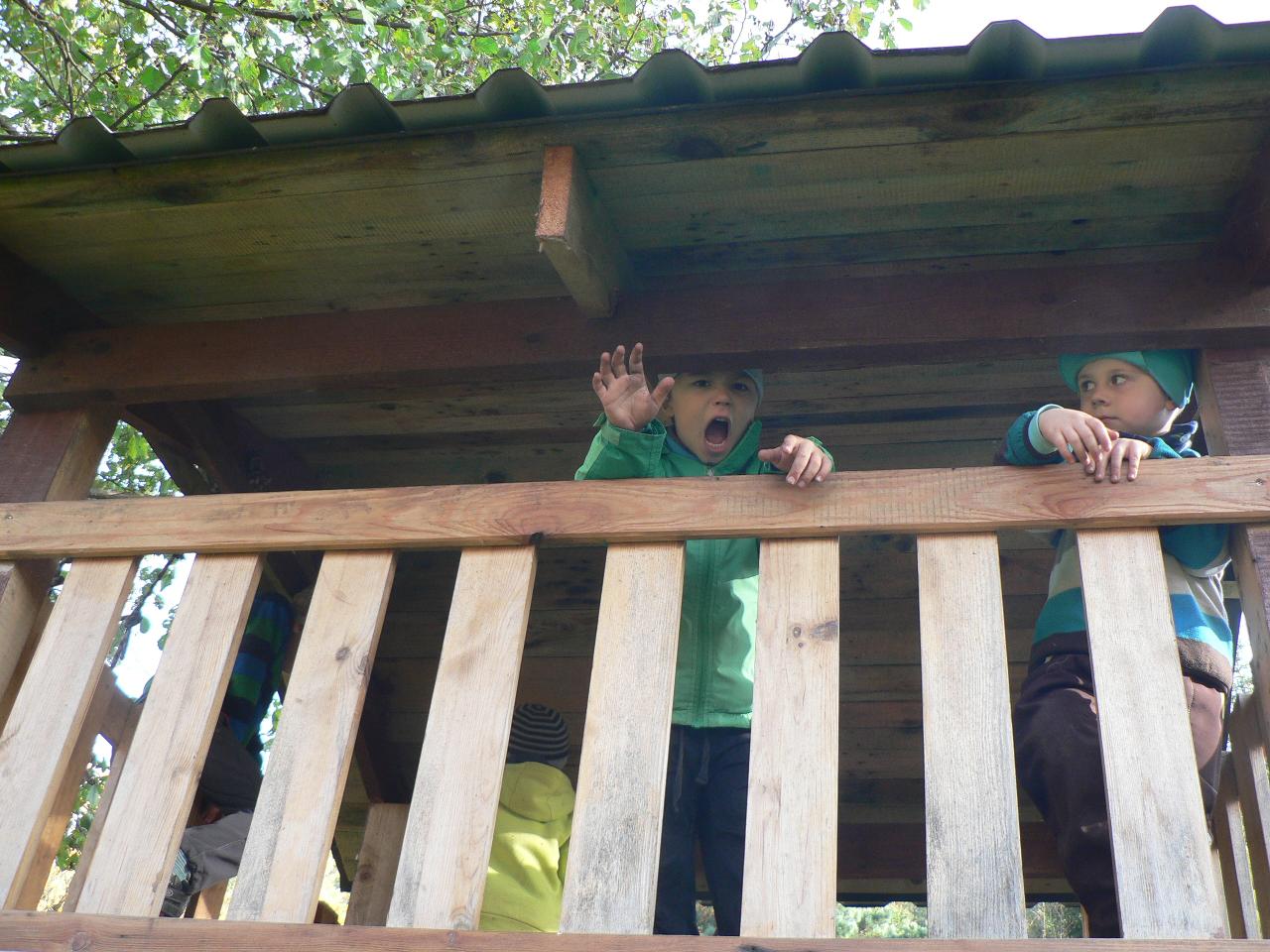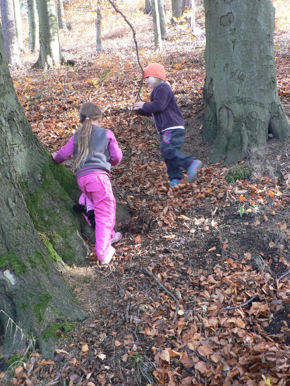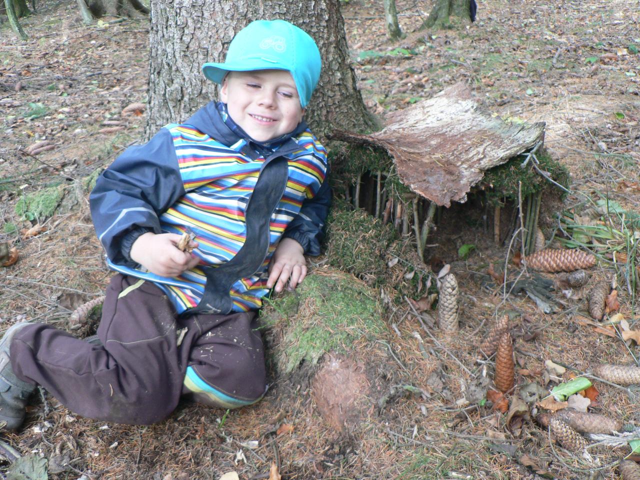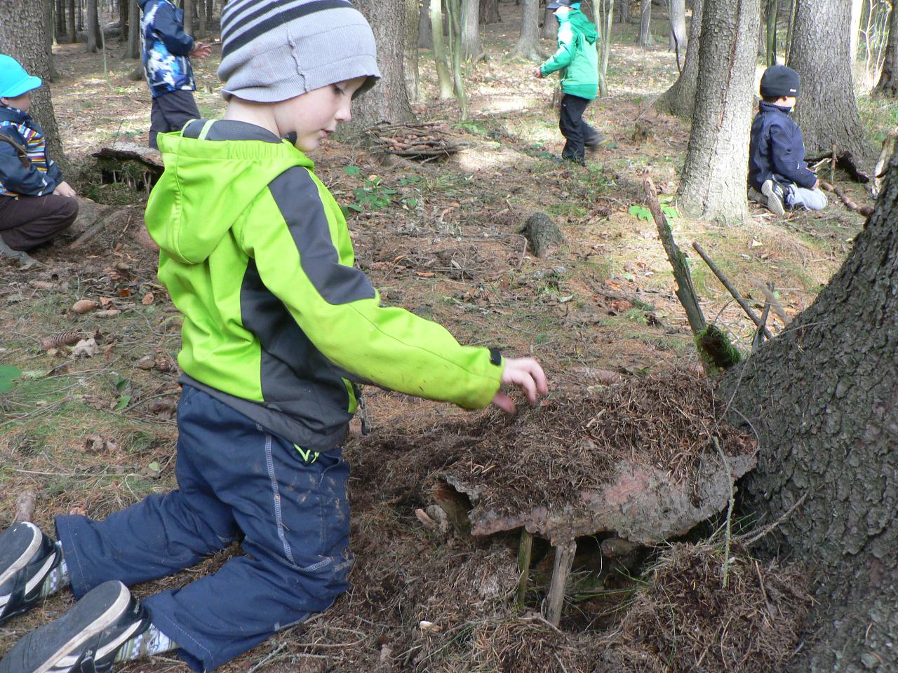 je úvodní říkačka k naší podzimní hře a my jsme tentokrát prožili další nádherný a barevný podzimní týden s pohádkou o skřítkovi Podzimníčkovi a víle Salvince. S pohádkou o tom, jak velkou sílu má skutečné přátelství a že na každý smutek existuje lék. A také o kouzlu, které způsobilo, že se nám stromy každý podzim tak krásně zbarvují. Celý týden byl plný barev a kouzel. Děti zkoušely barevné listy ještě víc obarvit a obtiskávat na papír, v lese jsme nasbírali spoustu materiálu na výrobu skřítků Podzimníčků a postavili jim v lese hodně domečků. Abychom si vše naplno užili, do listí jsme padali, skákali a někteří se do listí pokoušeli zahrabat úplně celí. A protože podzimní doba pokročila a venkovního světla začalo postupně ubývat, došlo i na dlabání dýňových luceren, které nám nyní zdobí vchod do školky. Z vnitřku vydlabaných dýní navíc byla v pátek k obědu vynikající polévka :)